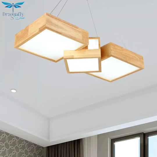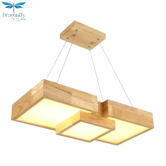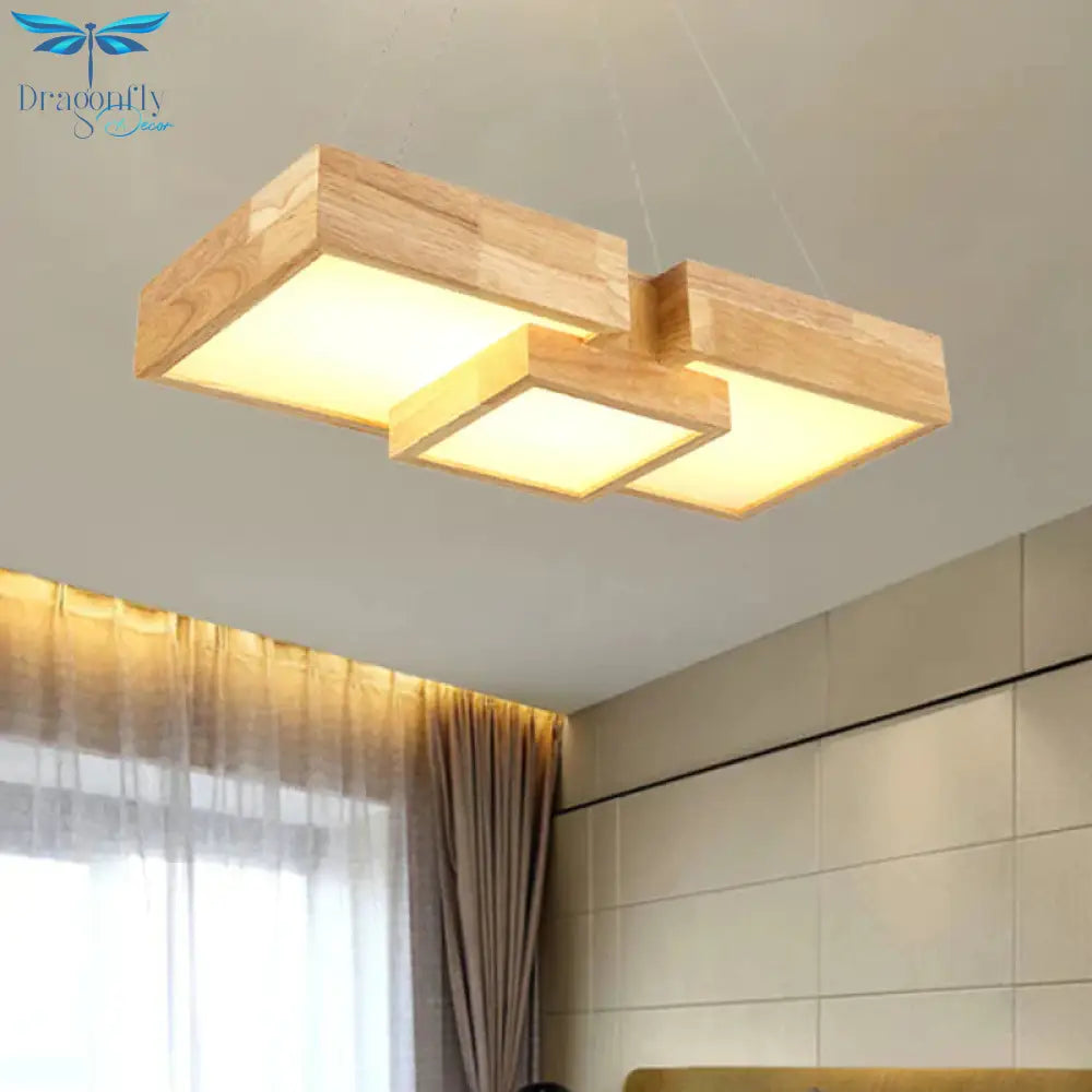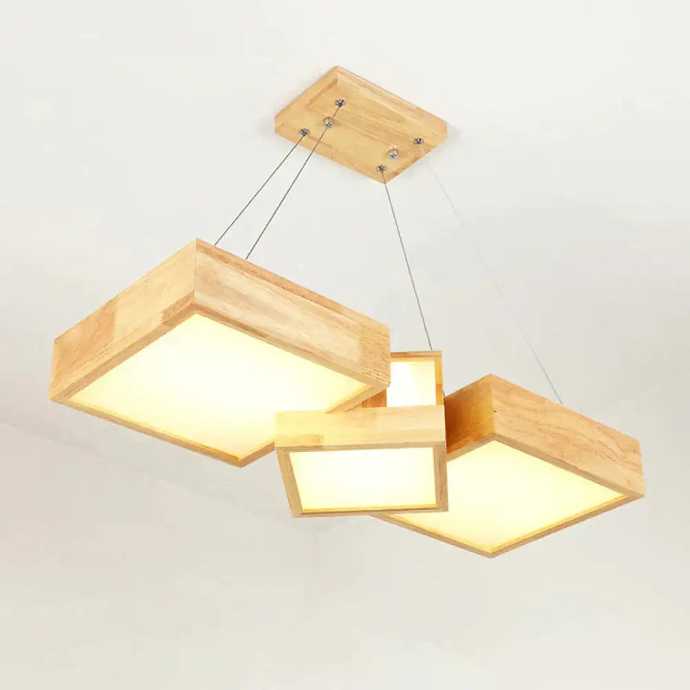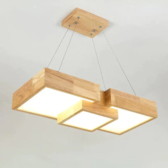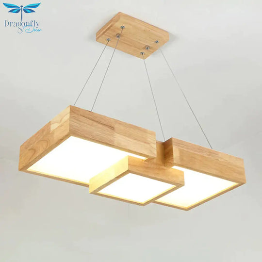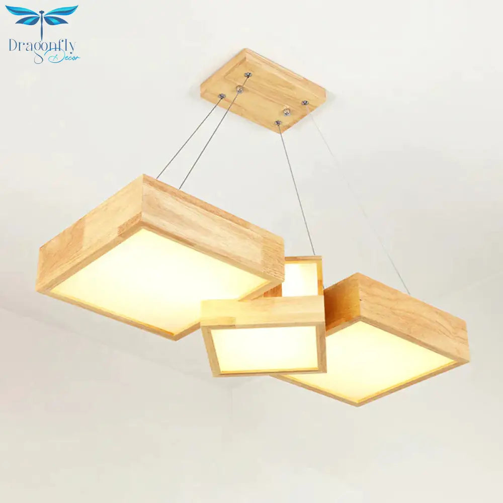 Modern Rhombus/Square LED Chandelier Pendant Wooden 3-Light Bedroom Ce