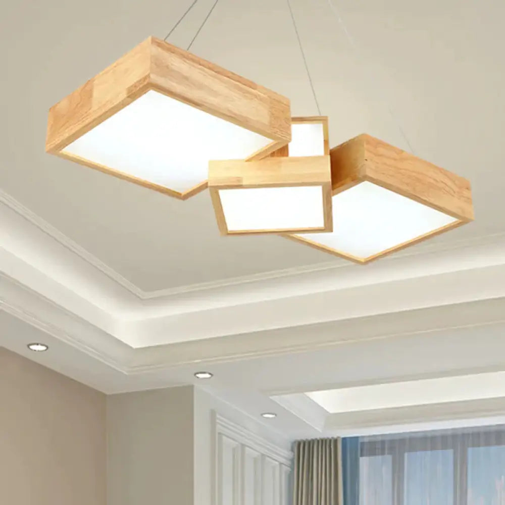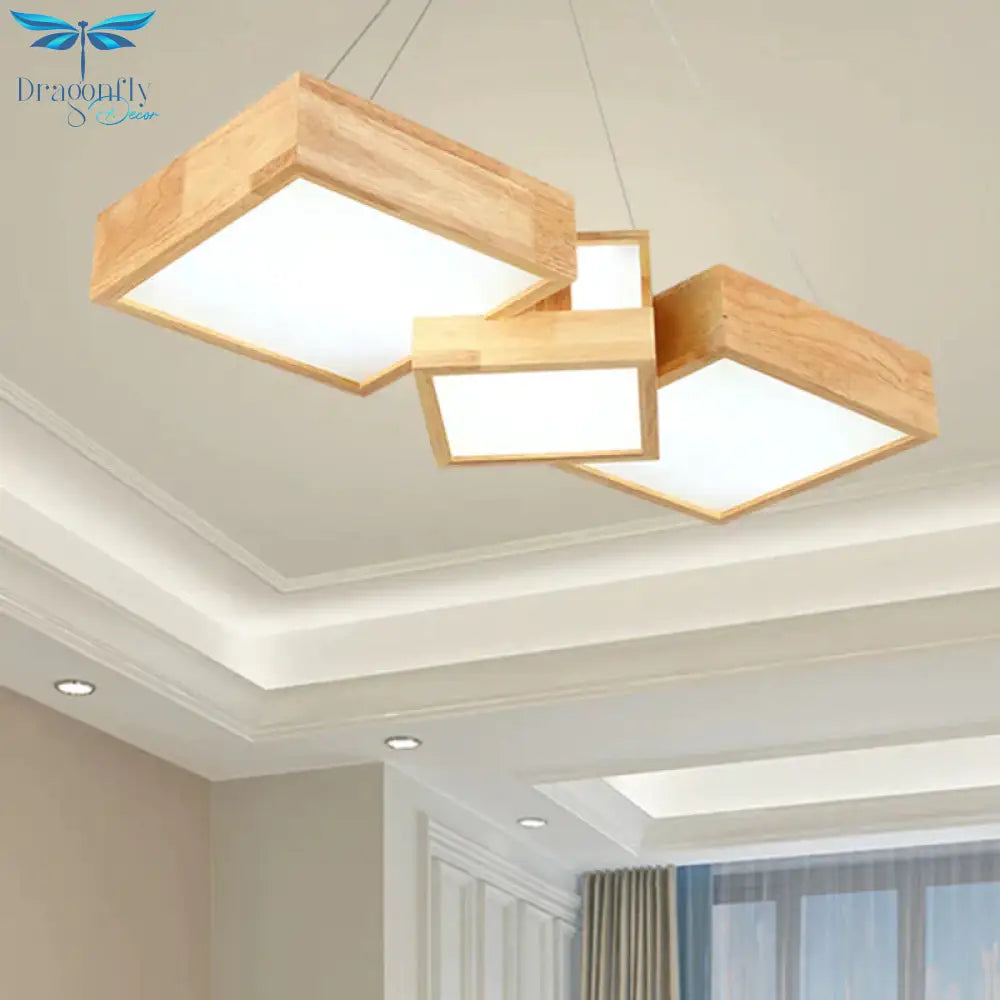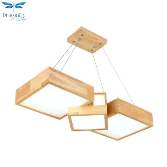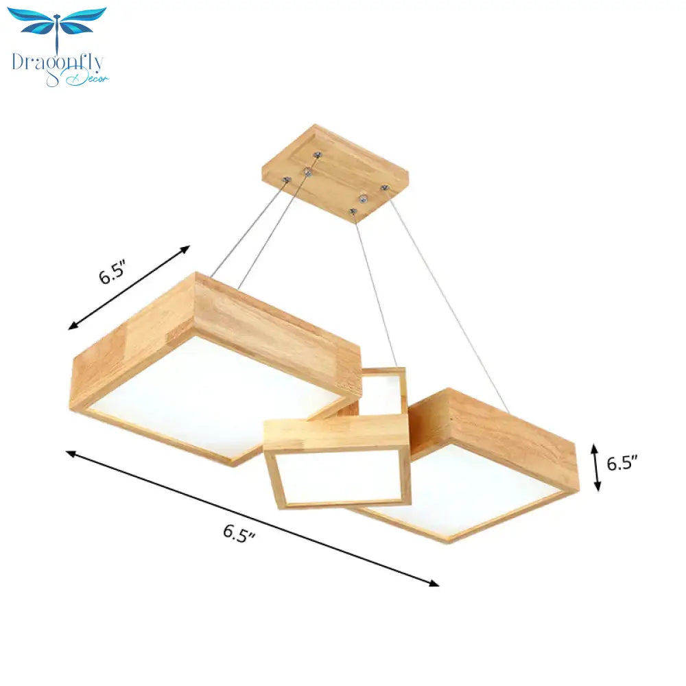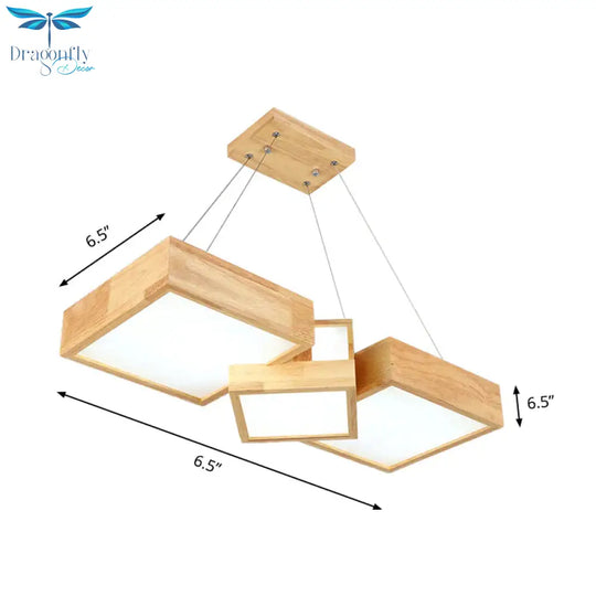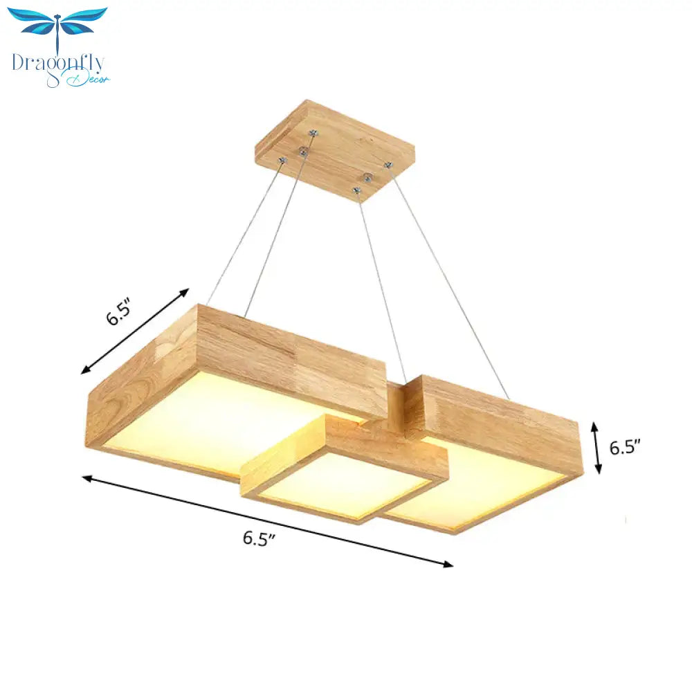Modern Rhombus/Square LED Chandelier Pendant Wooden 3-Light Bedroom Ce