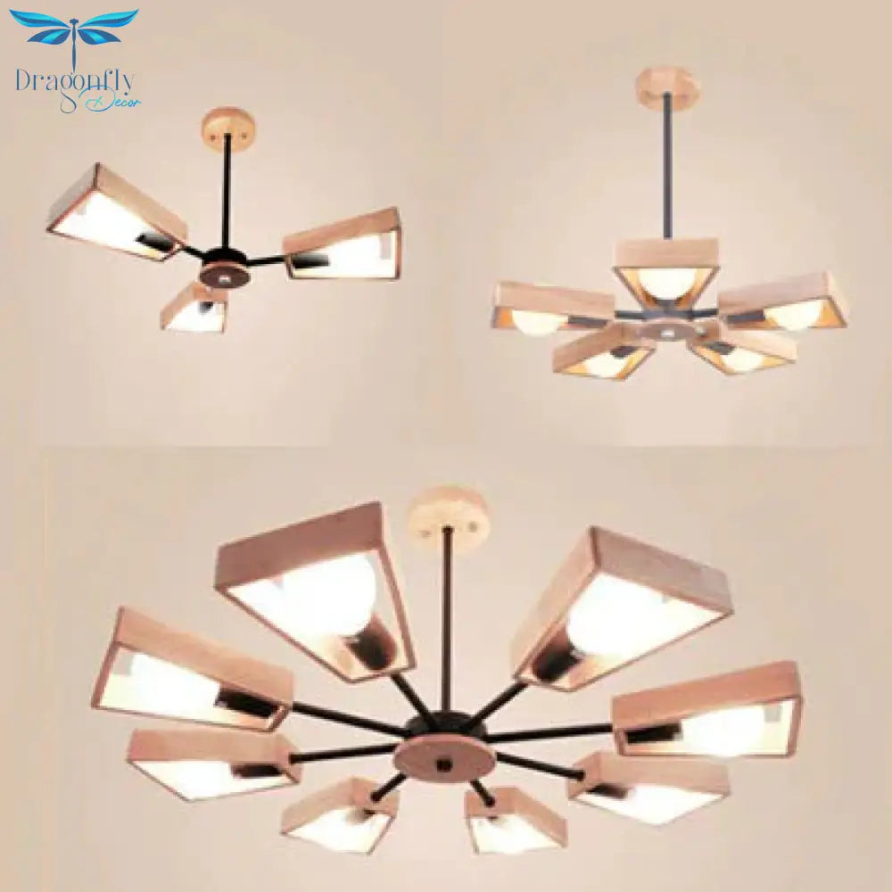 Modern Sputnik Chandelier Pendant Wooden 3/5/8-Light Bedroom Hanging L
