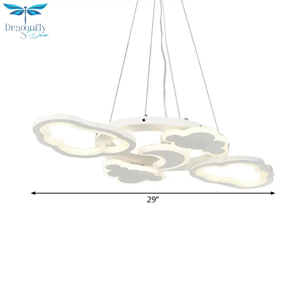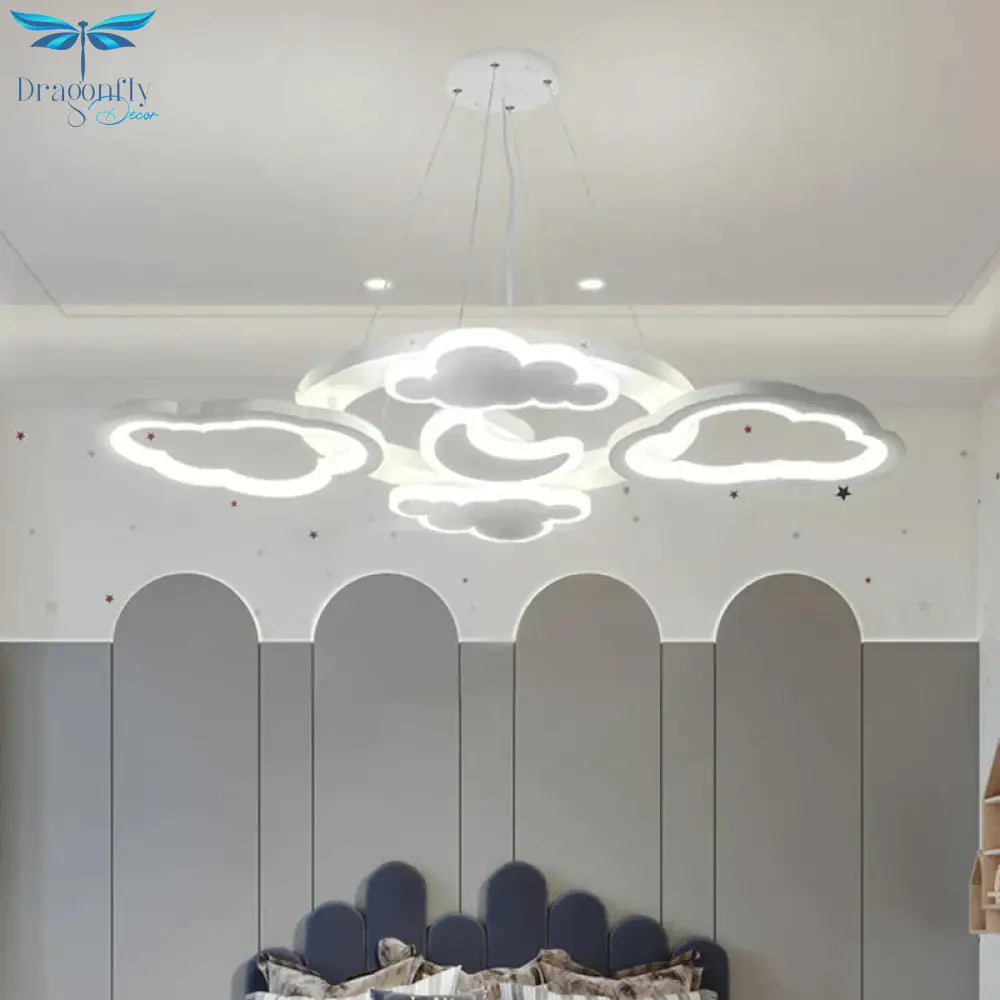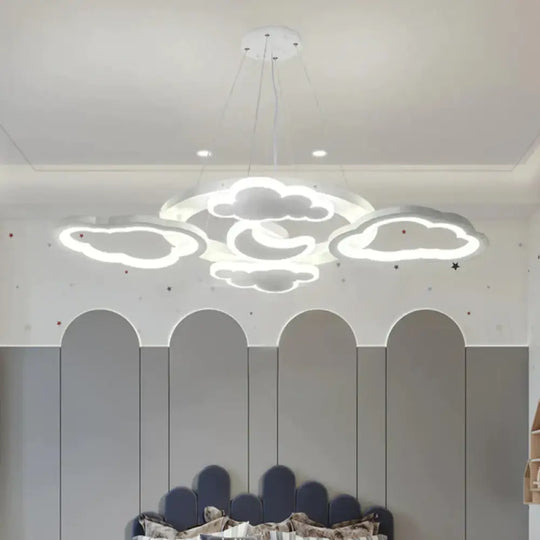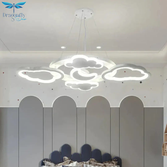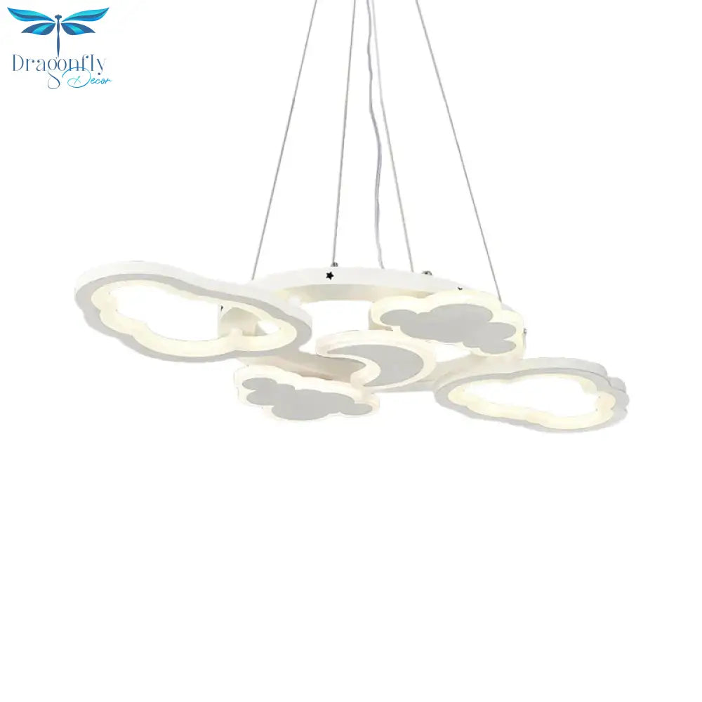 Moon and Cloud Bedroom Chandelier Lamp Acrylic LED Cartoon Hanging Light Kit in White