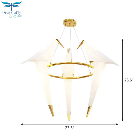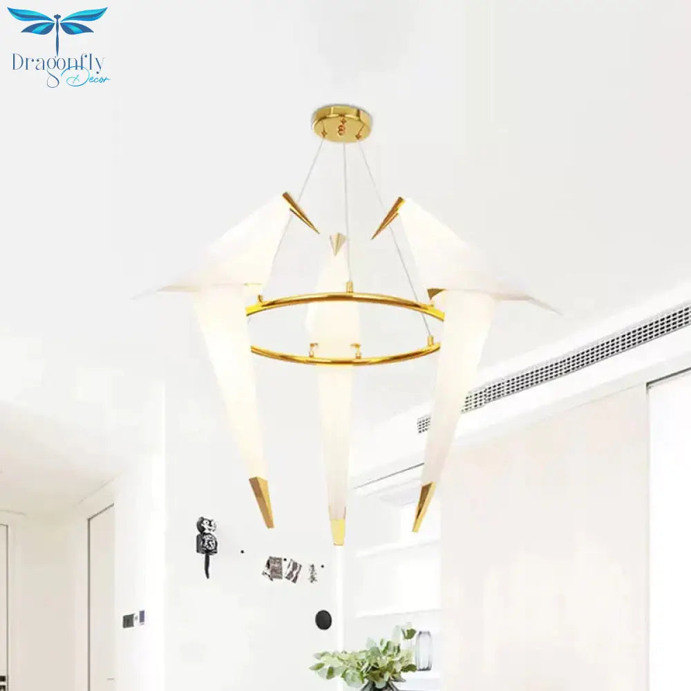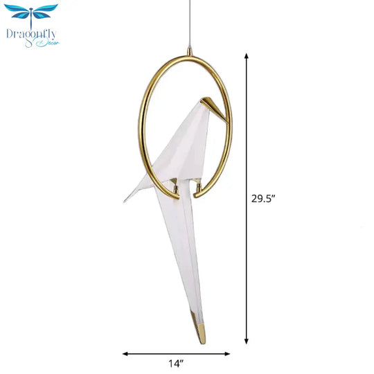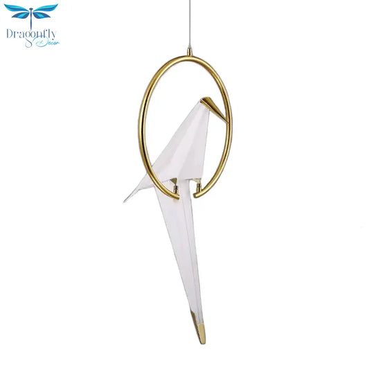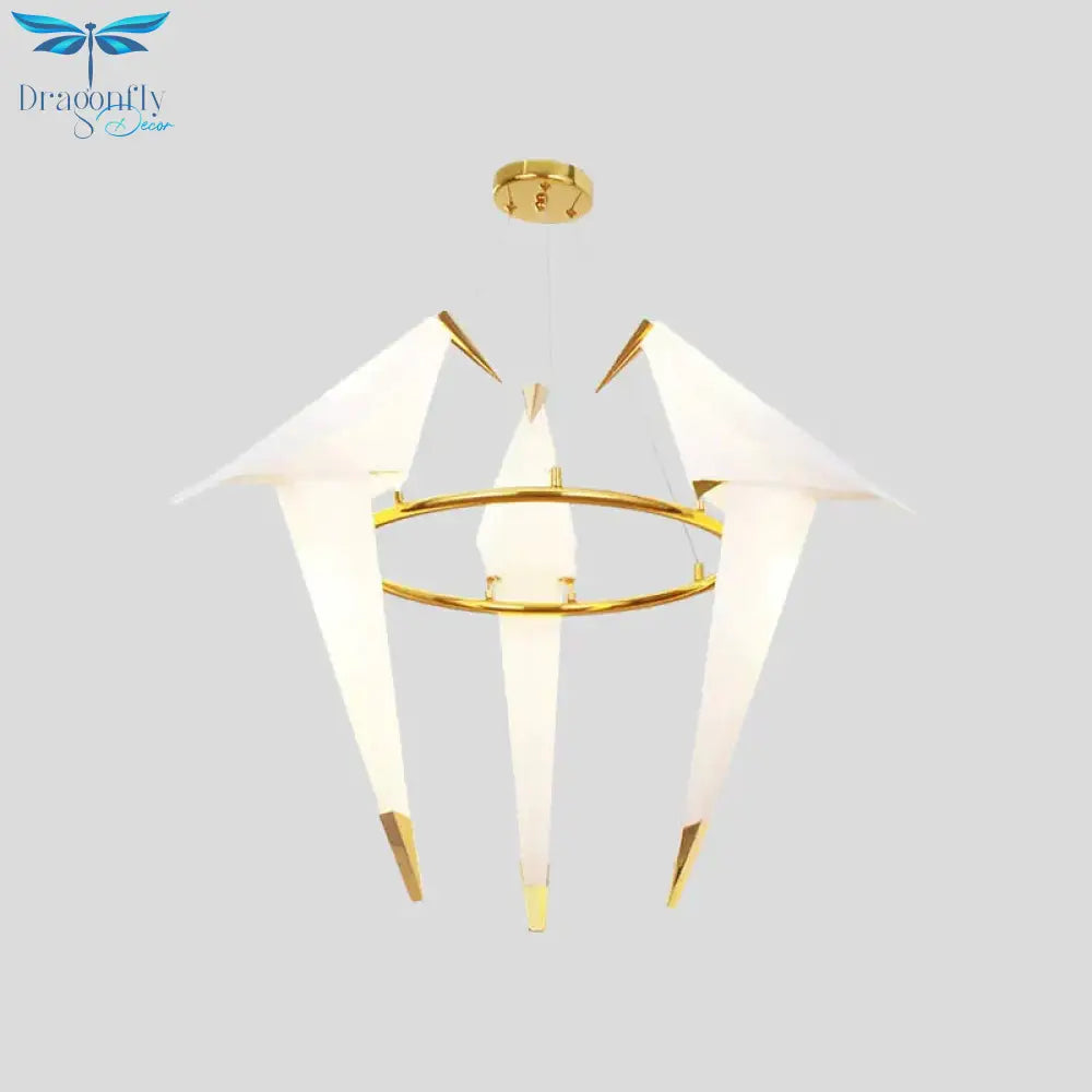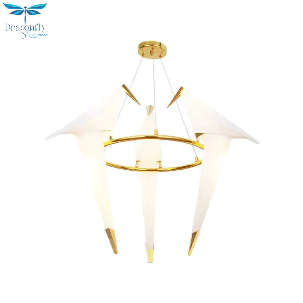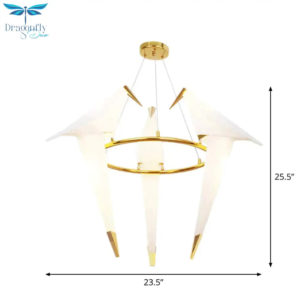 Nordic 1/2/3-Bulb Ceiling Light White-Gold Round Pendant Light Kit with Plastic Crane Shade