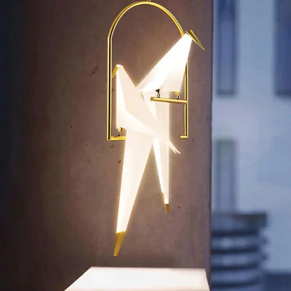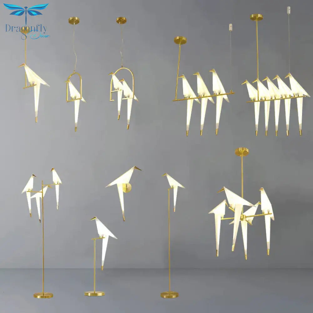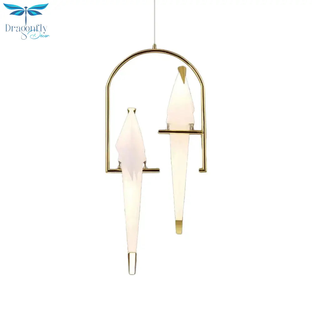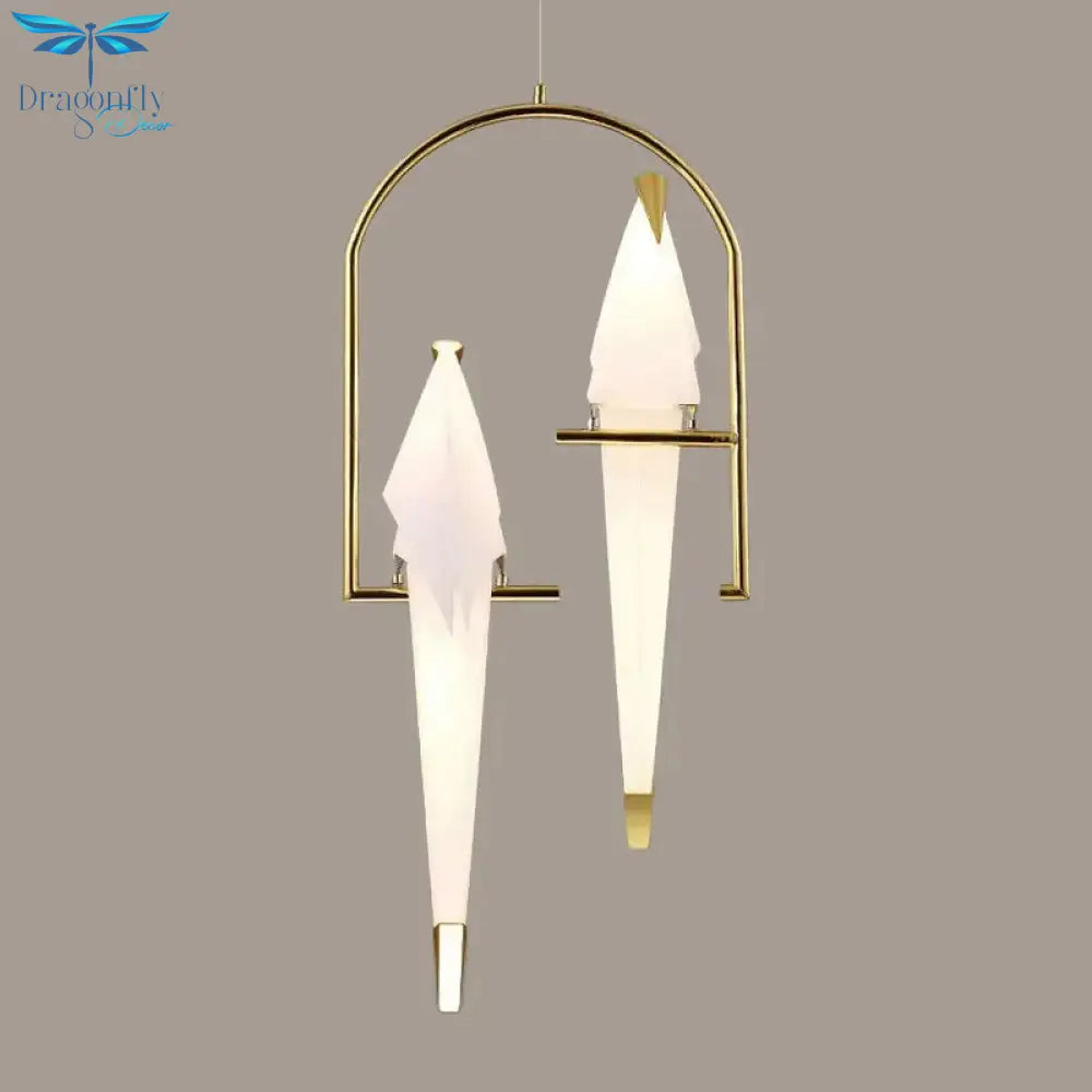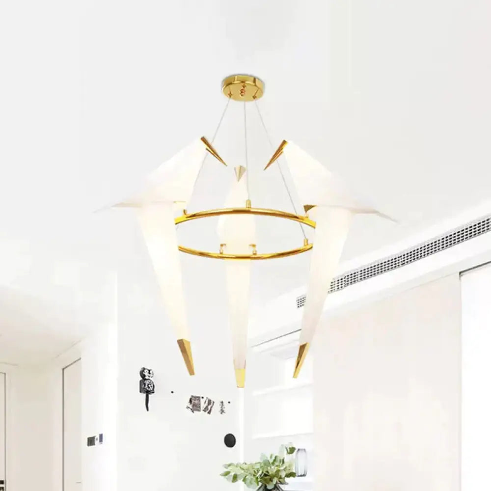Nordic 1/2/3-Bulb Ceiling Light White-Gold Round Pendant Light Kit with Plastic Crane Shade