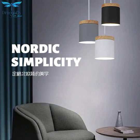 Nordic Modern Wood Aluminum E27 Pendant Lights Living Room Dining Bedside Table Decorative Lighting