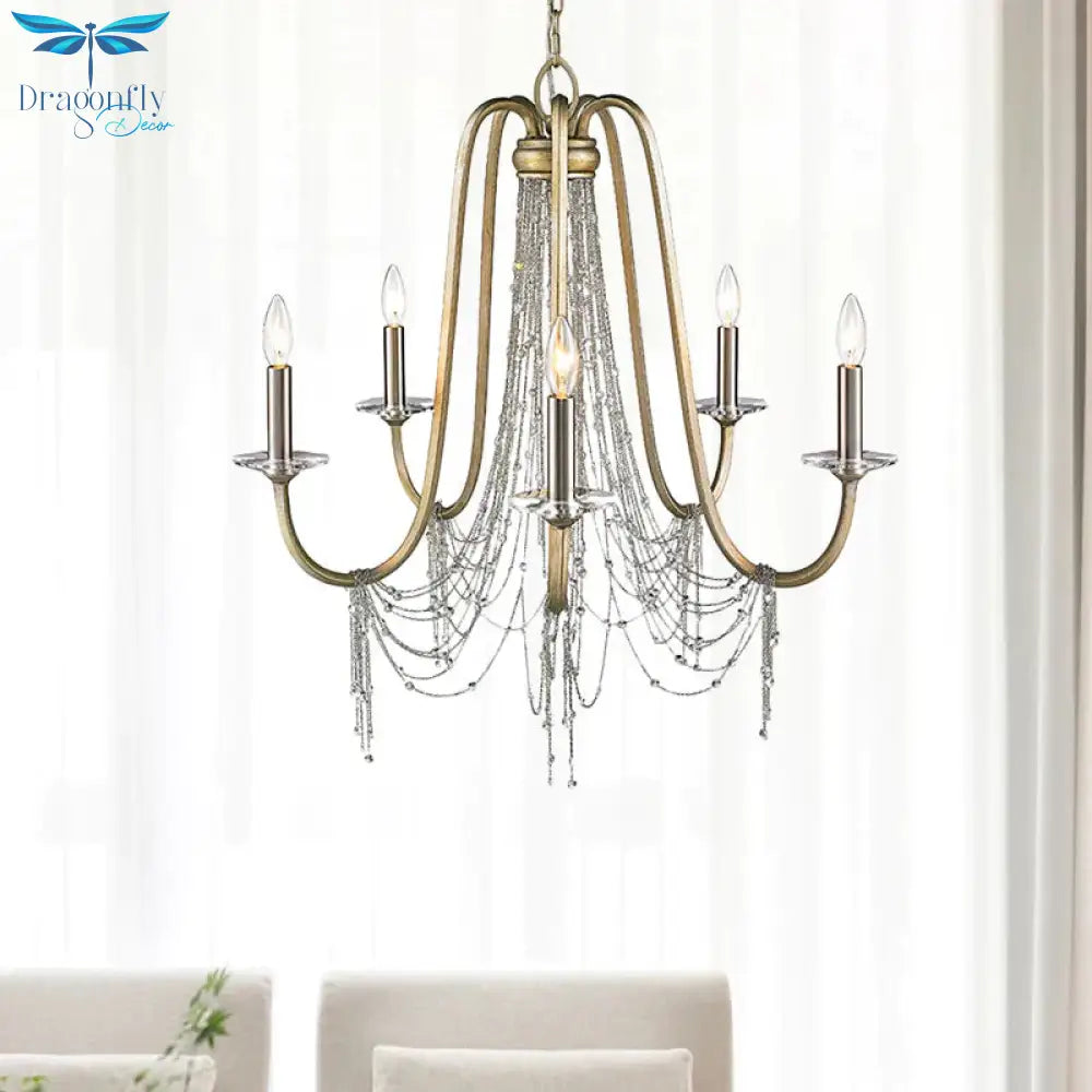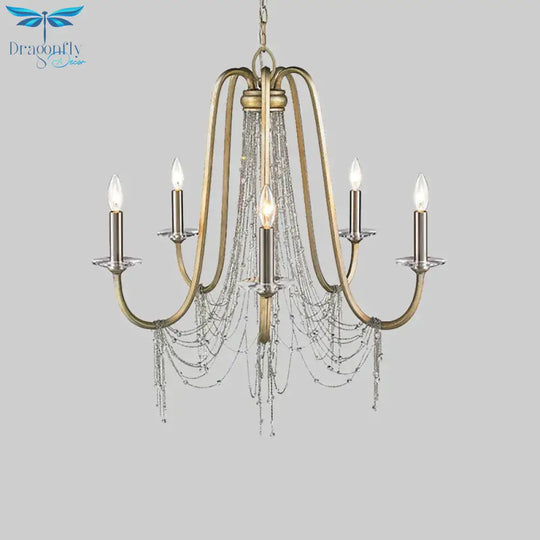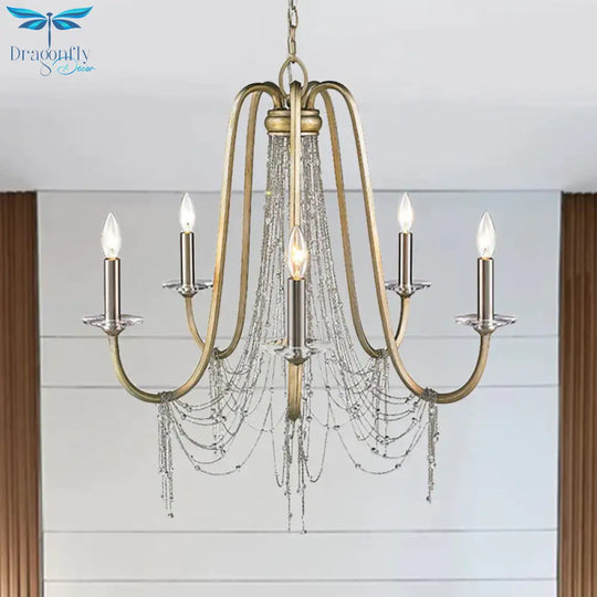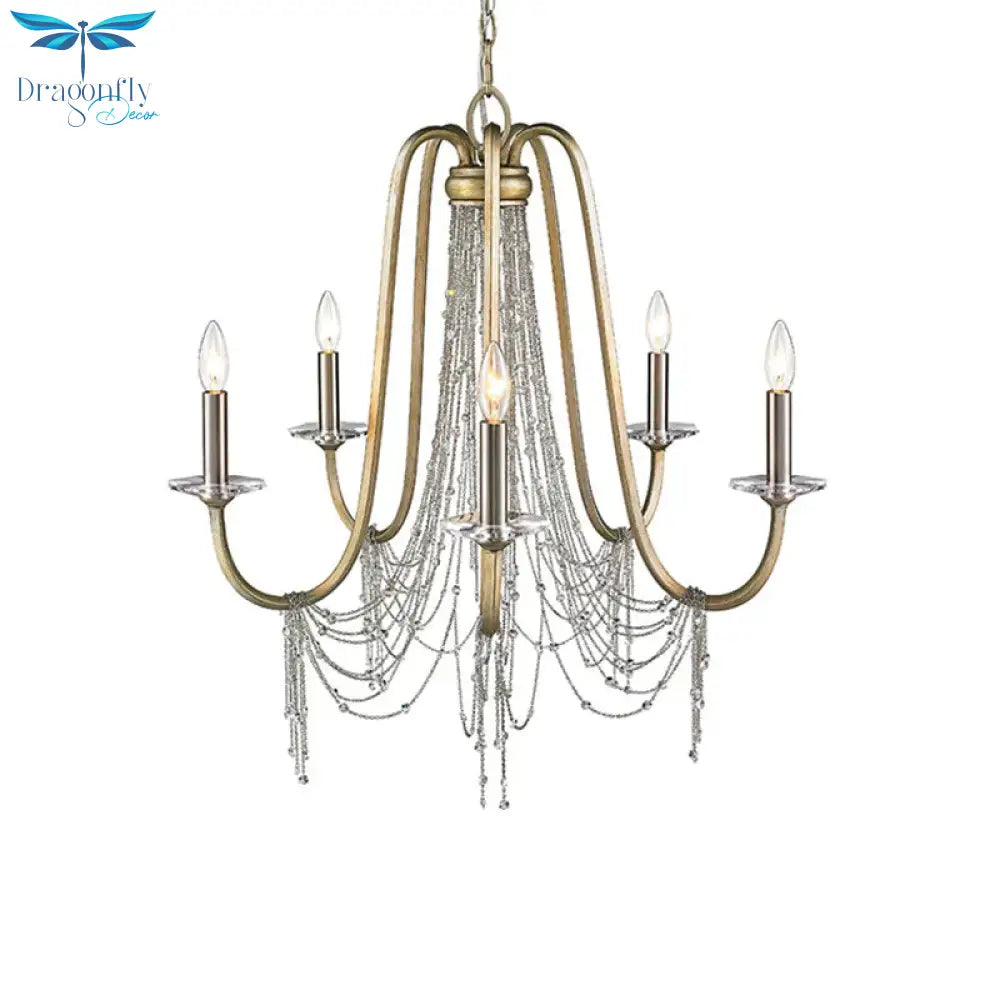 Nordic Starburst Hanging Chandelier Crystal 5 Bulbs Suspension Light in Gold for Living Room