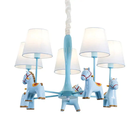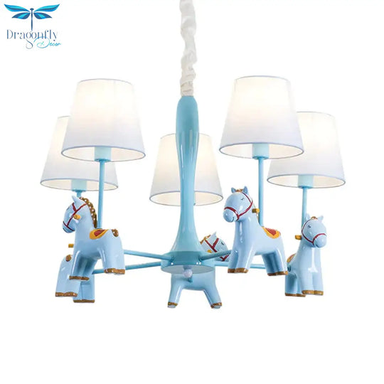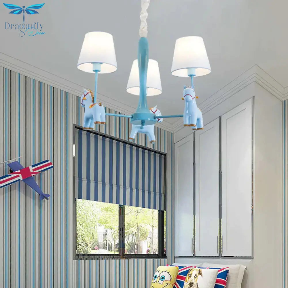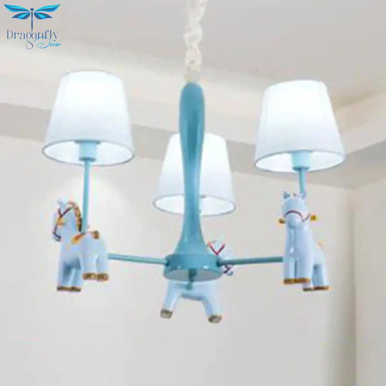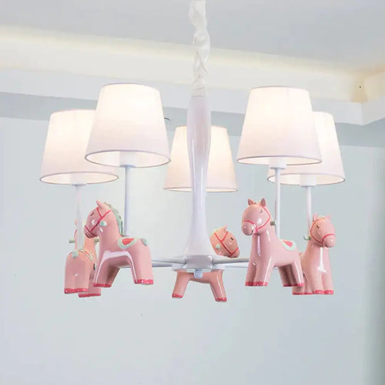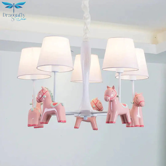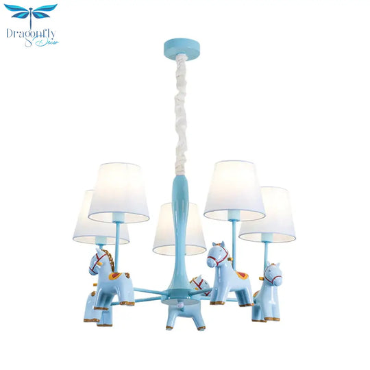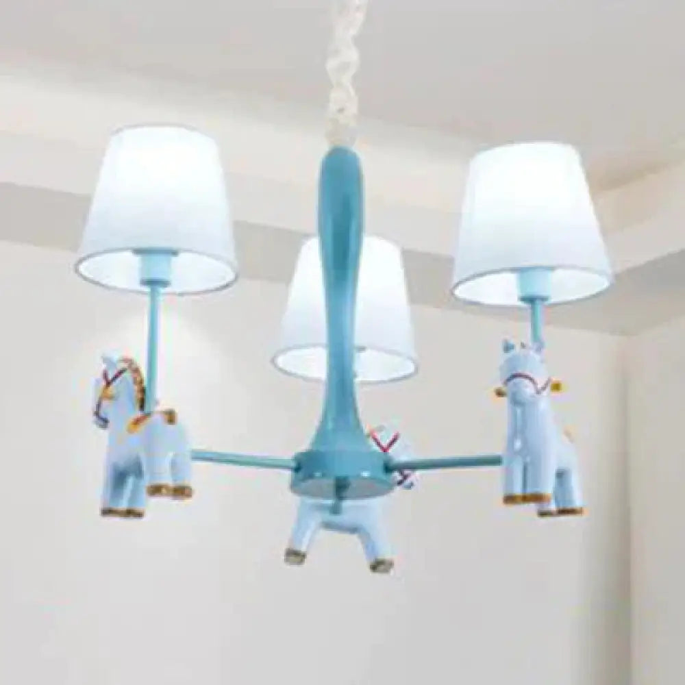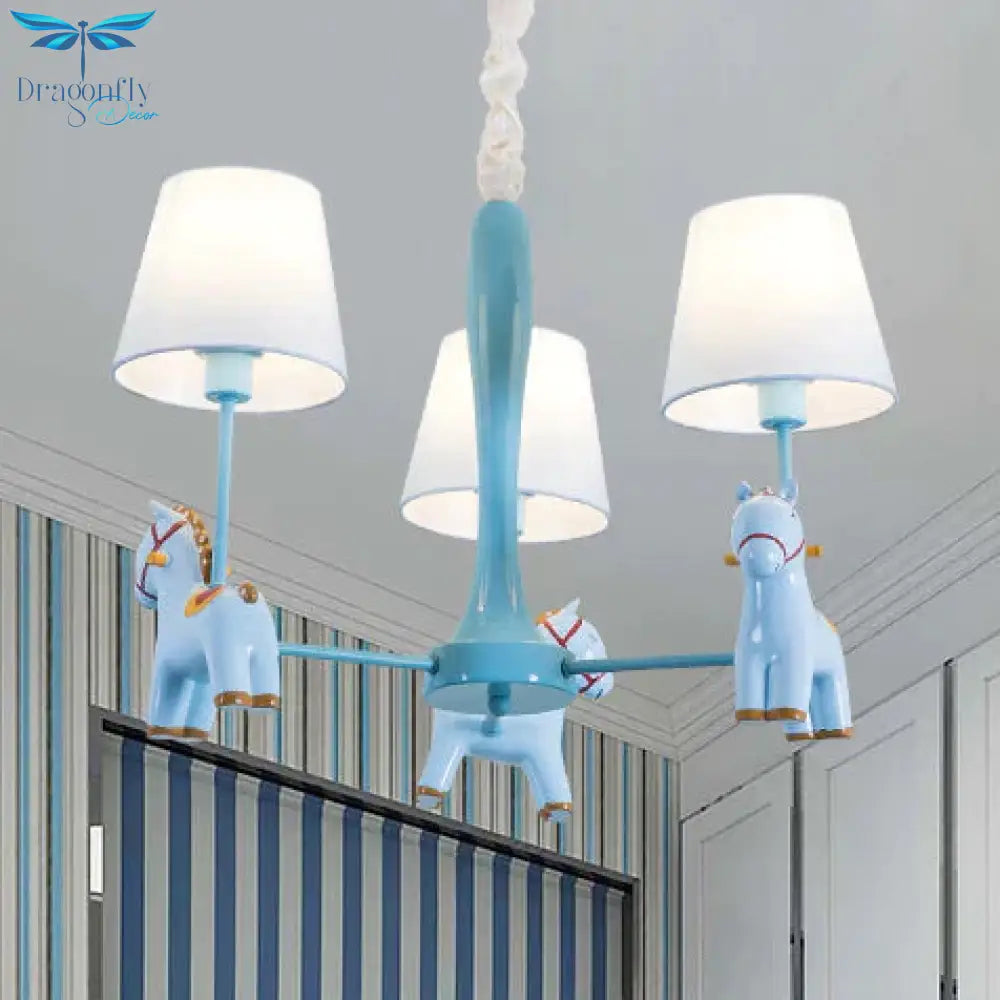 Nordic Tapered Shade Hanging Ceiling Lamp with Horse Fabric Chandelier