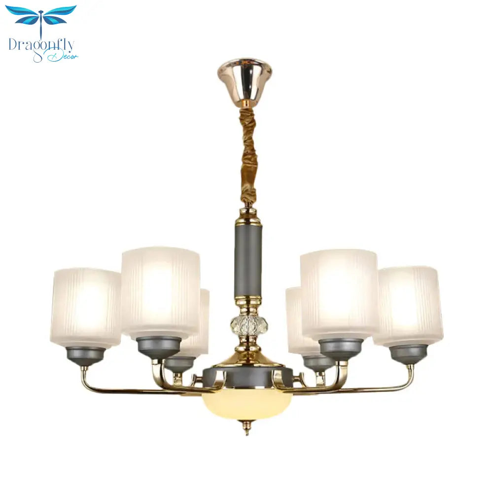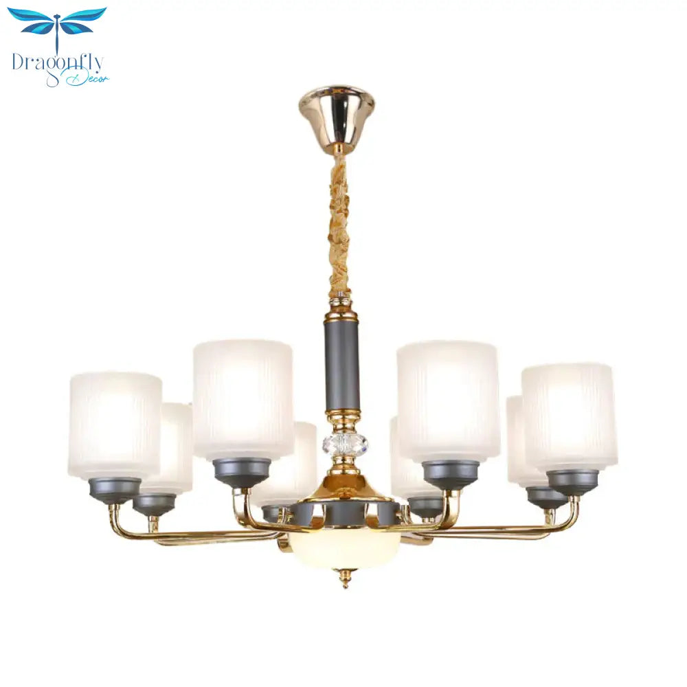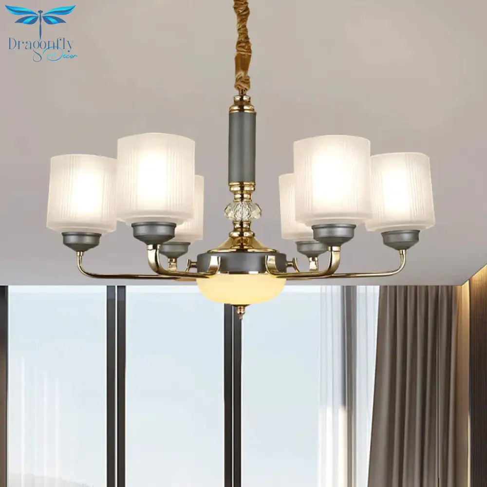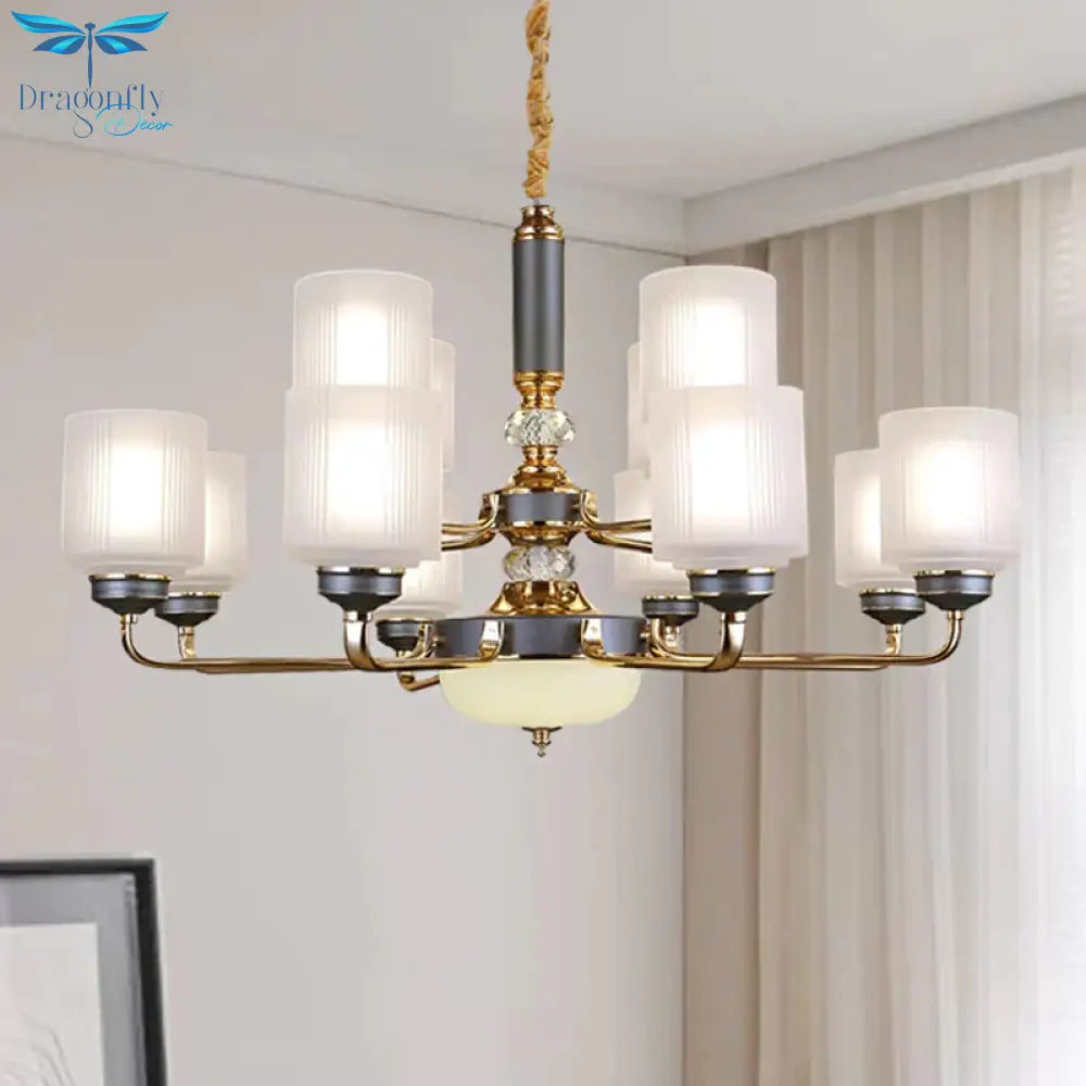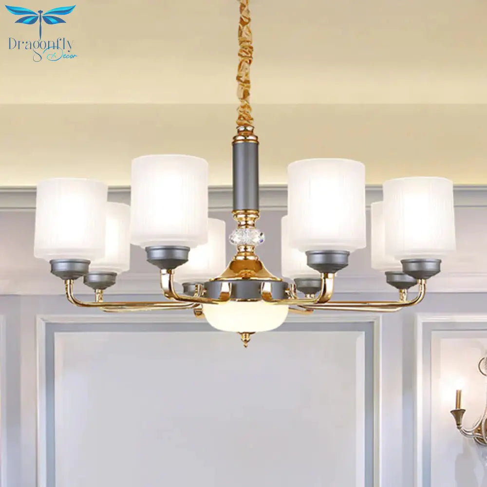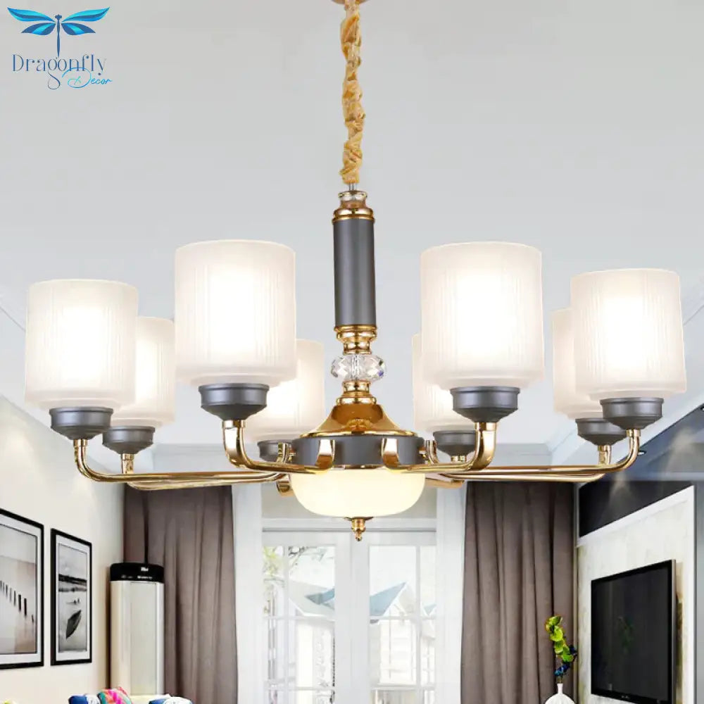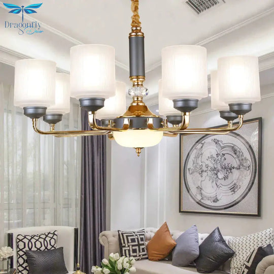 Null 6/8/12 Bulbs Chandelier Light Fixture Rural Cream Glass Cylindrical Pendulum Light for Bedroom