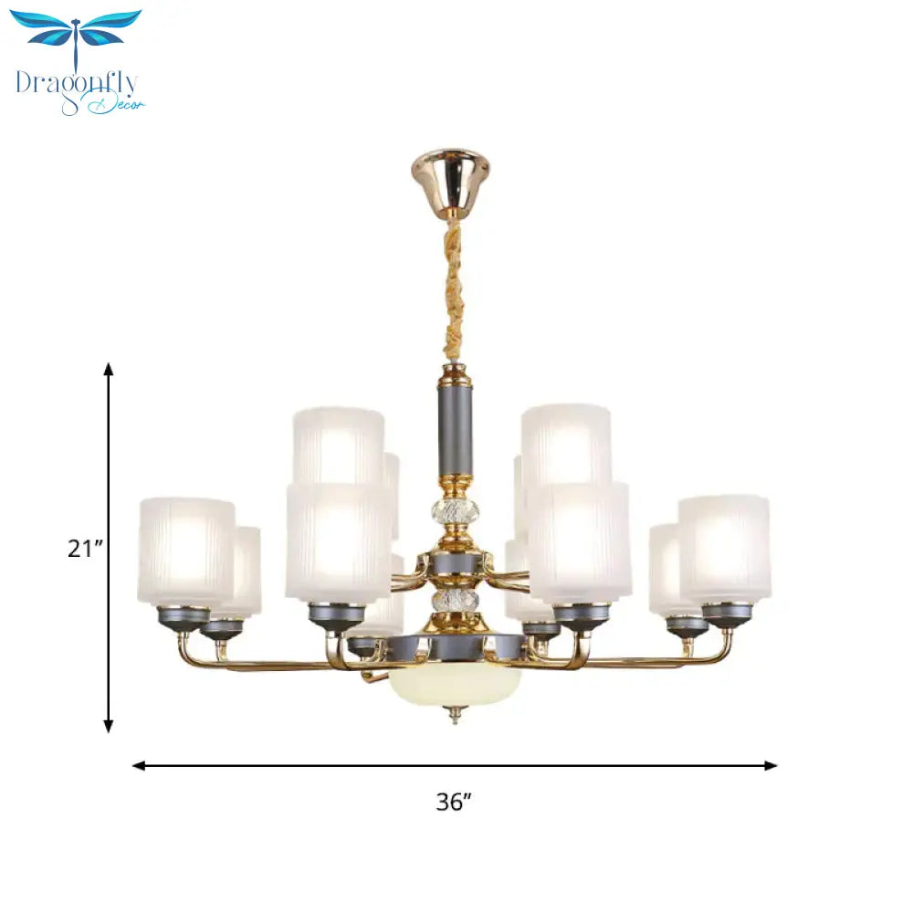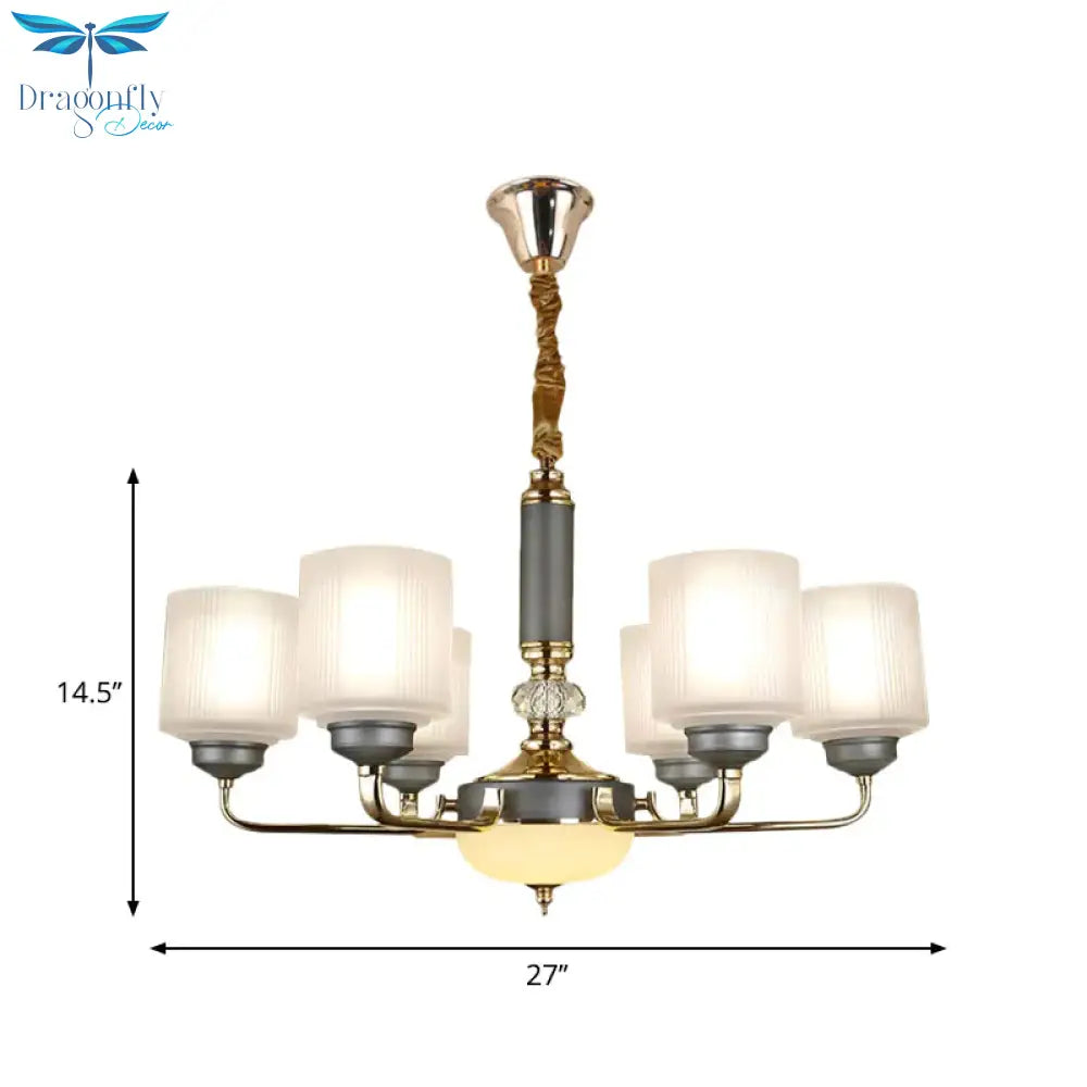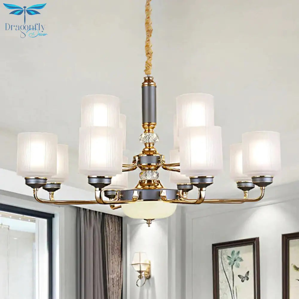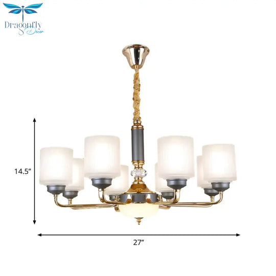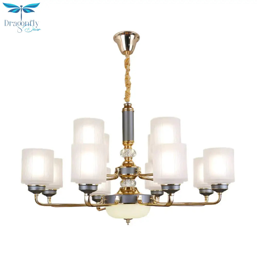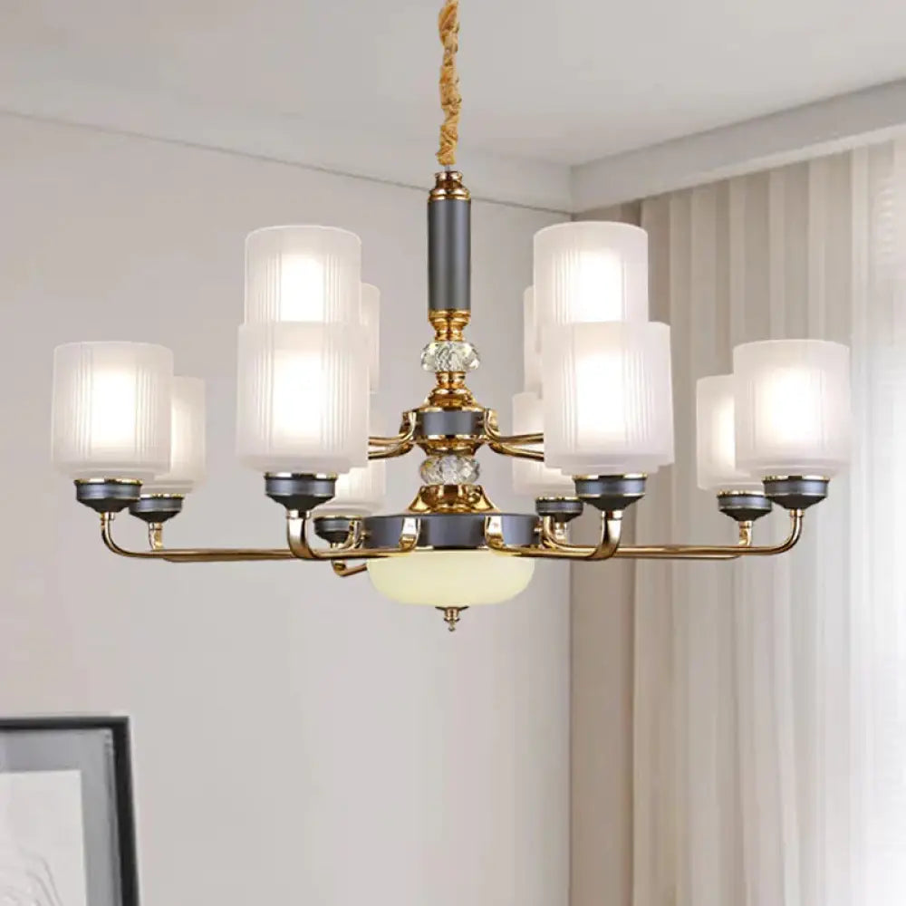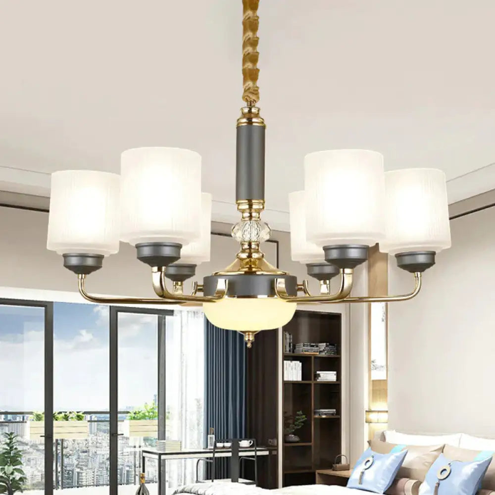 Null 6/8/12 Bulbs Chandelier Light Fixture Rural Cream Glass Cylindrical Pendulum Light for Bedroom