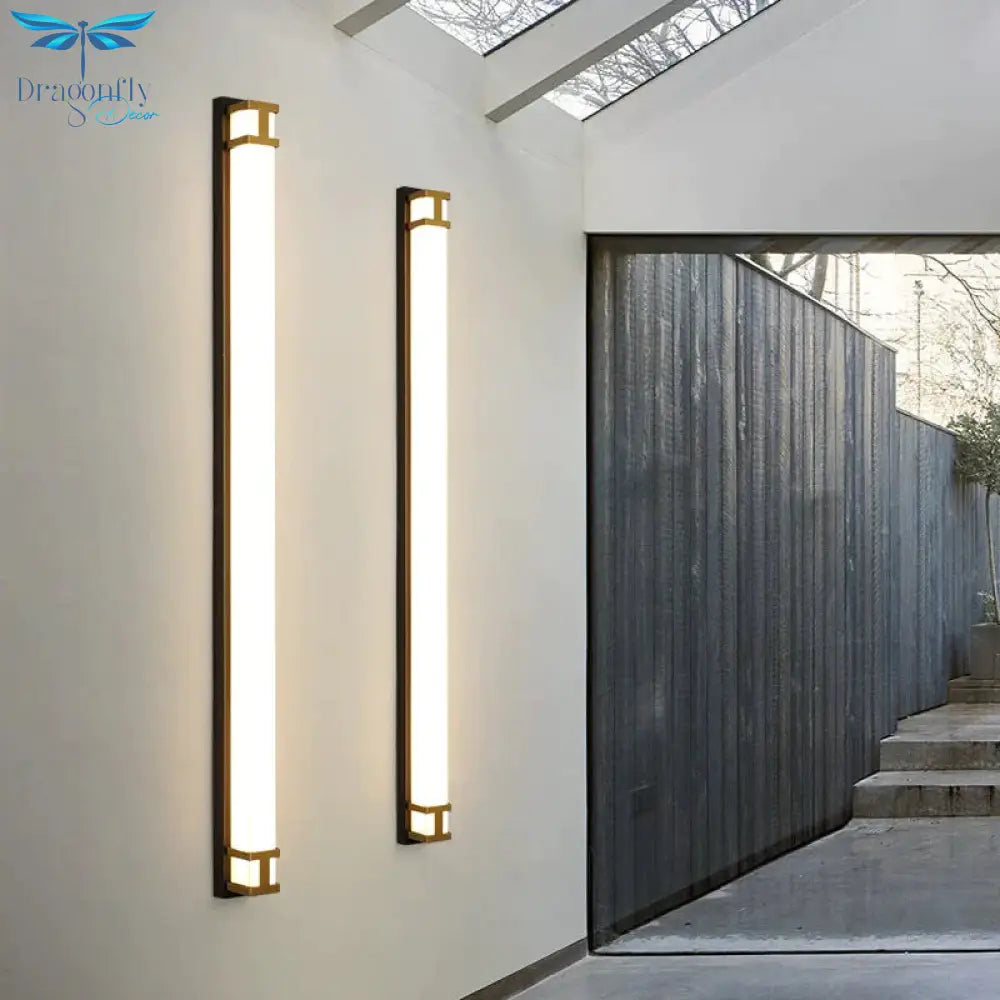 Outdoor Wall Lamp Ip65 Waterproof Led Long Lights Garden Villa Porch Sconce Light Gold Black 110V