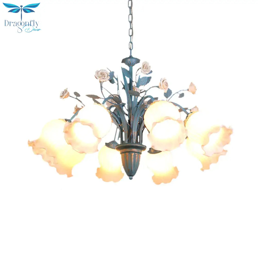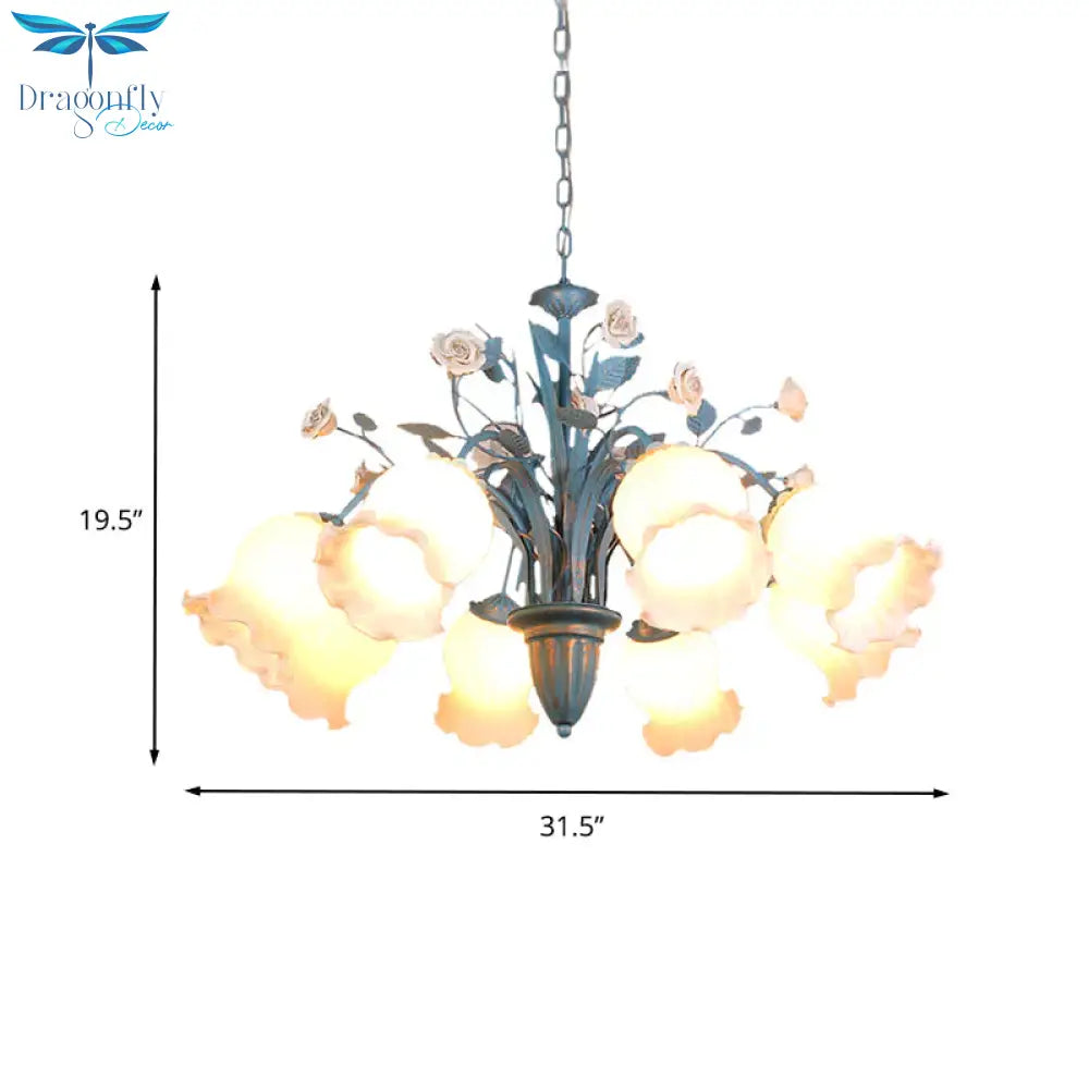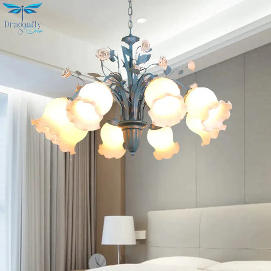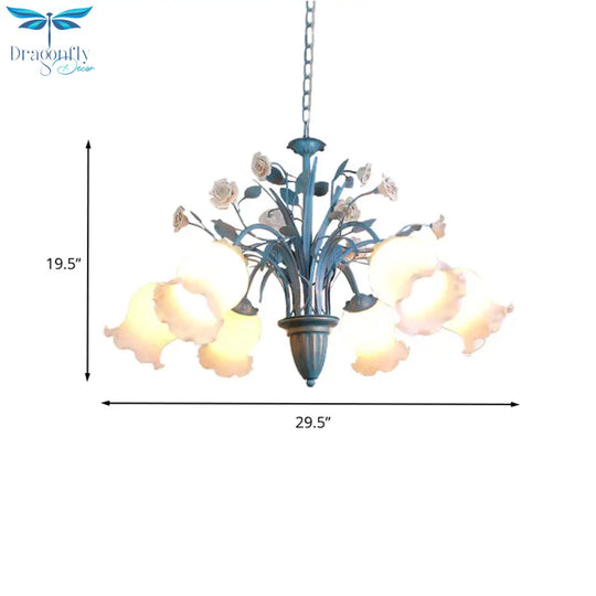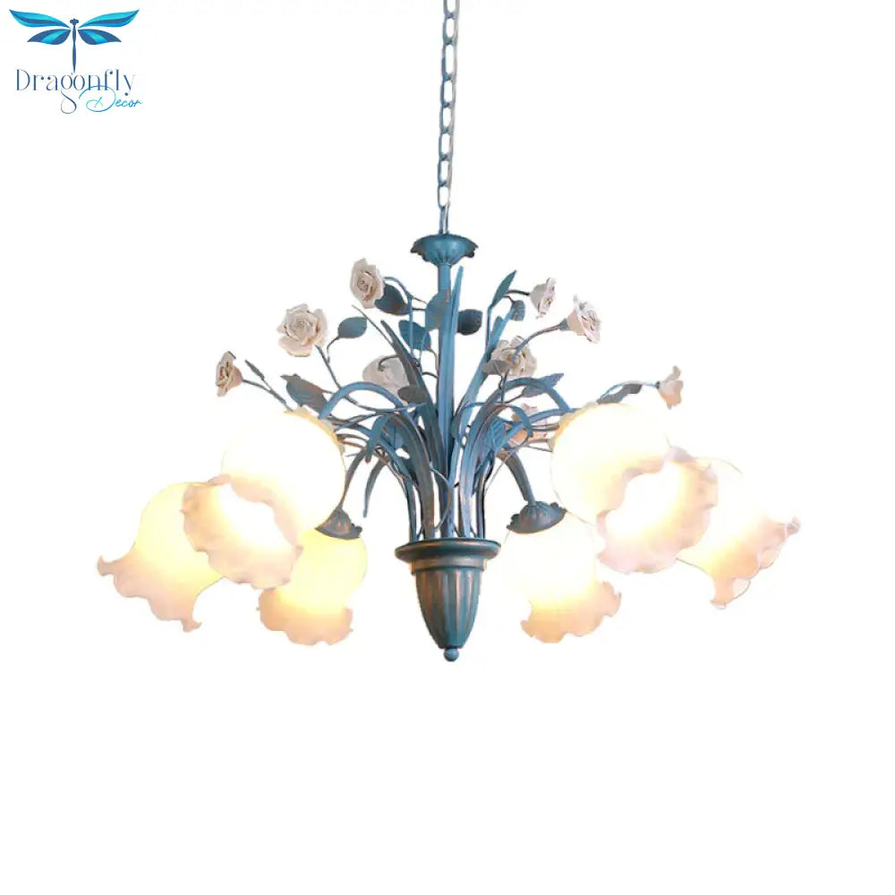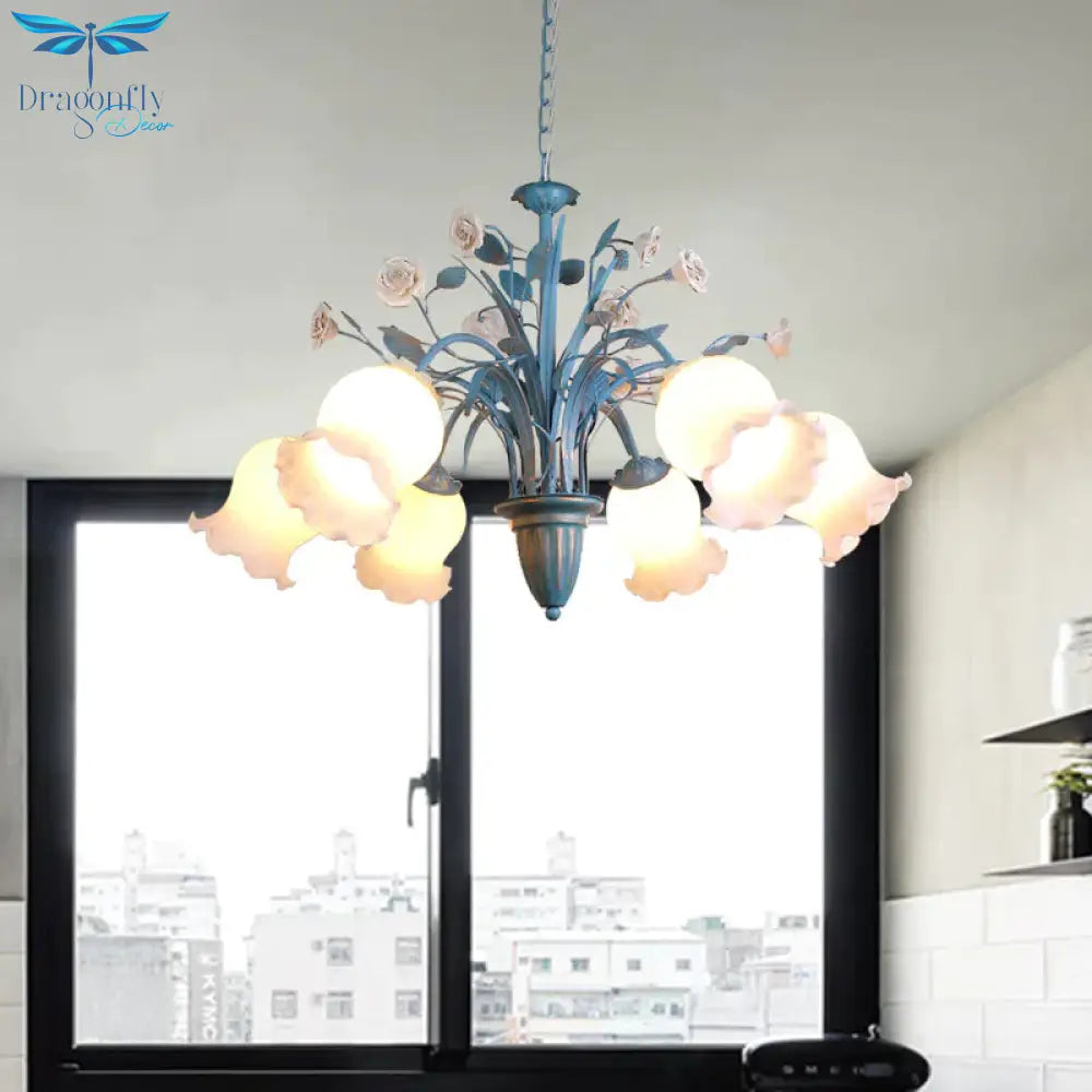 Pastoral Blossom Chandelier Lighting Fixture 3/5/6 Heads White Glass Pendant Ceiling Light in Blue