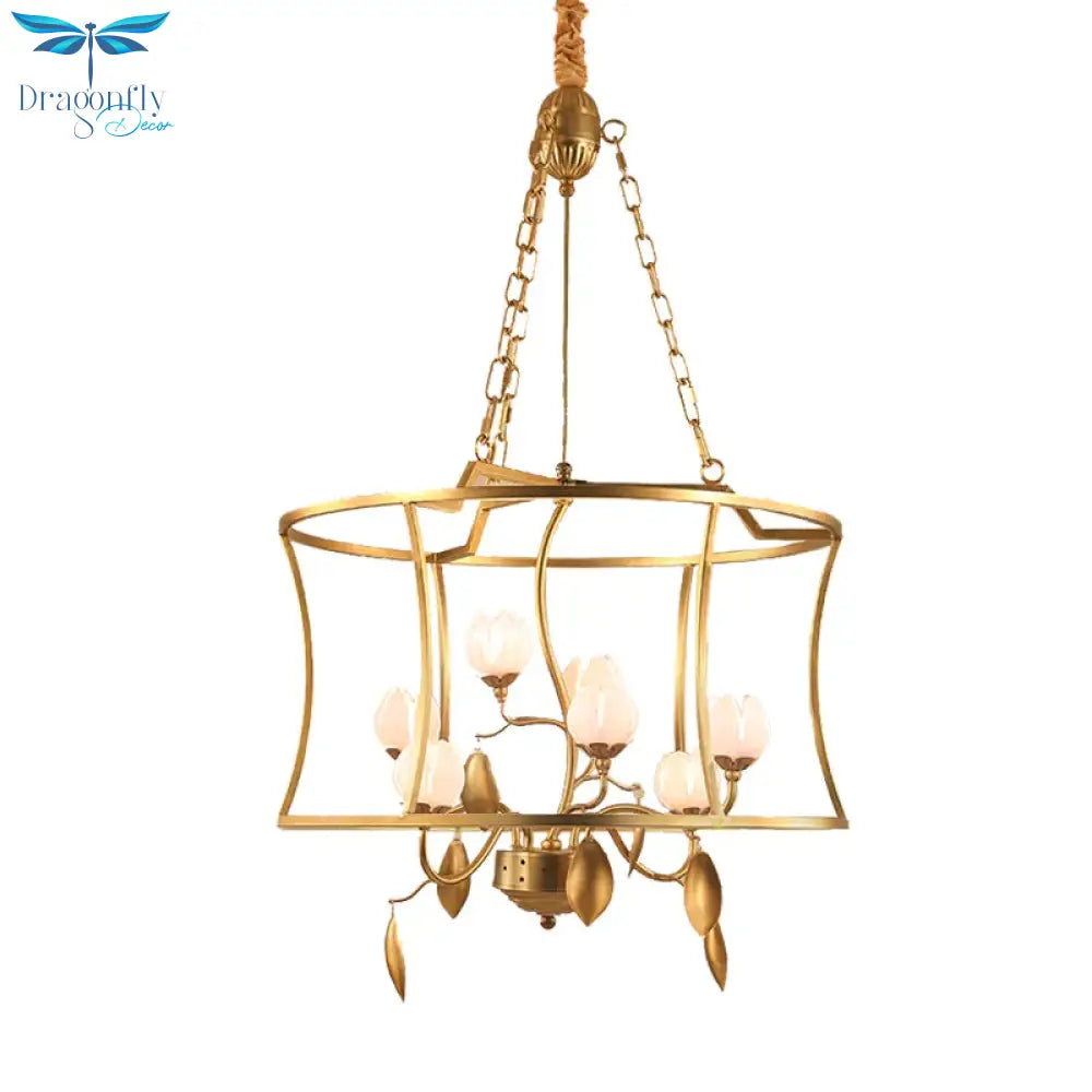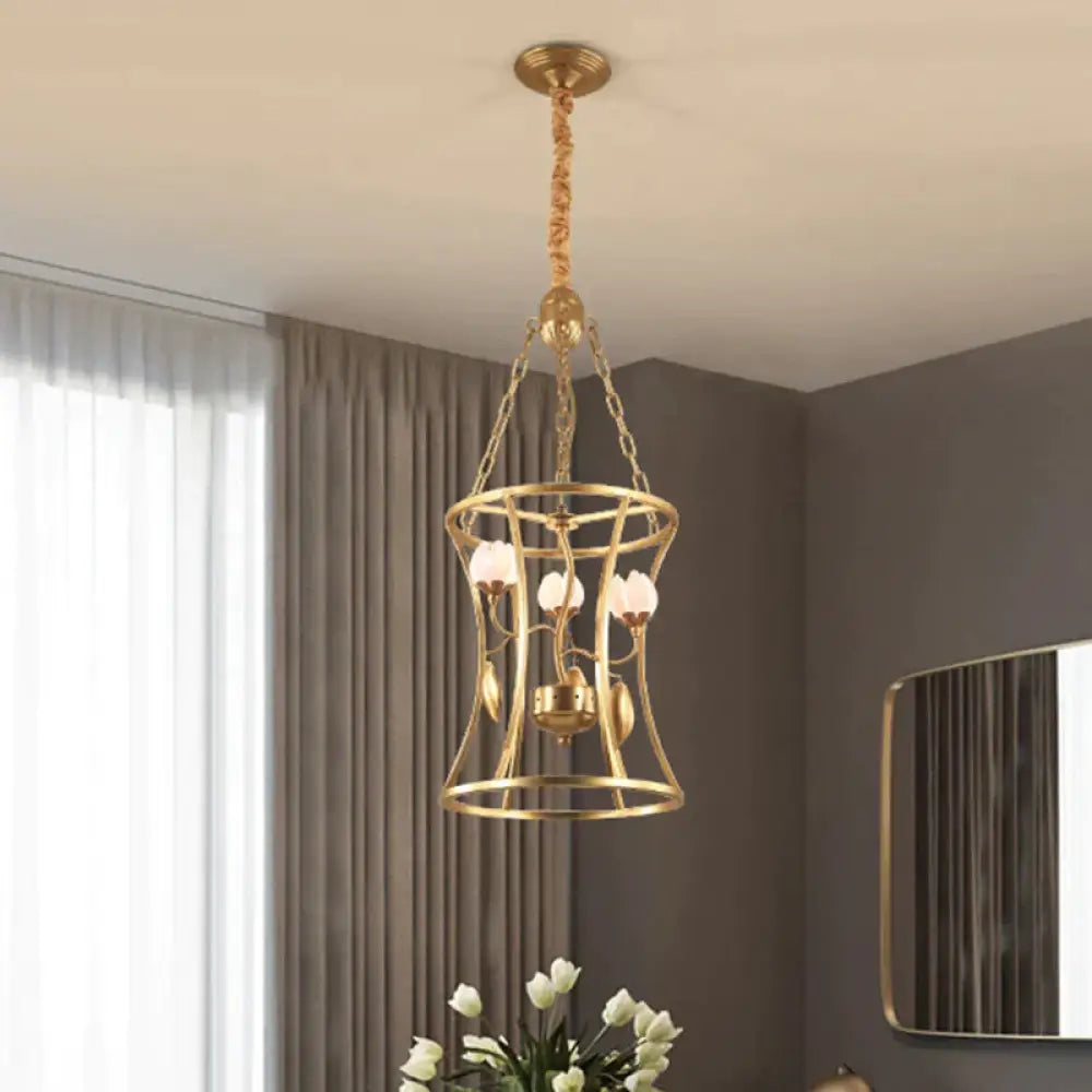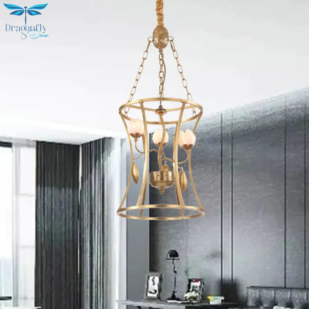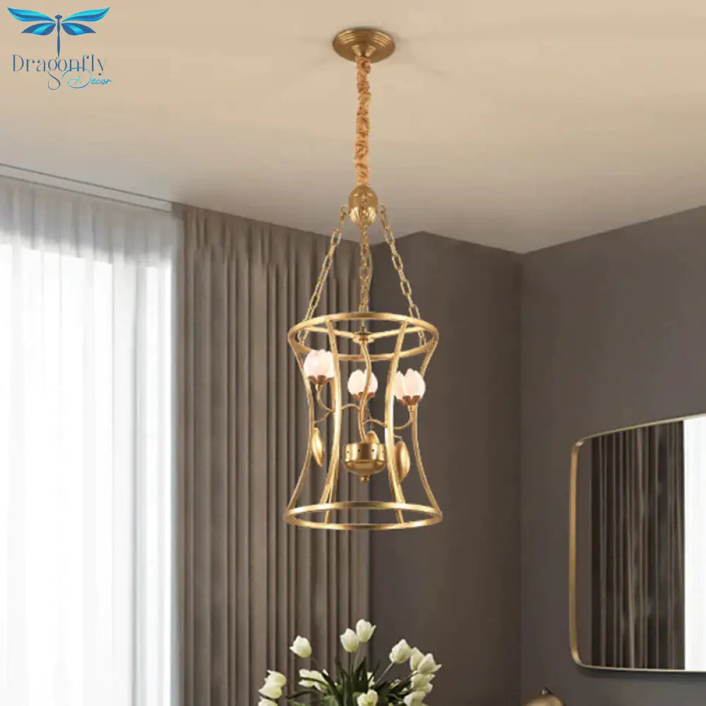 Pastoral Lotus Chandelier Lighting Fixture 3/7 Heads Metal LED Pendant Ceiling Light in Gold for Dining Room