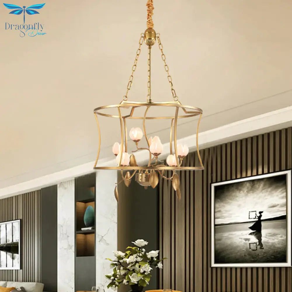 Pastoral Lotus Chandelier Lighting Fixture 3/7 Heads Metal LED Pendant