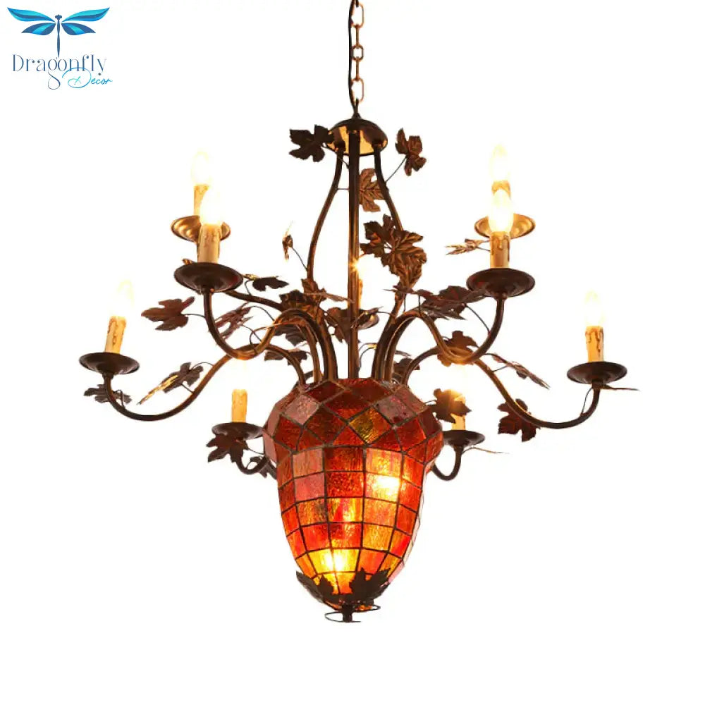 Pinecone Style Rustic Brown Metal 12 Lights Pendant Light Fixture for