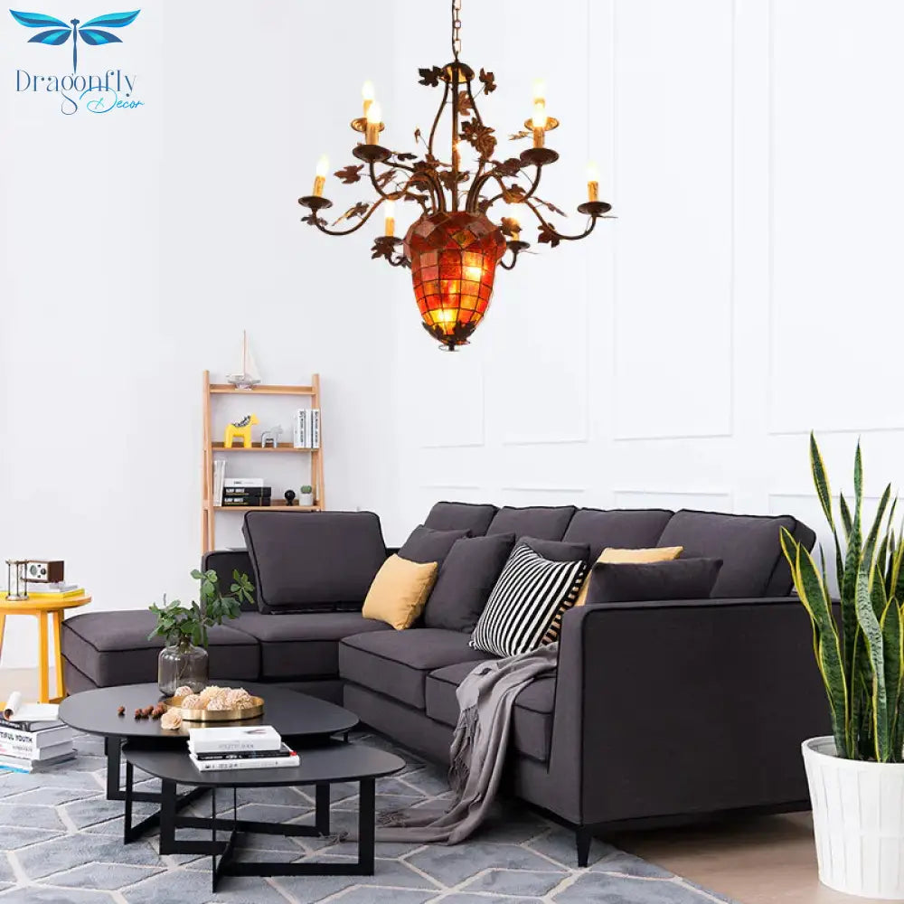 Pinecone Style Rustic Brown Metal 12 Lights Pendant Light Fixture for Living Room