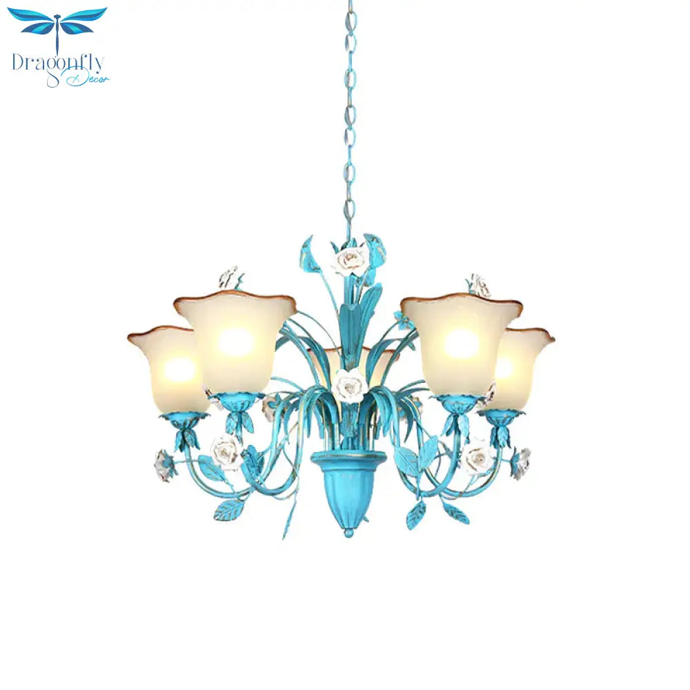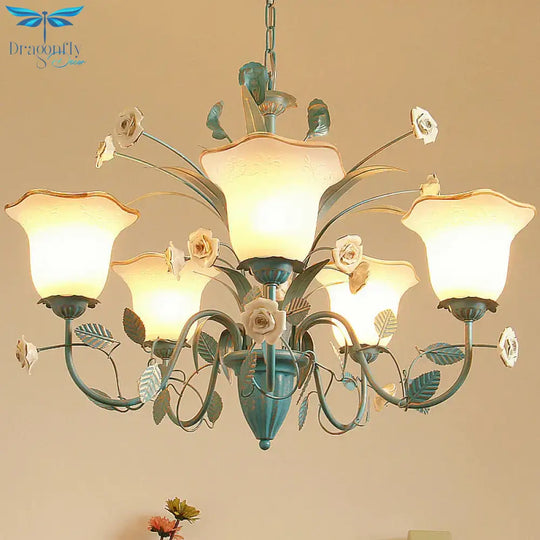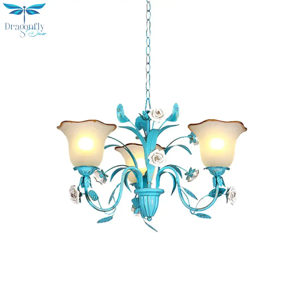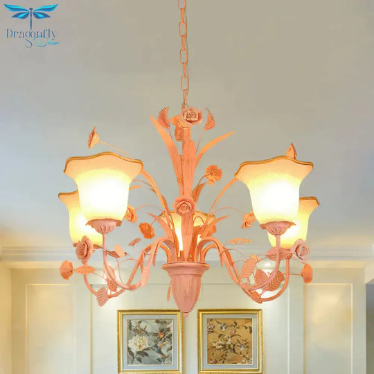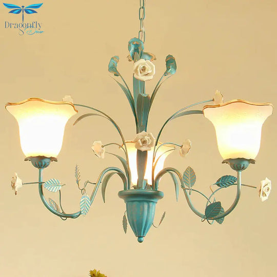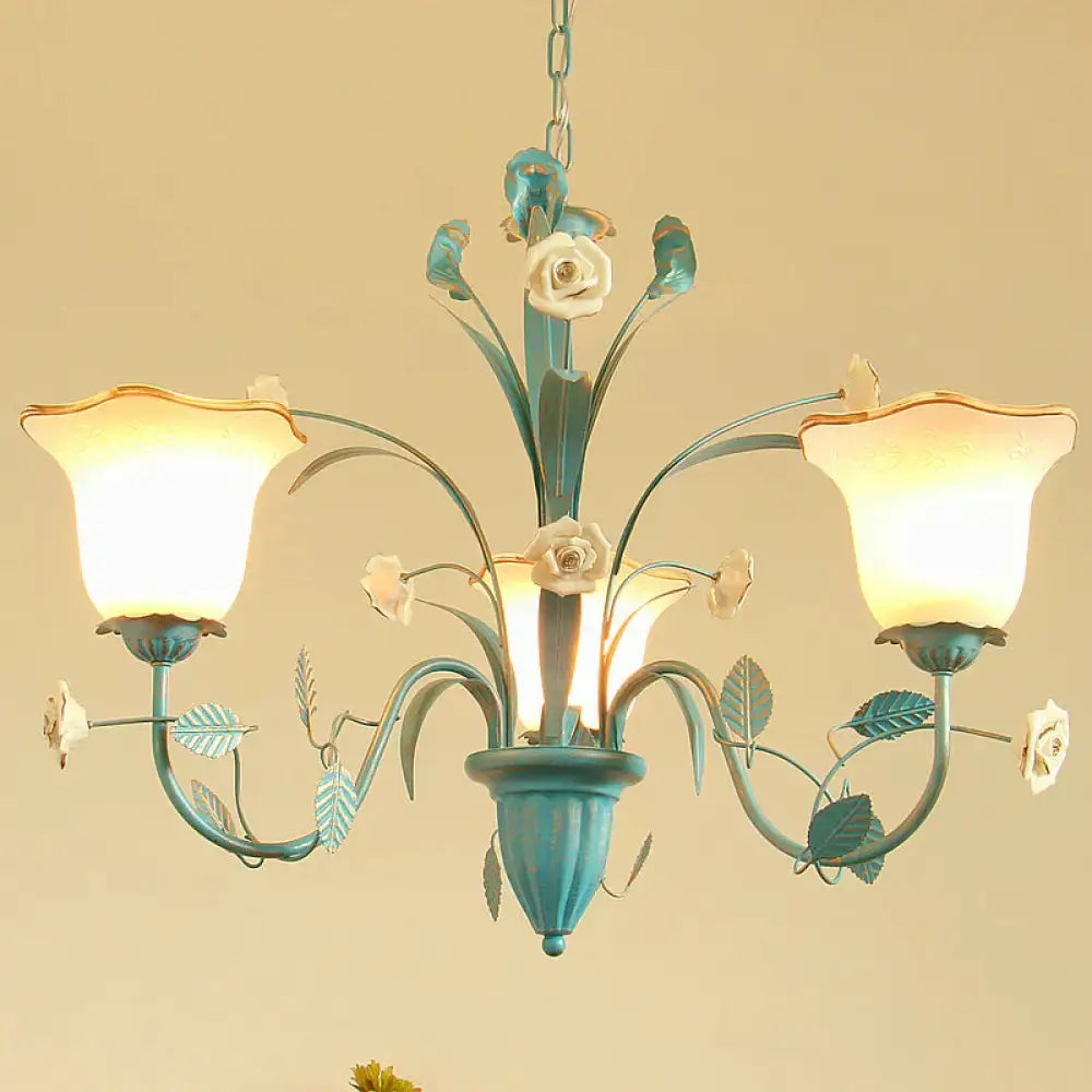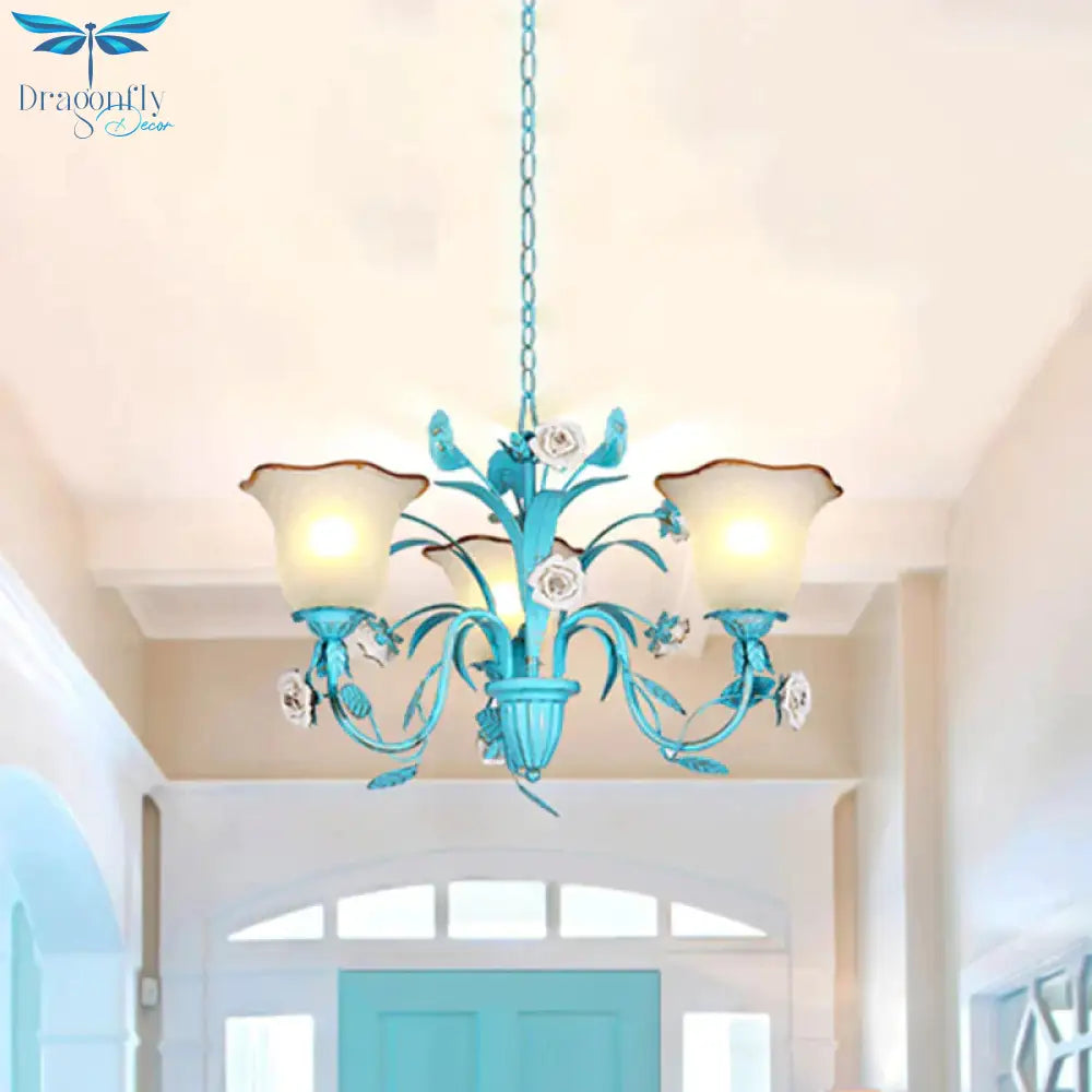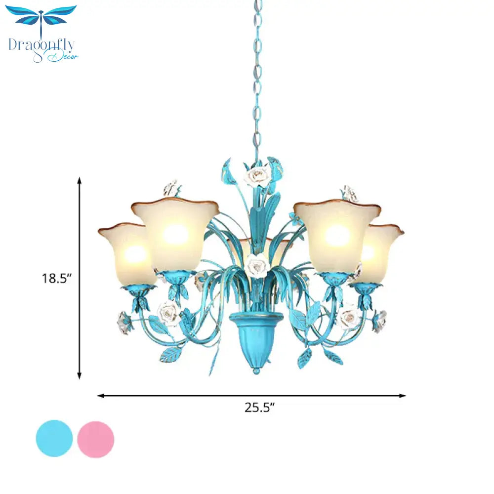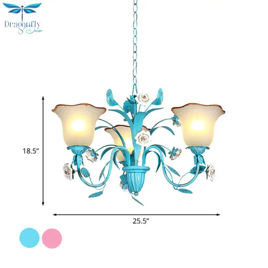 Pink/Blue Blossom Ceiling Chandelier Pastoral Milk Glass 3/5 Lights Di