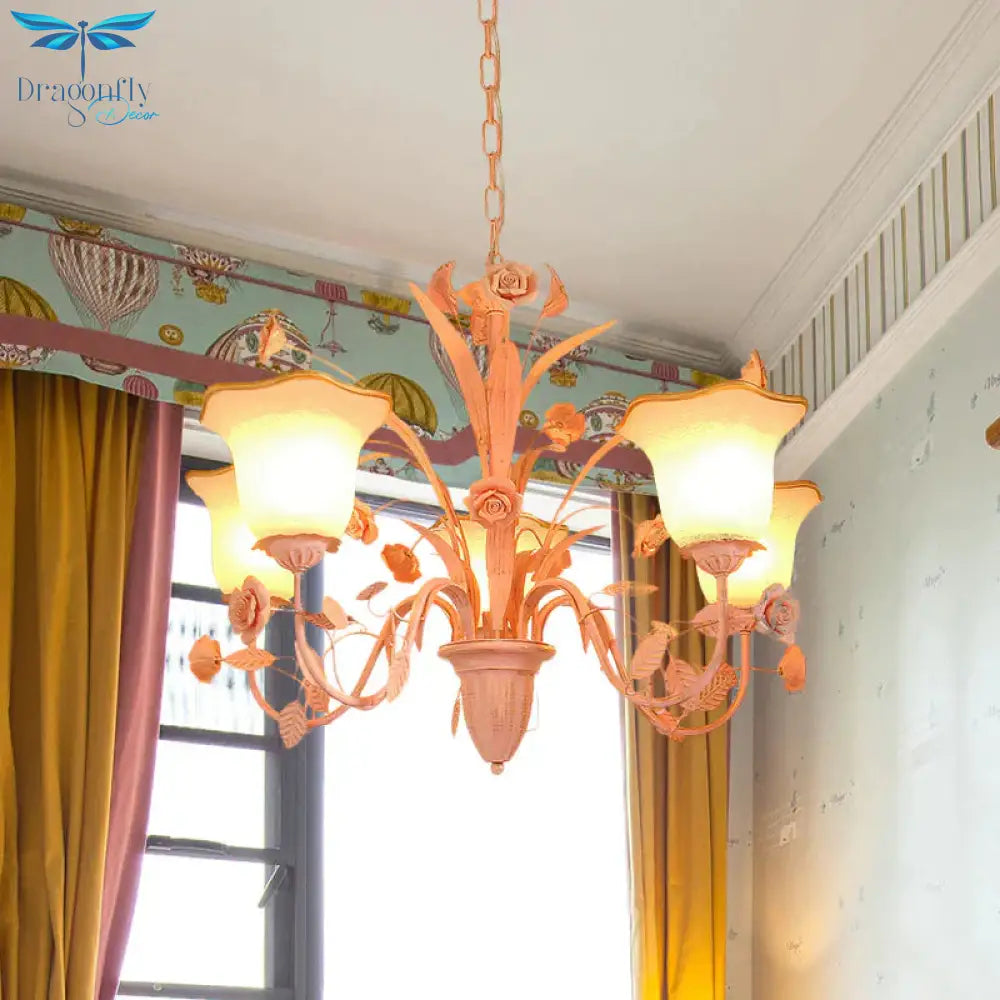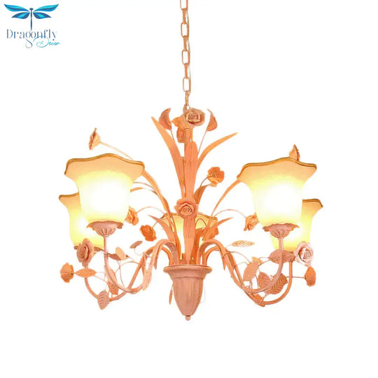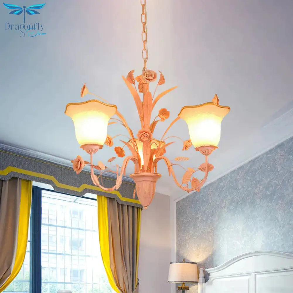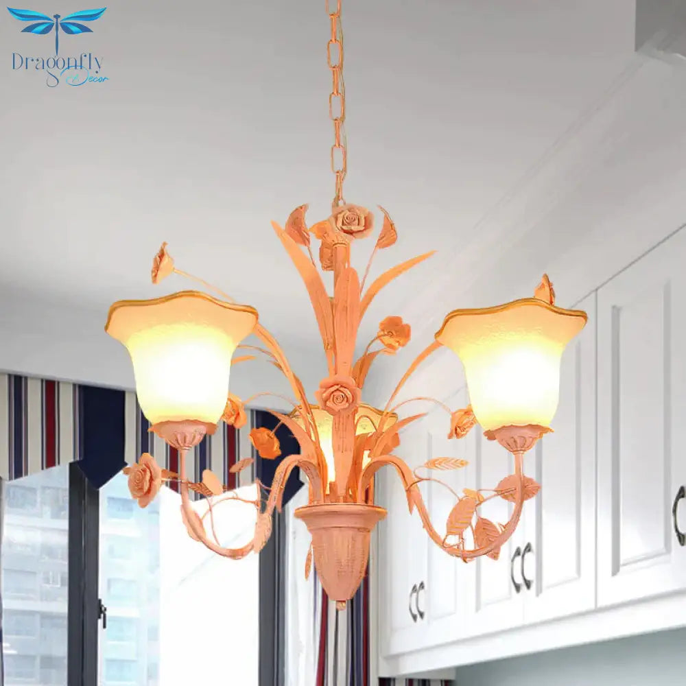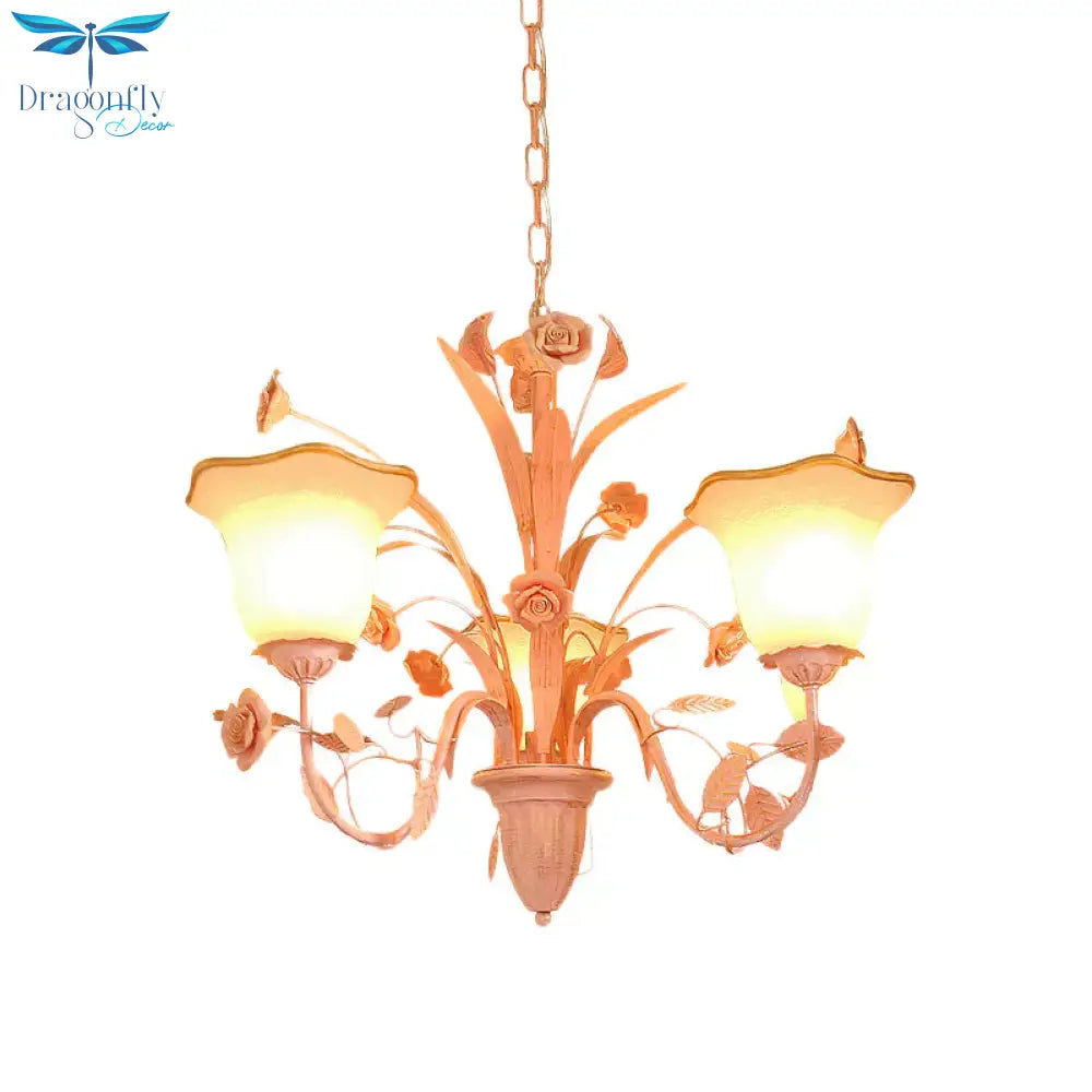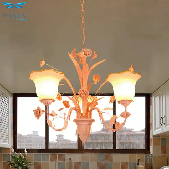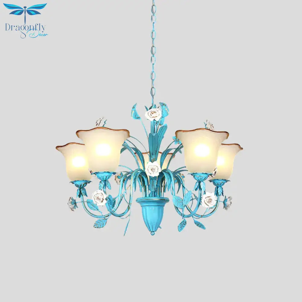 Pink/Blue Blossom Ceiling Chandelier Pastoral Milk Glass 3/5 Lights Di