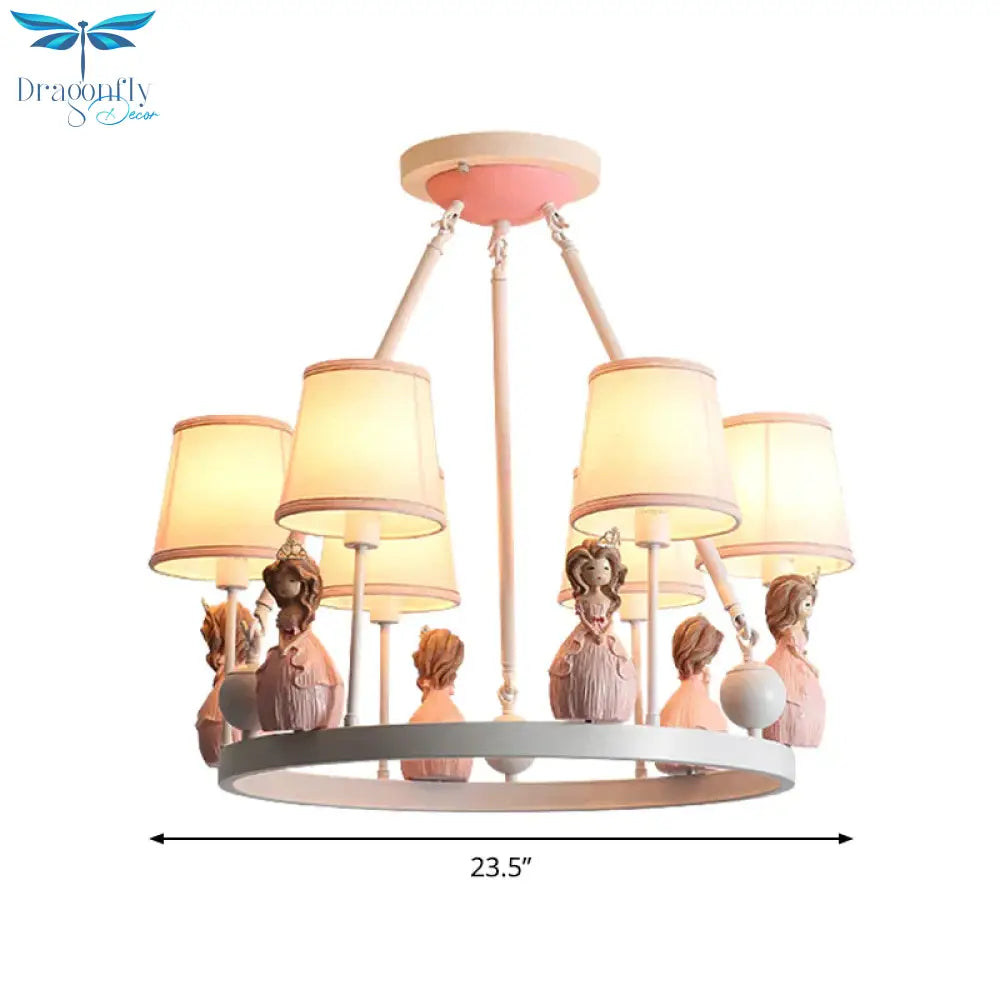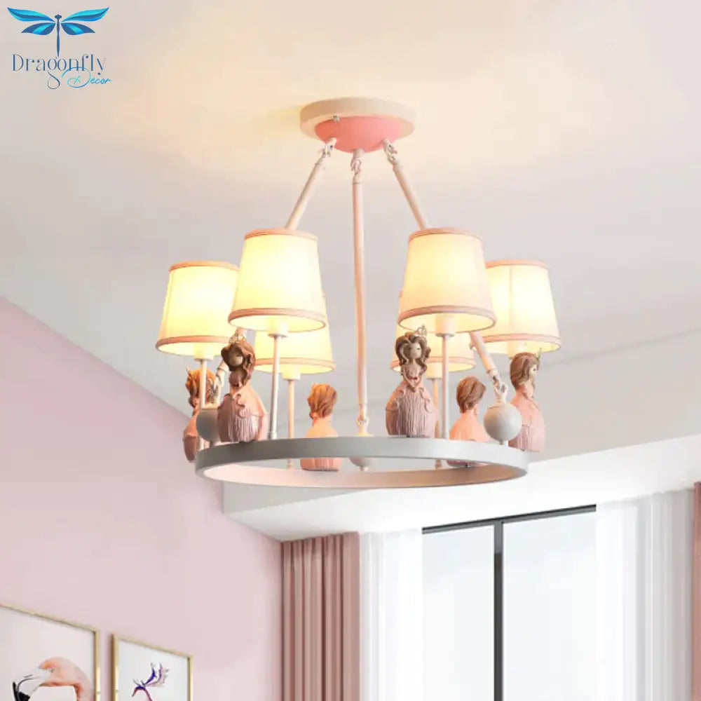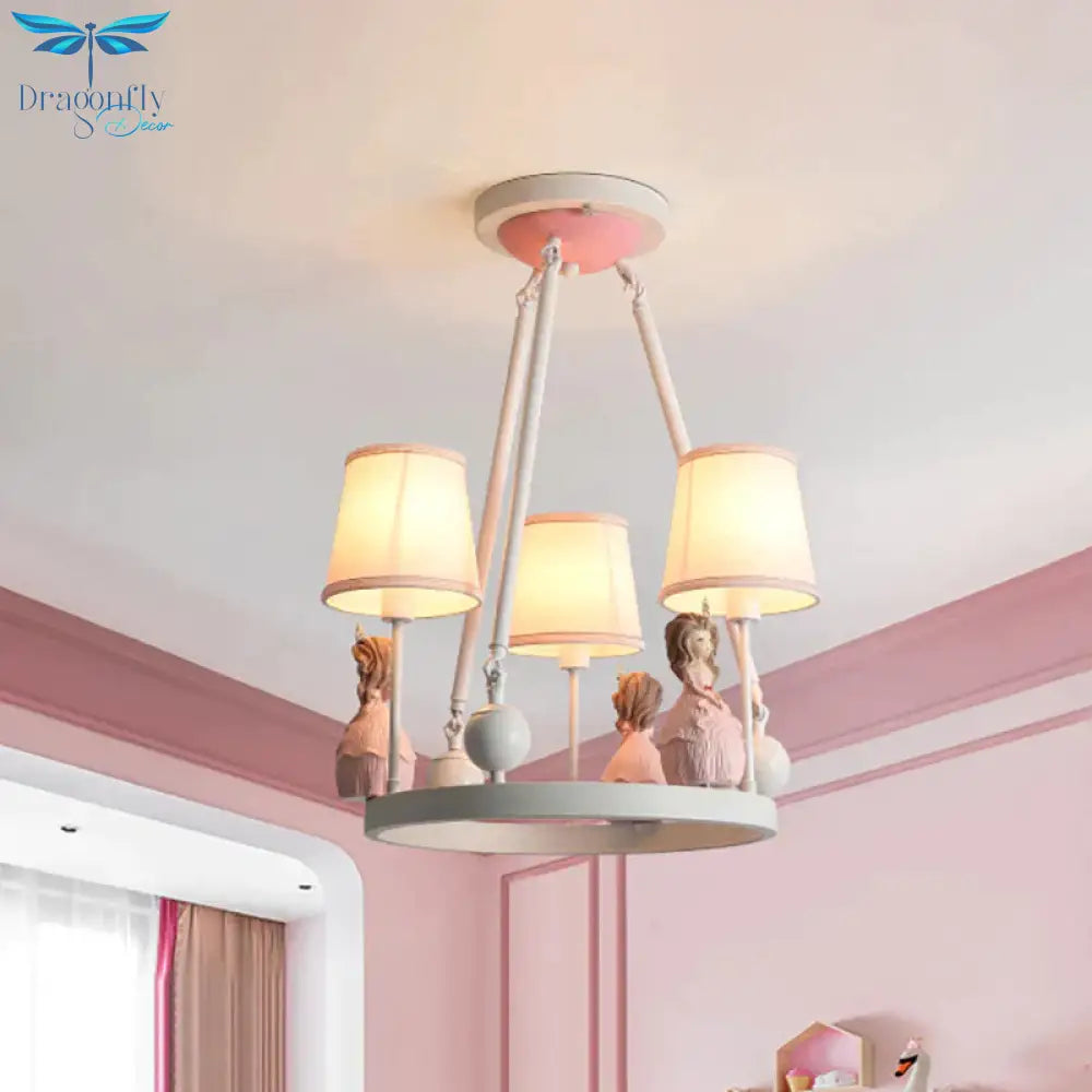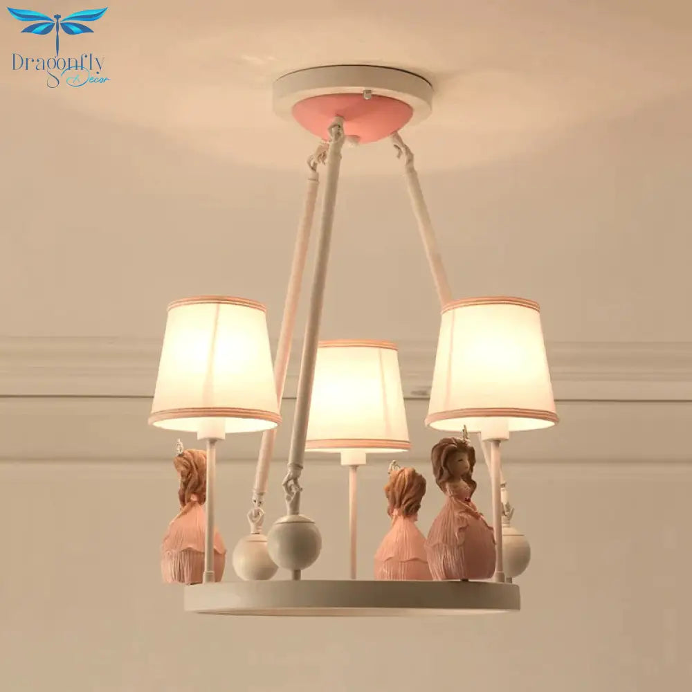 Pink Tapered Shade Hanging Pendant Lights with Princess Cartoon Fabric Hanging Chandelier for Girls Bedroom