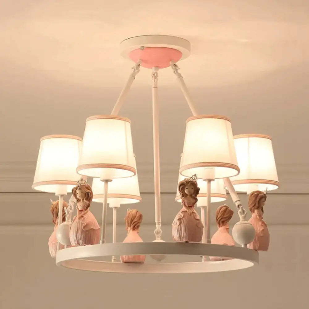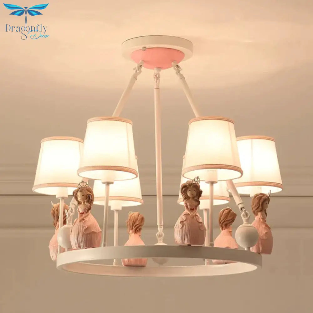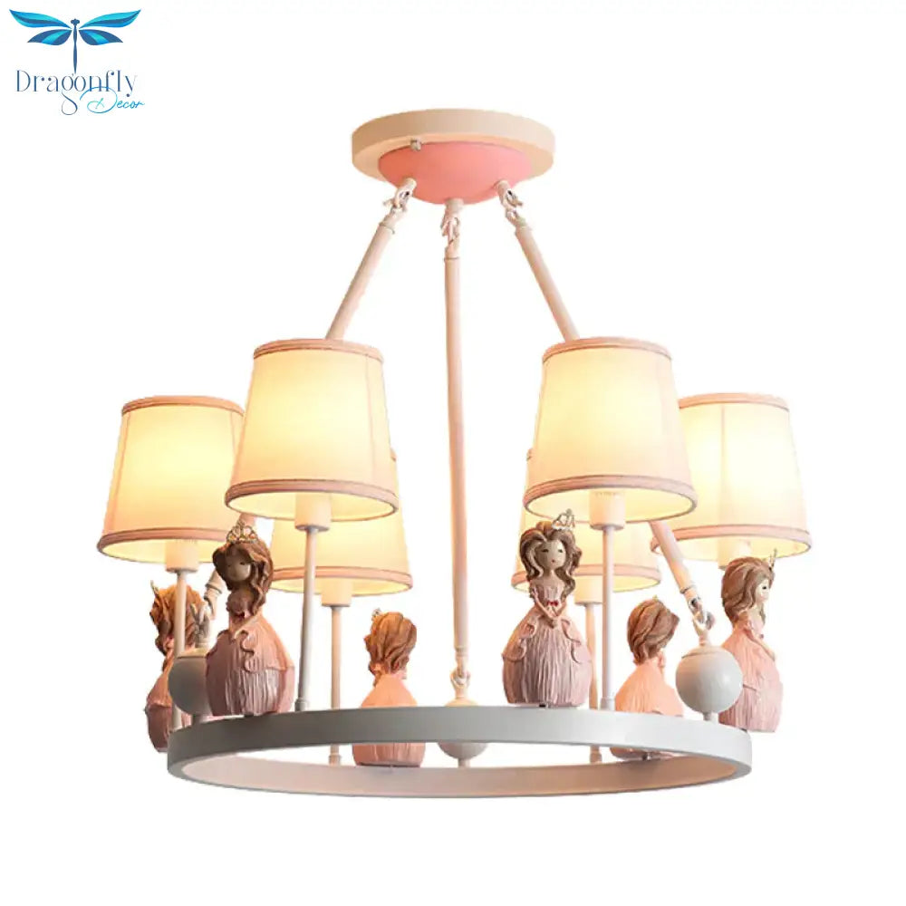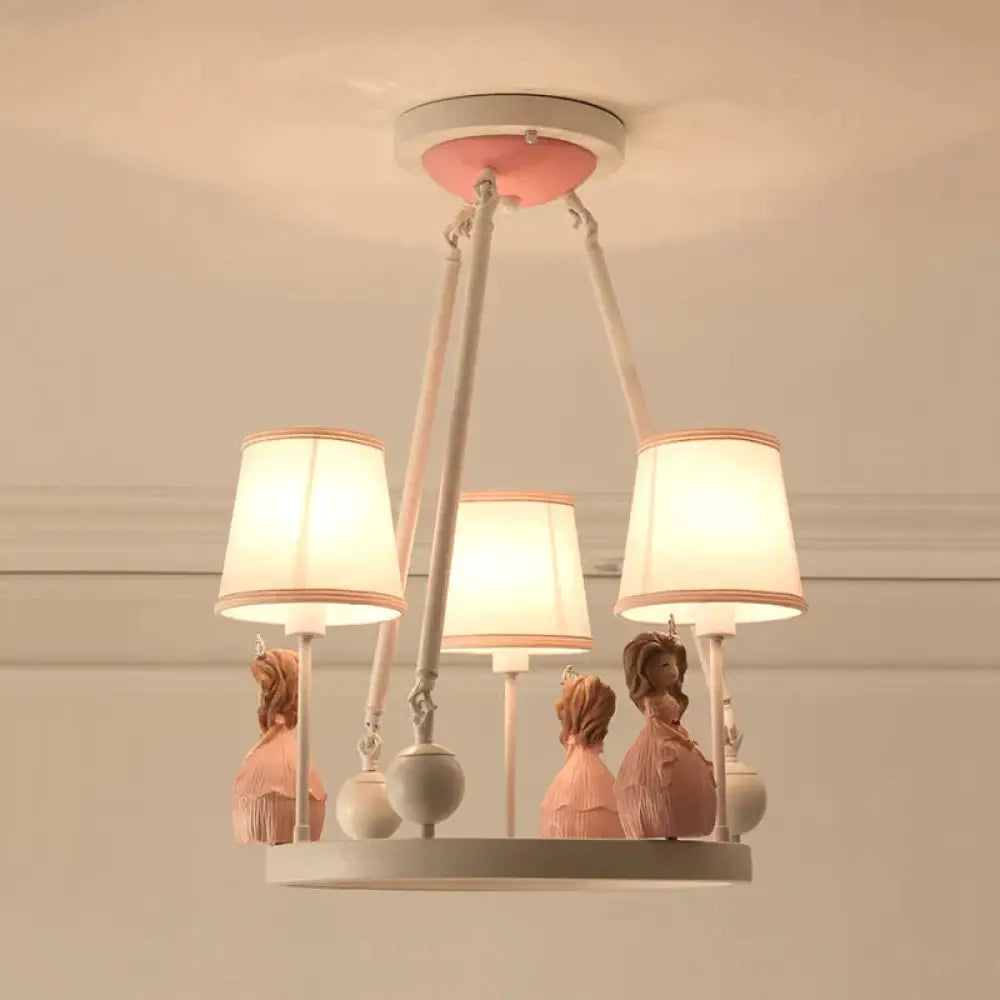Pink Tapered Shade Hanging Pendant Lights with Princess Cartoon Fabric Hanging Chandelier for Girls Bedroom