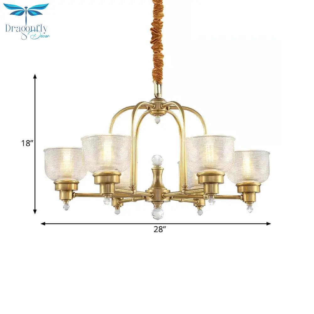 Prismatic Glass Gold Hanging Chandelier Bowl Shade 4/6-Light Coloniali
