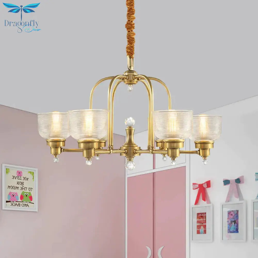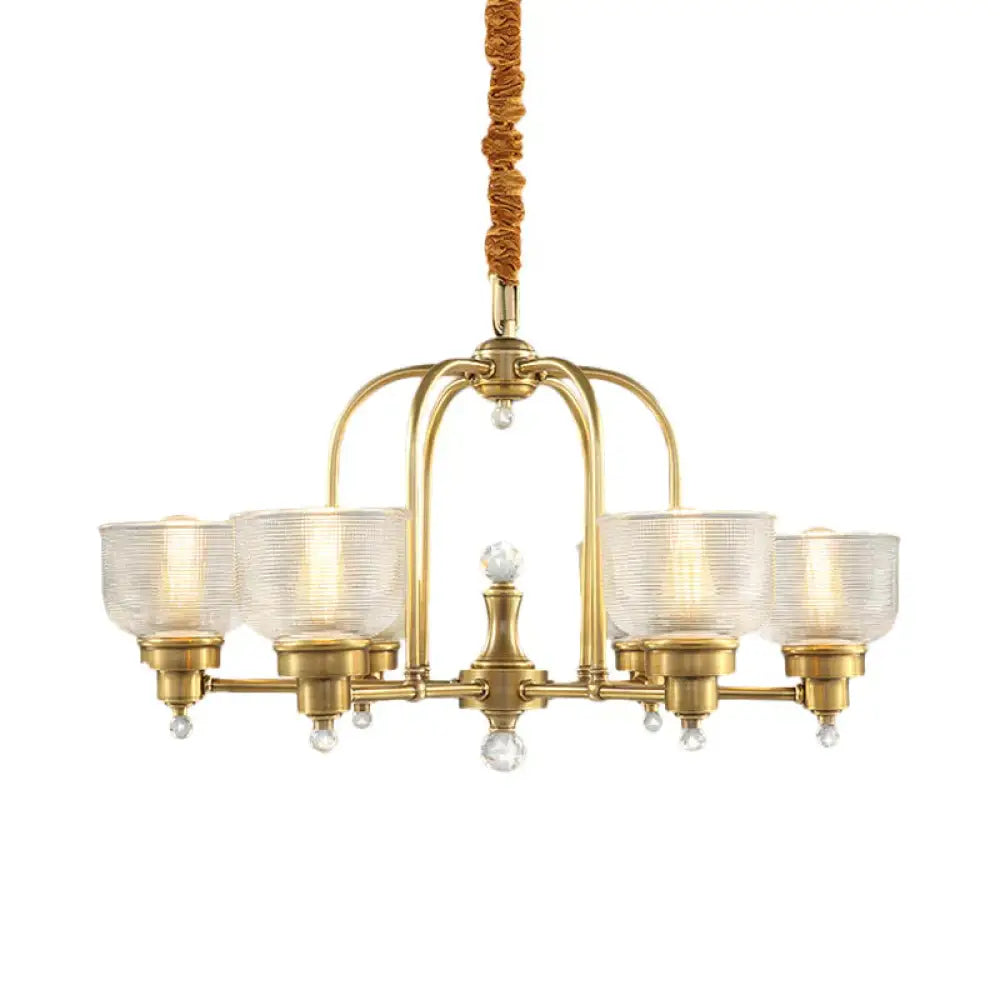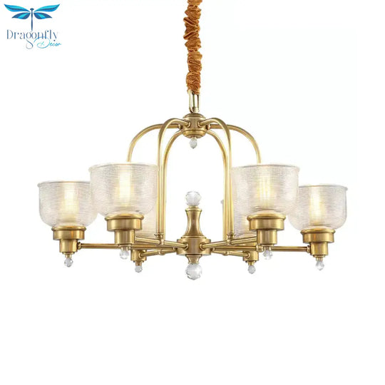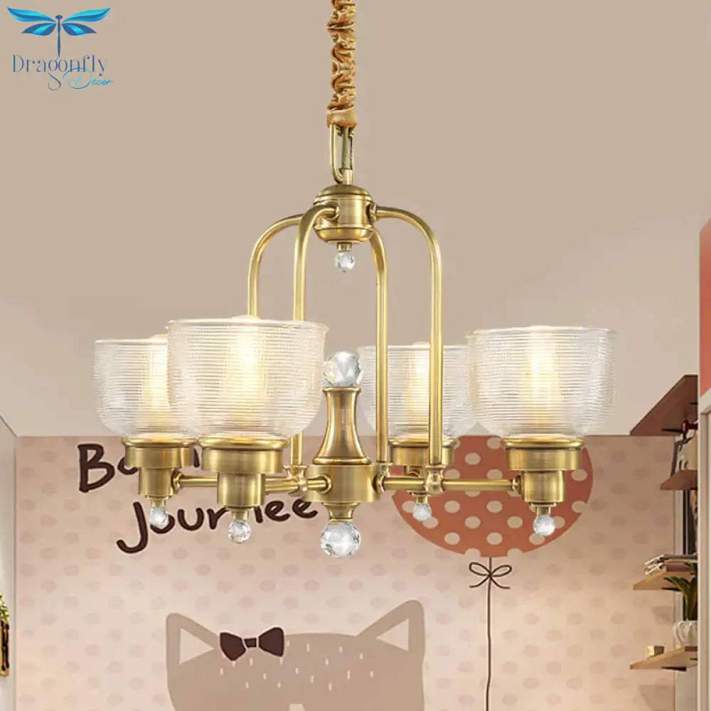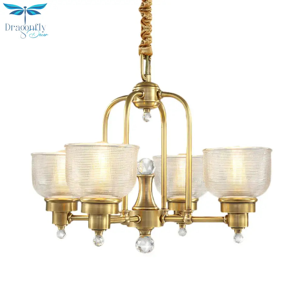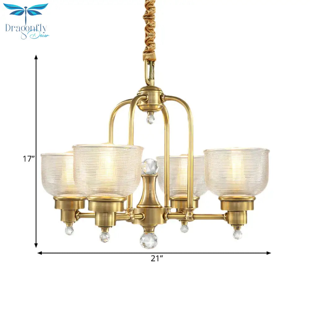 Prismatic Glass Gold Hanging Chandelier Bowl Shade 4/6-Light Colonialist Metal Suspension Pendant Light for Kitchen