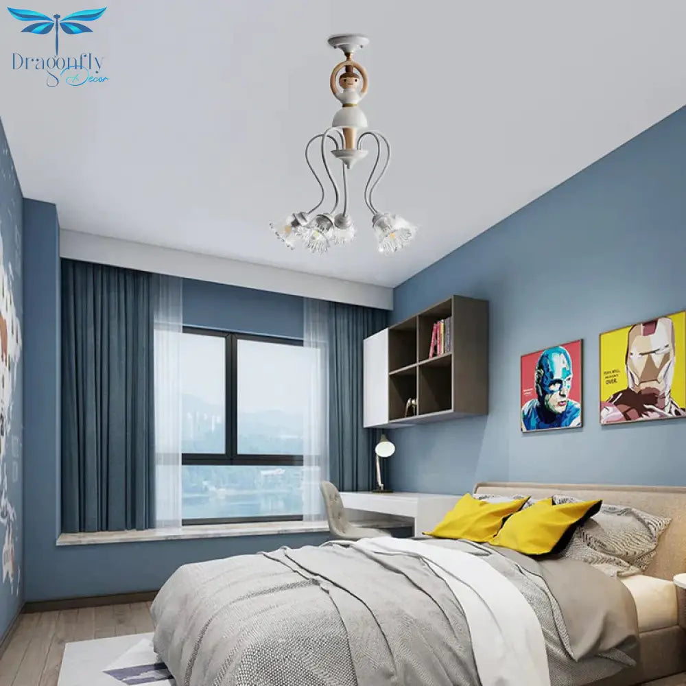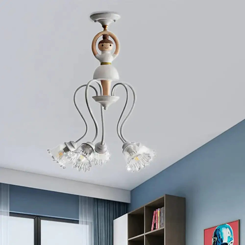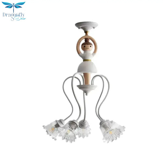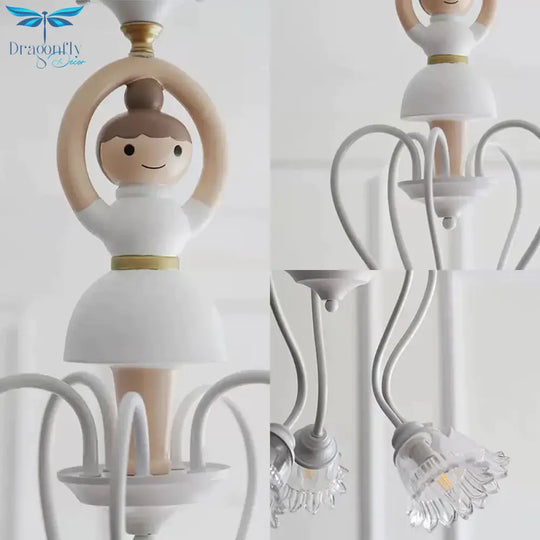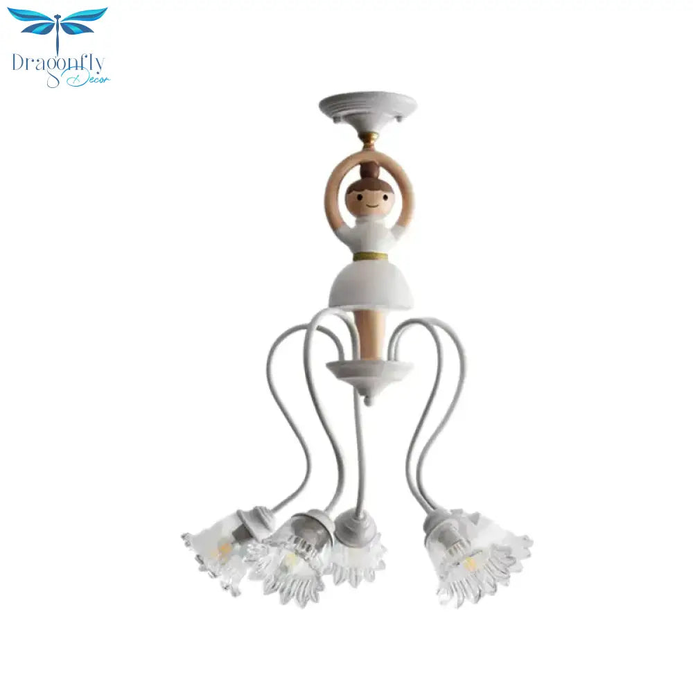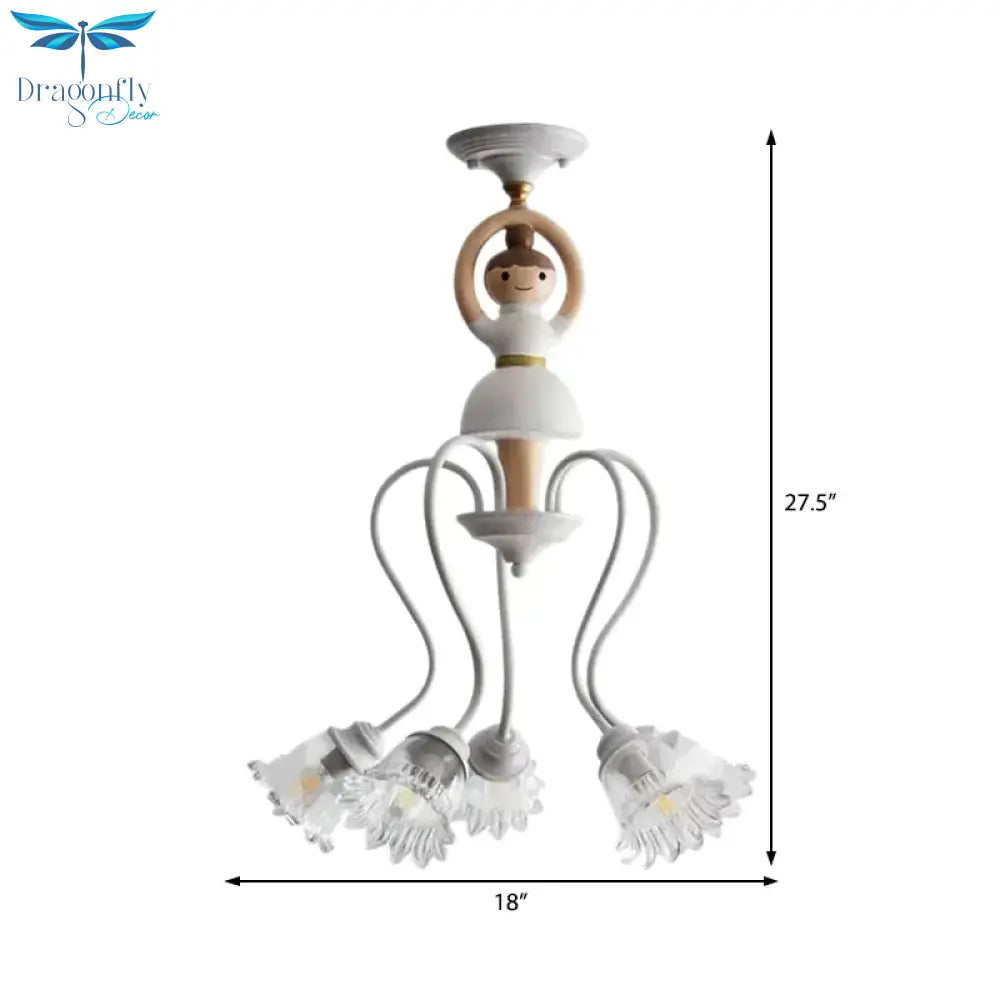 Resin Ballet Pendant Light with Flower Shade 5 Lights Creative Chandelier in White for Kindergarten
