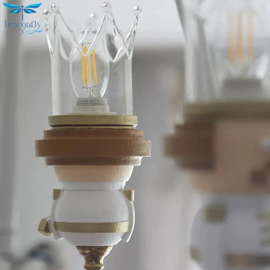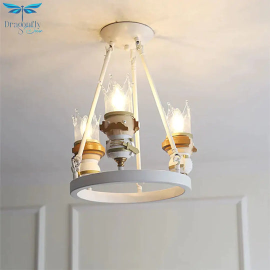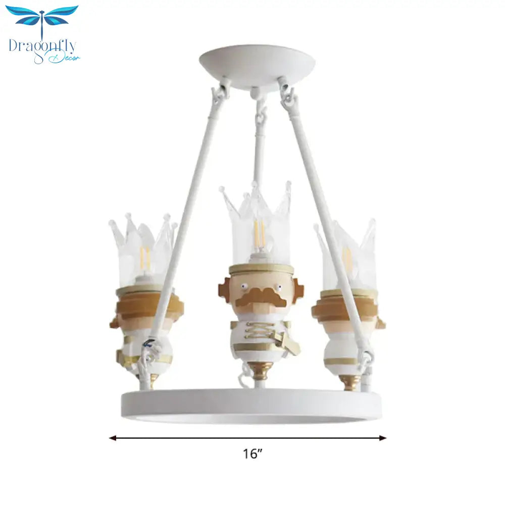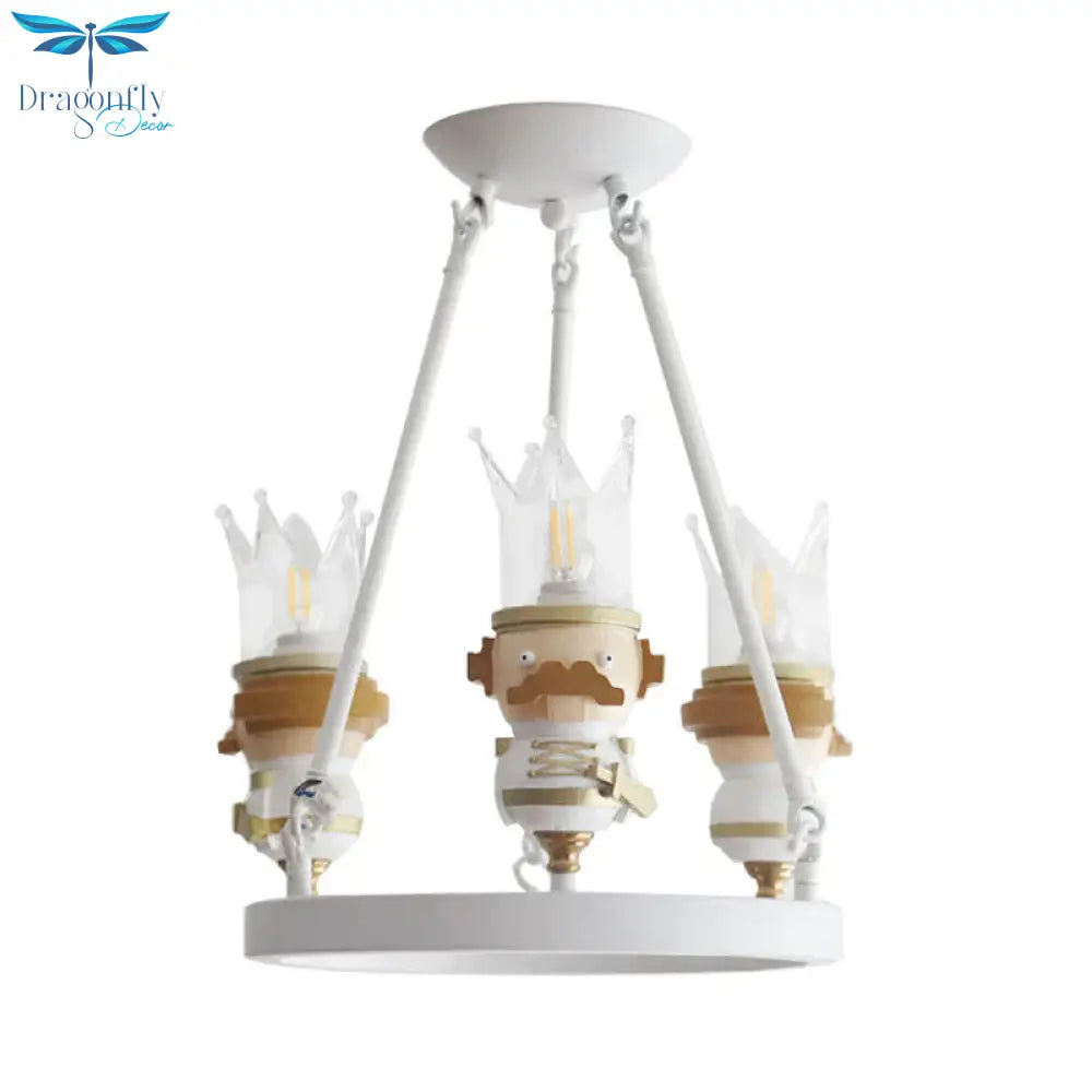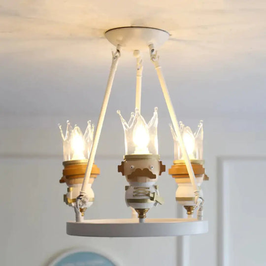 Resin King Hanging Light Cartoon 3 Lights Hanging Chandelier in White for Child Bedroom