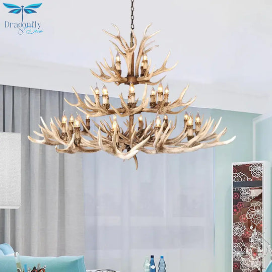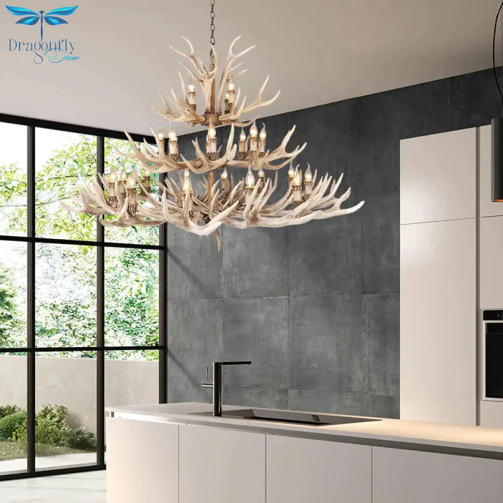 Resin Light Brown Hanging Chandelier Deer Antler 8/12/24 Bulbs Traditional Pendant Light Fixture for Dining Room