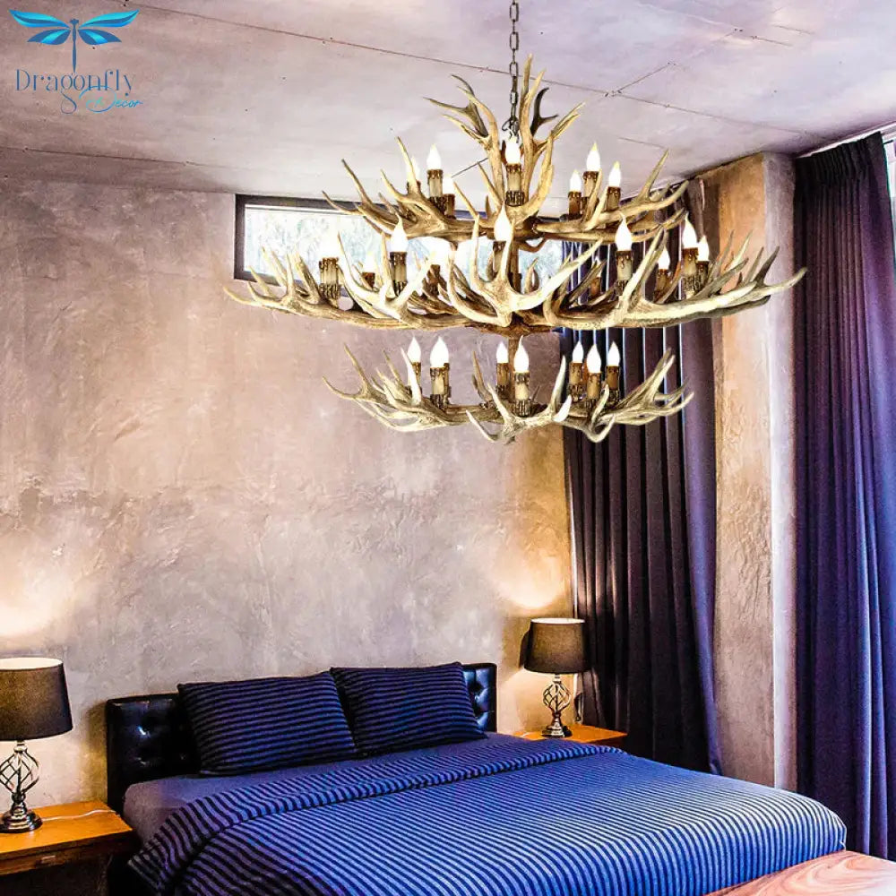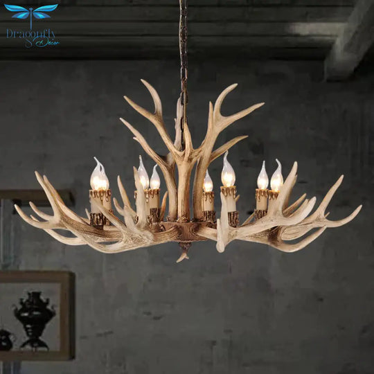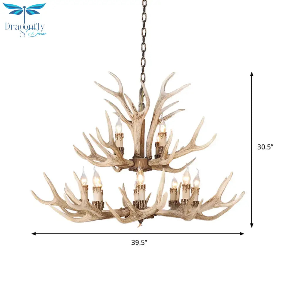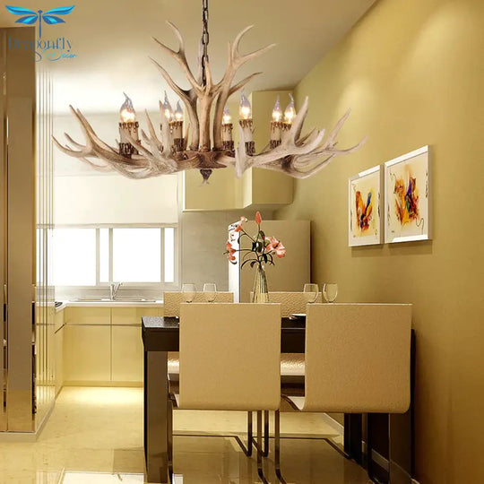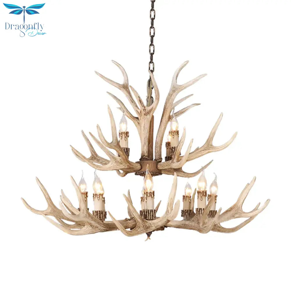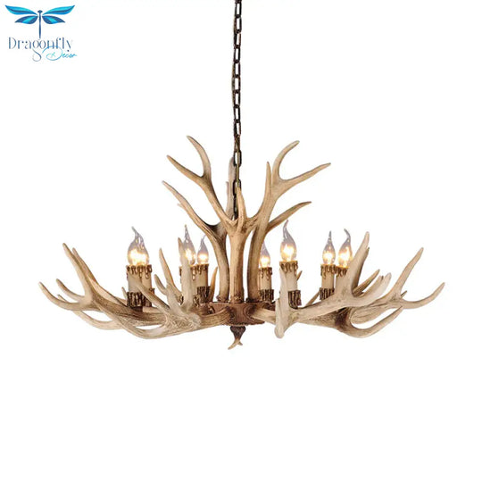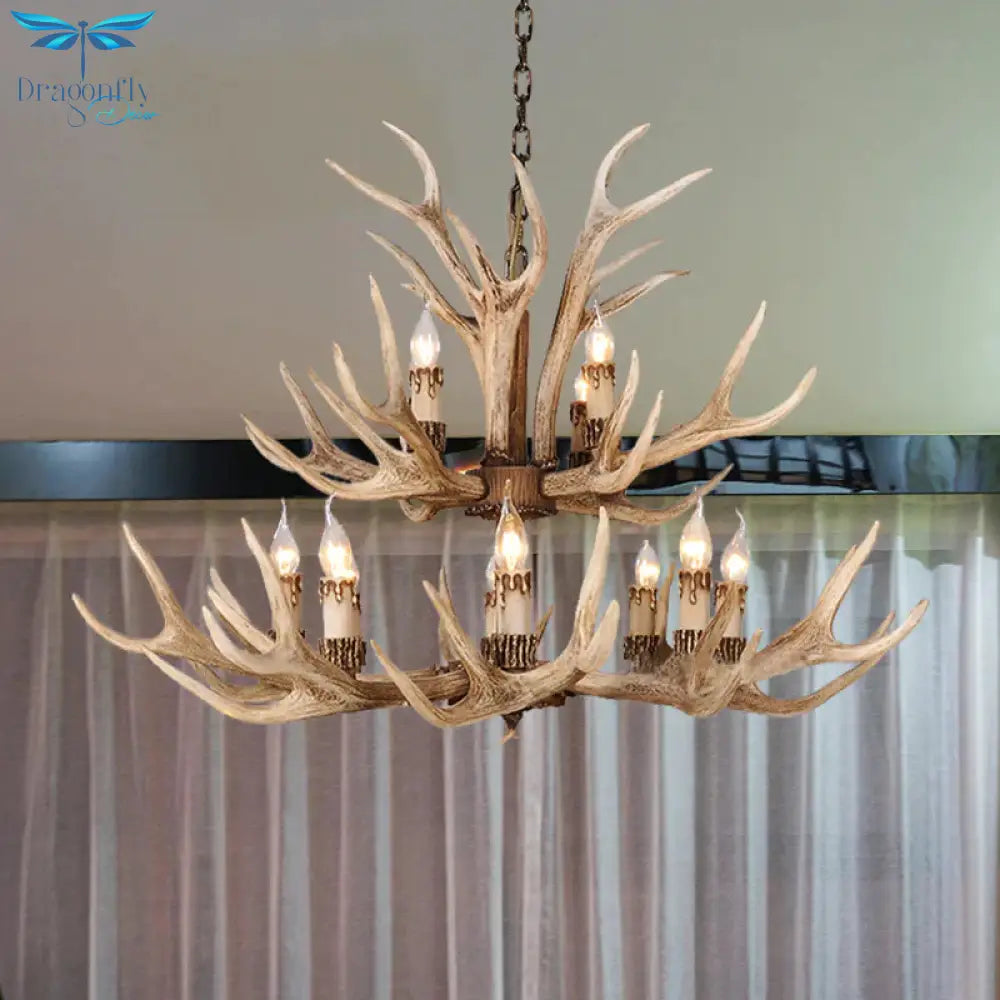 Resin Light Brown Hanging Chandelier Deer Antler 8/12/24 Bulbs Traditi