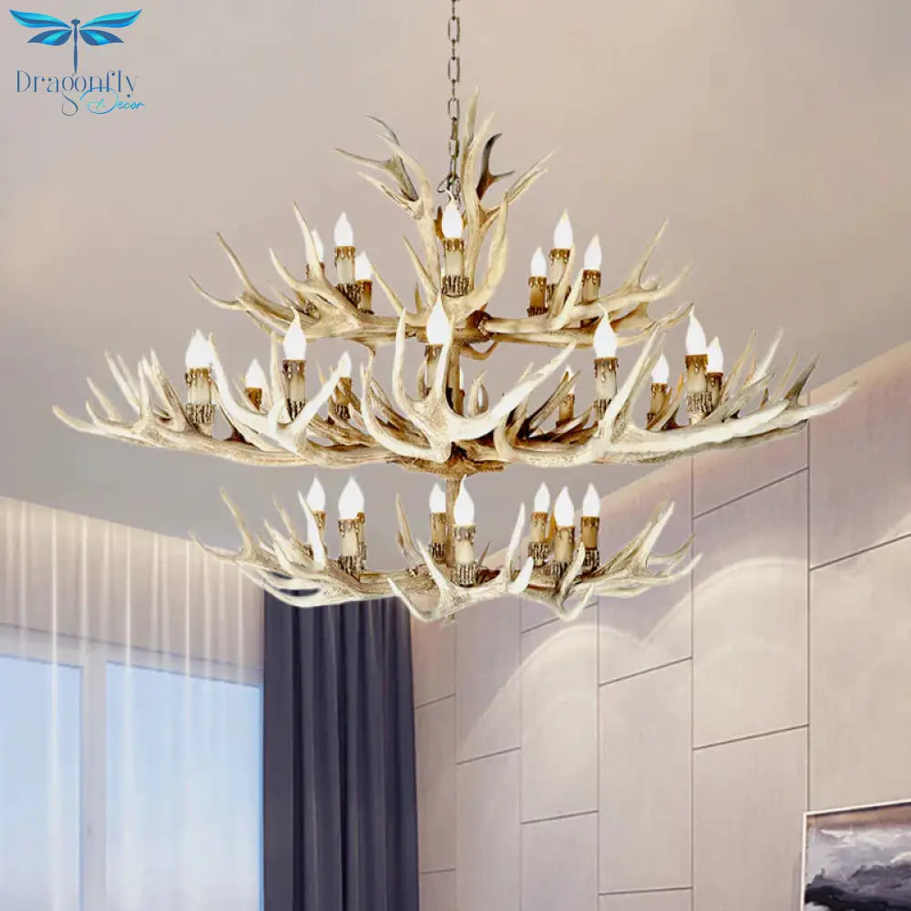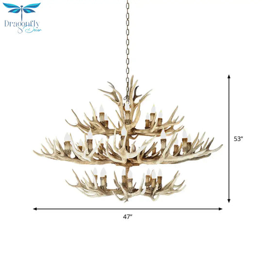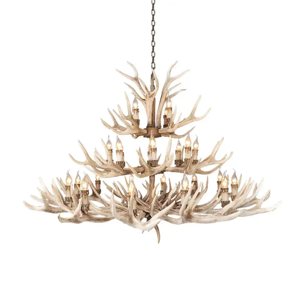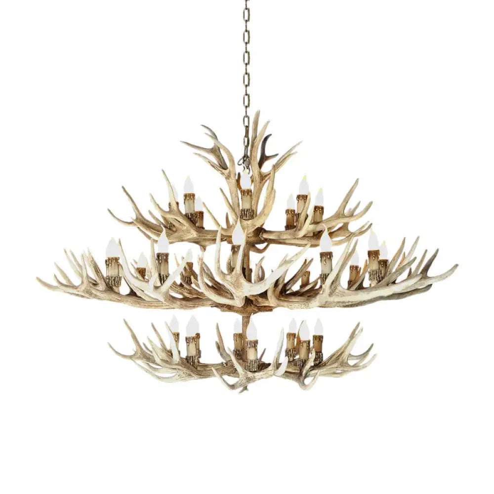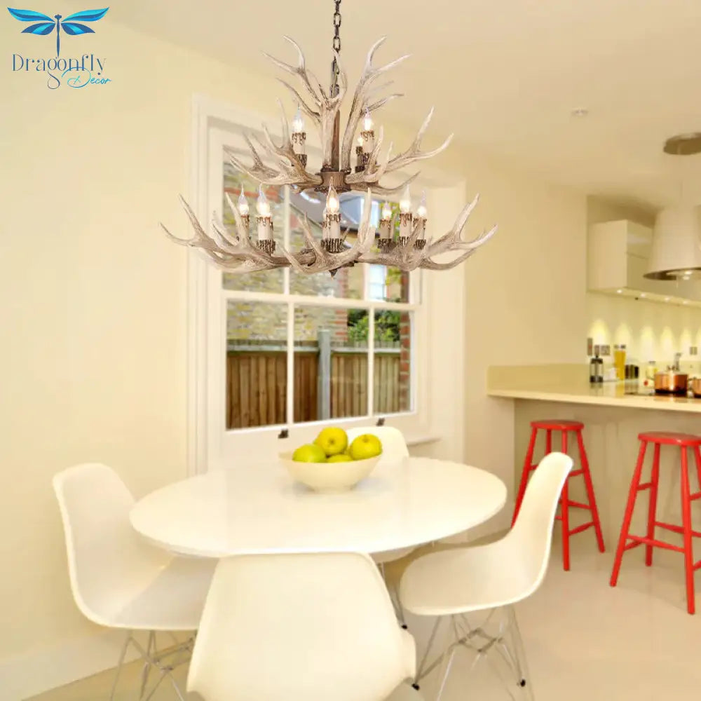 Resin Light Brown Hanging Chandelier Deer Antler 8/12/24 Bulbs Traditi