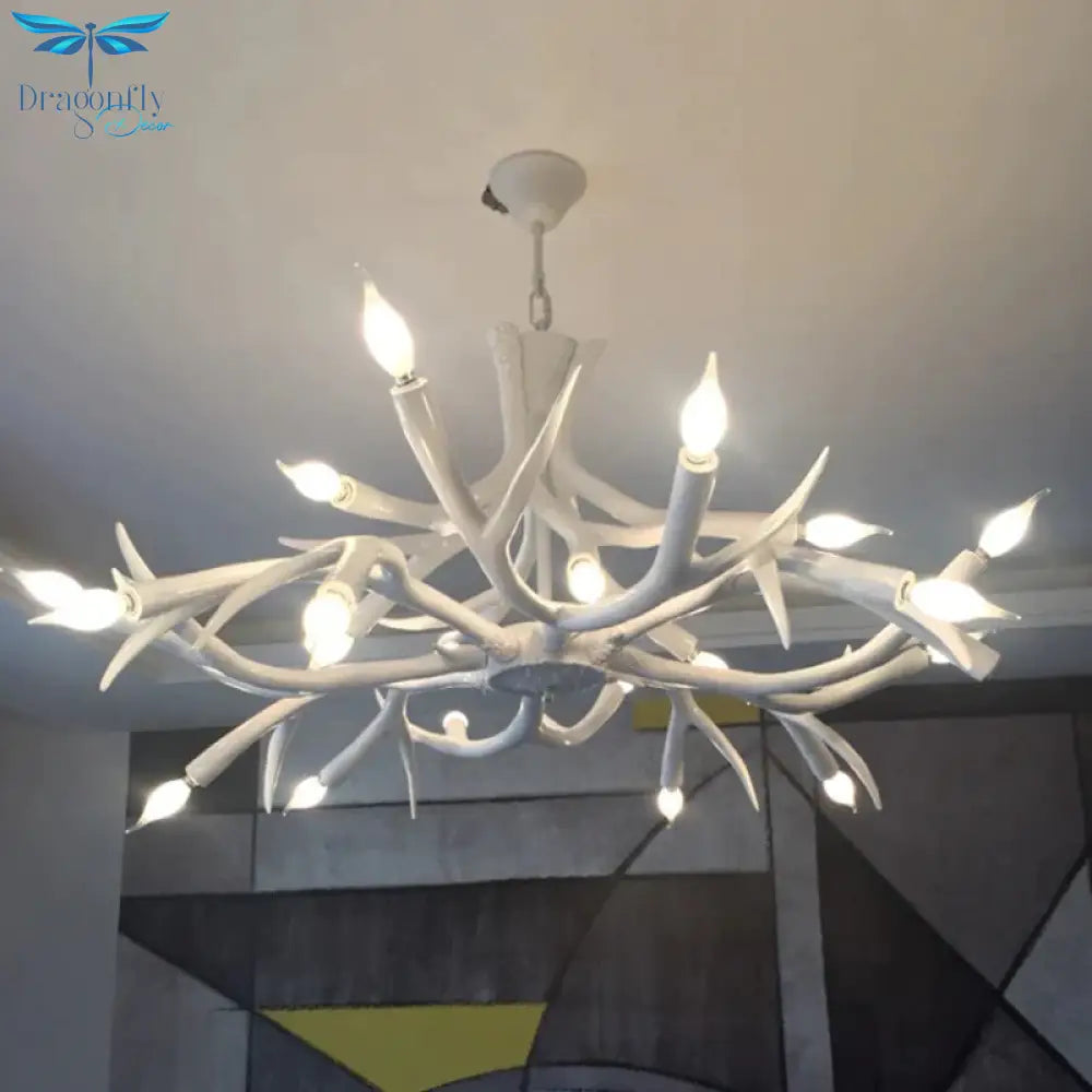 Resin Sputnik Chandelier Lamp Contemporary 22-Head Dining Room Pendant Ceiling Light in White