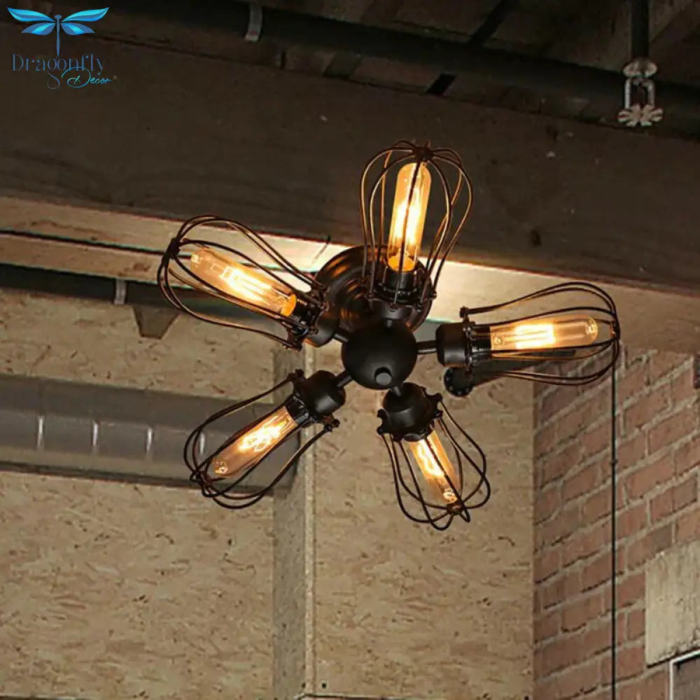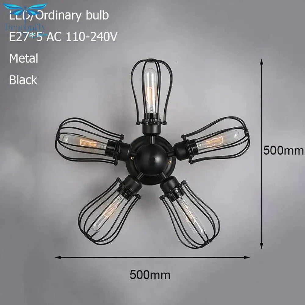 Retro Vintage Black 5 Lights Grln Ceiling E27 Lamp Fixtures For Home Bedroom/Living Room/Bar/Cafe