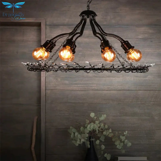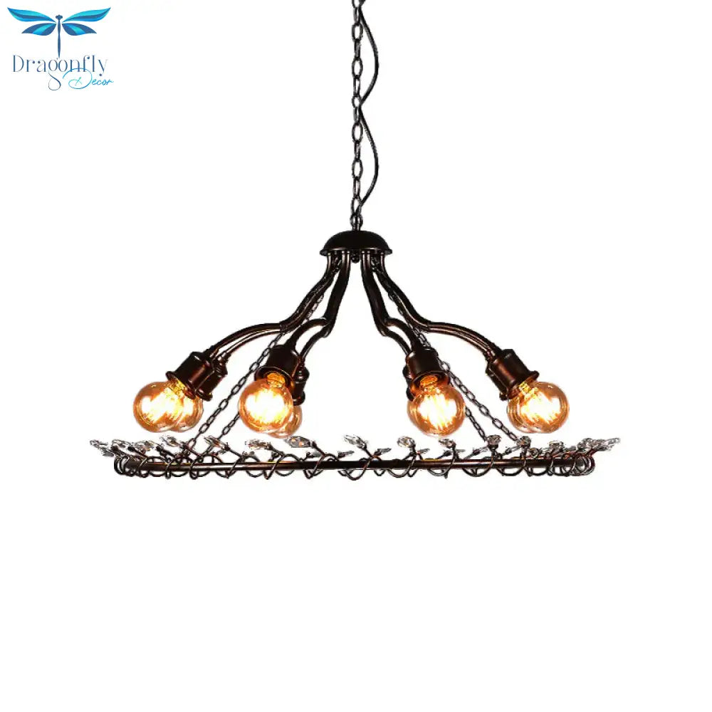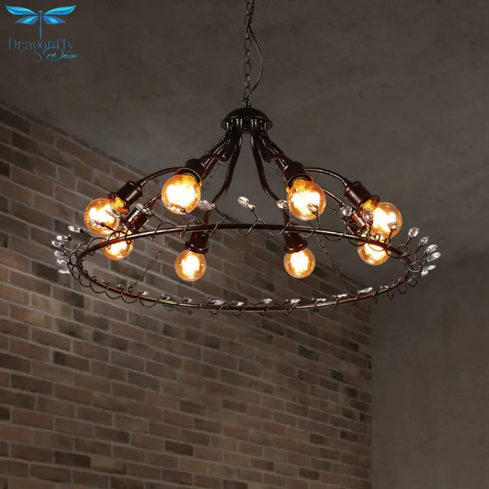 Ring Suspension Light with Clear Crystal Bead Retro Country 8 Lights Metallic Chandelier Light