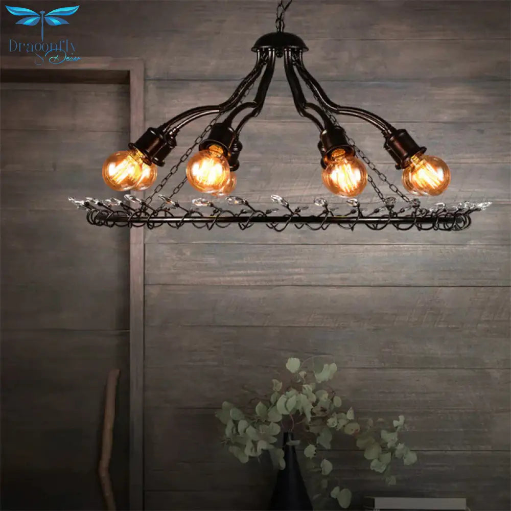 Ring Suspension Light with Clear Crystal Bead Retro Country 8 Lights M