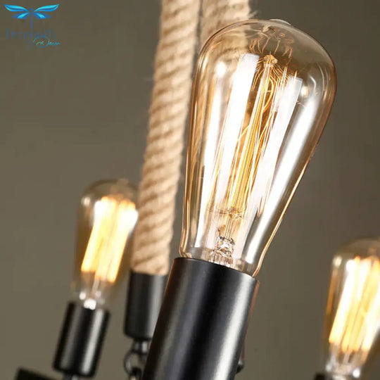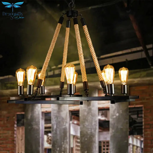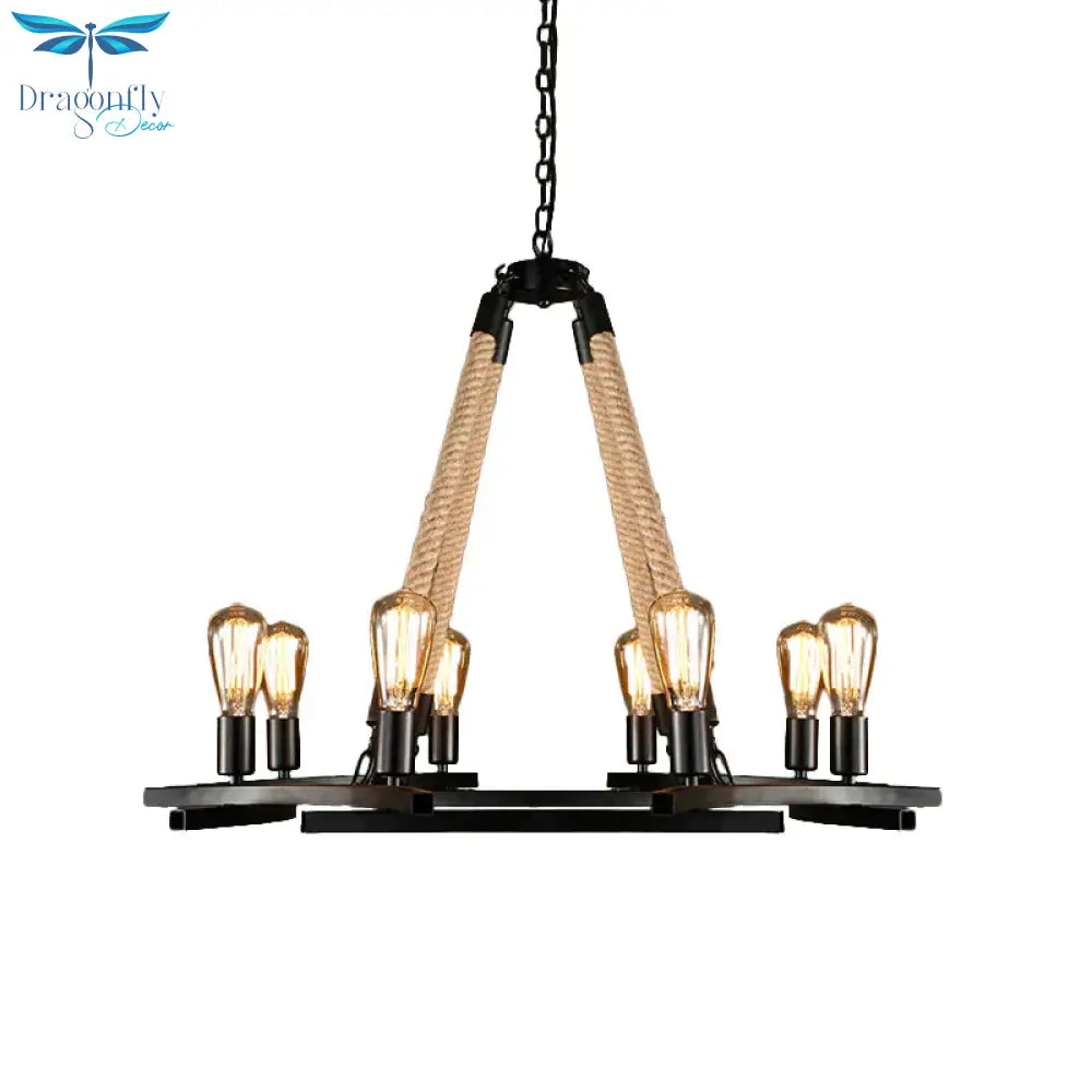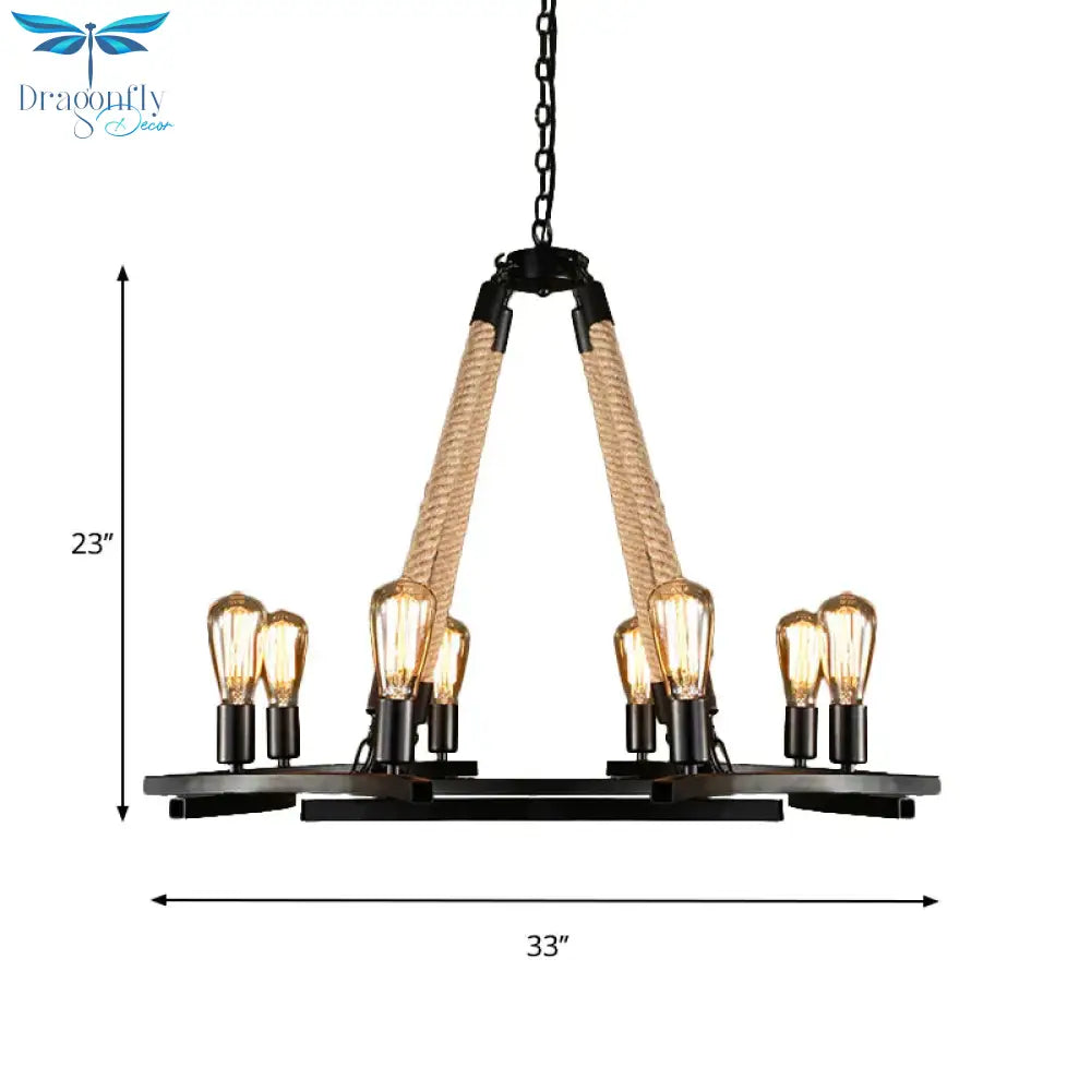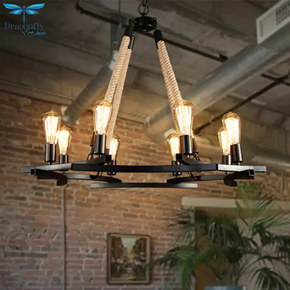 Round Metal Ceiling Lamp Traditional 8-Bulb Dining Room Pendant Chandelier in Black