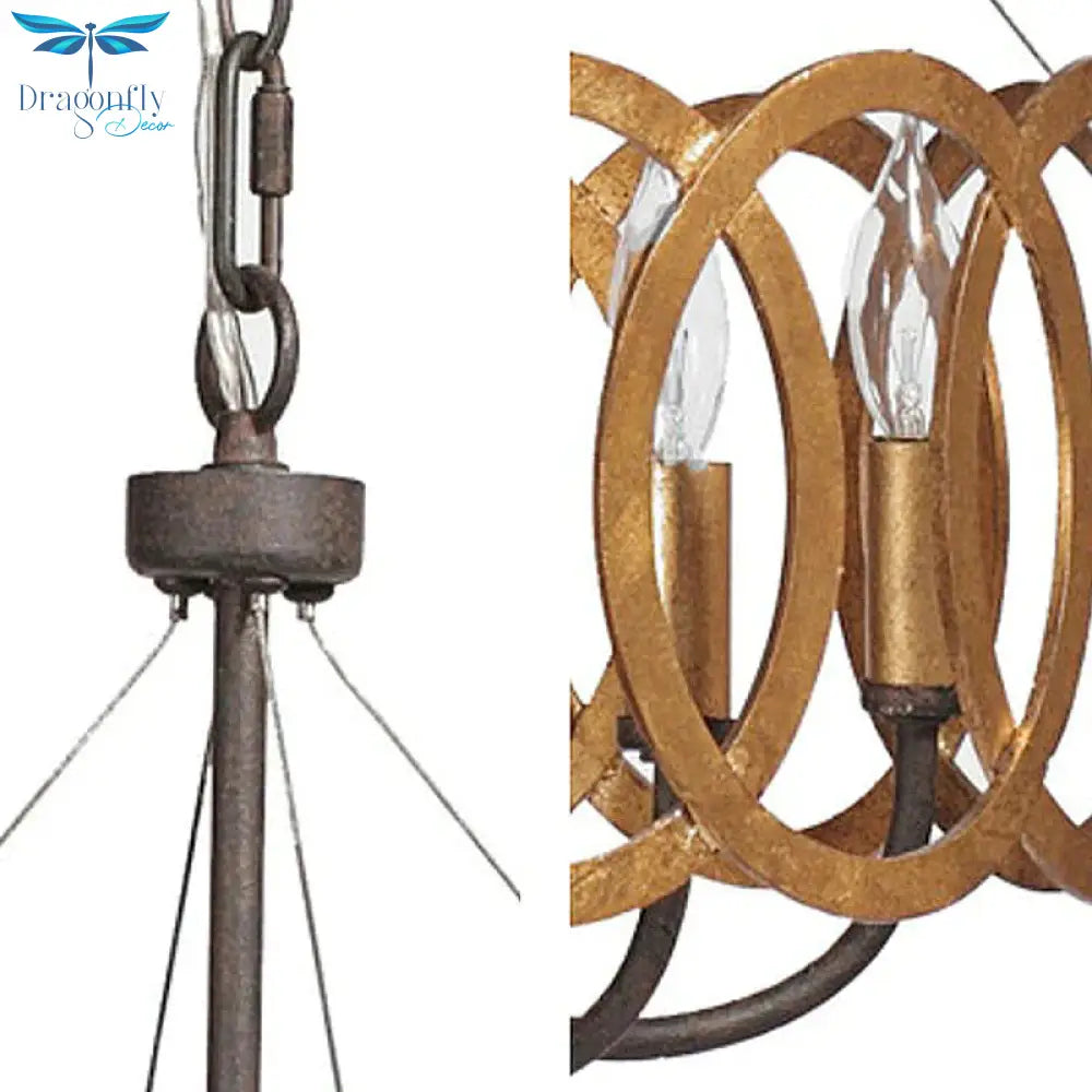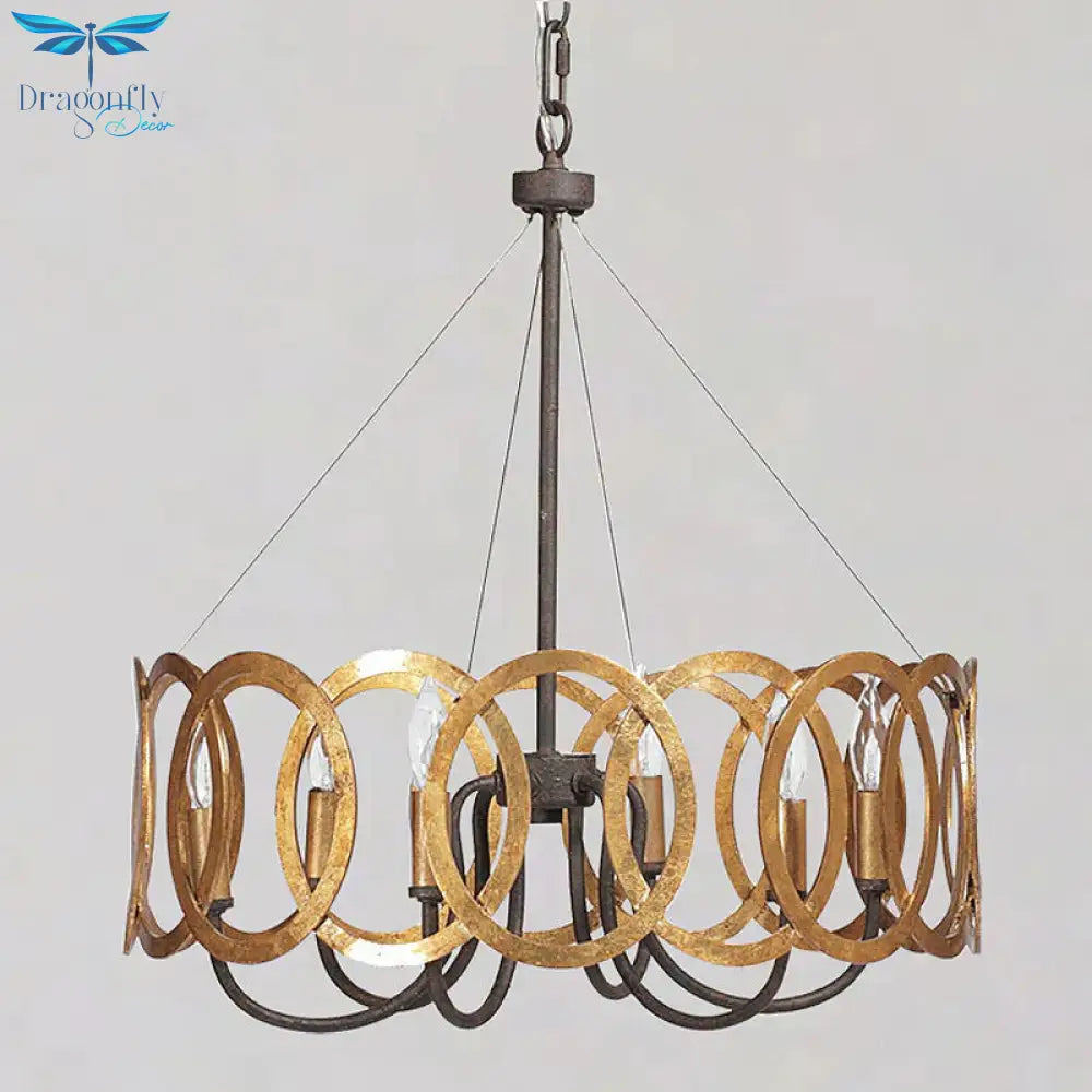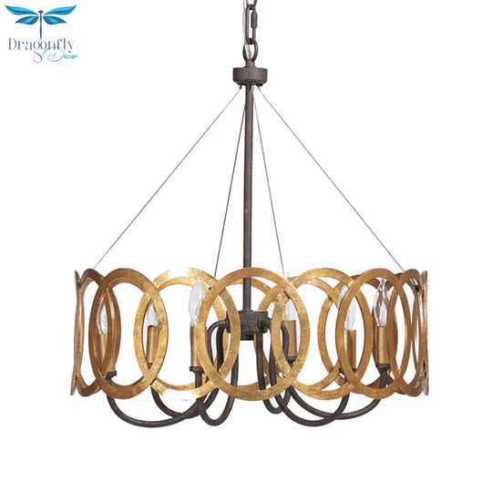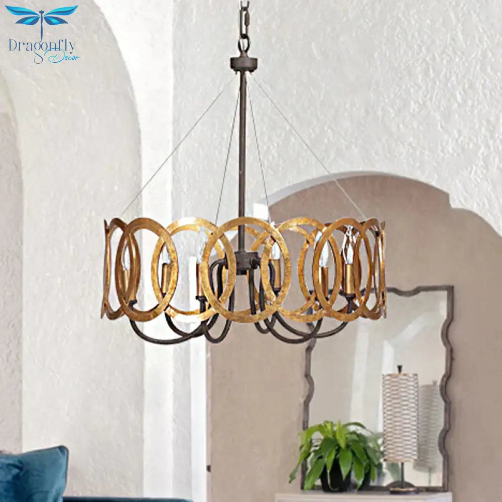 Round Metal Ceiling Light Traditional 6-Bulb Dining Room Pendant Chandelier in Gold