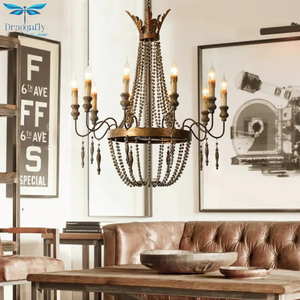 Rust Spur Empire Chandelier Traditional Metal 8/10 Bulbs Pendant Light Fixture for Living Room
