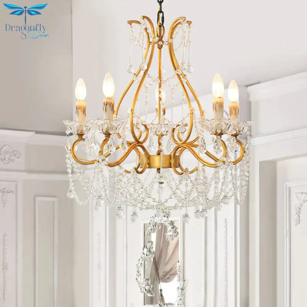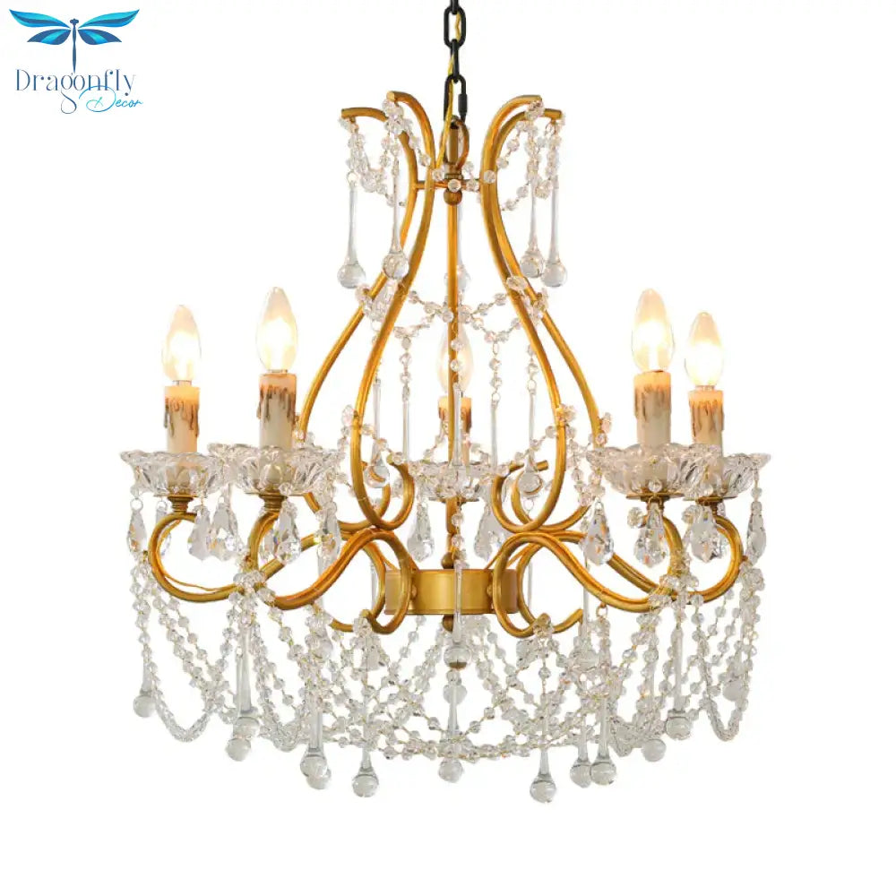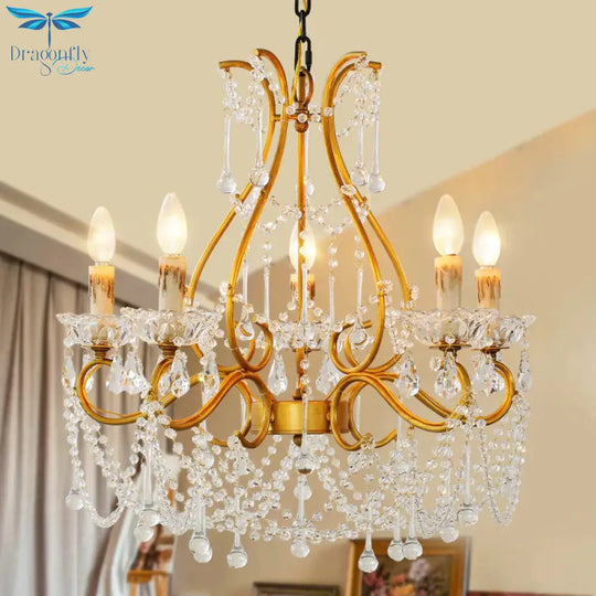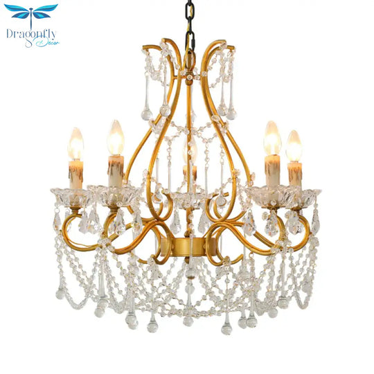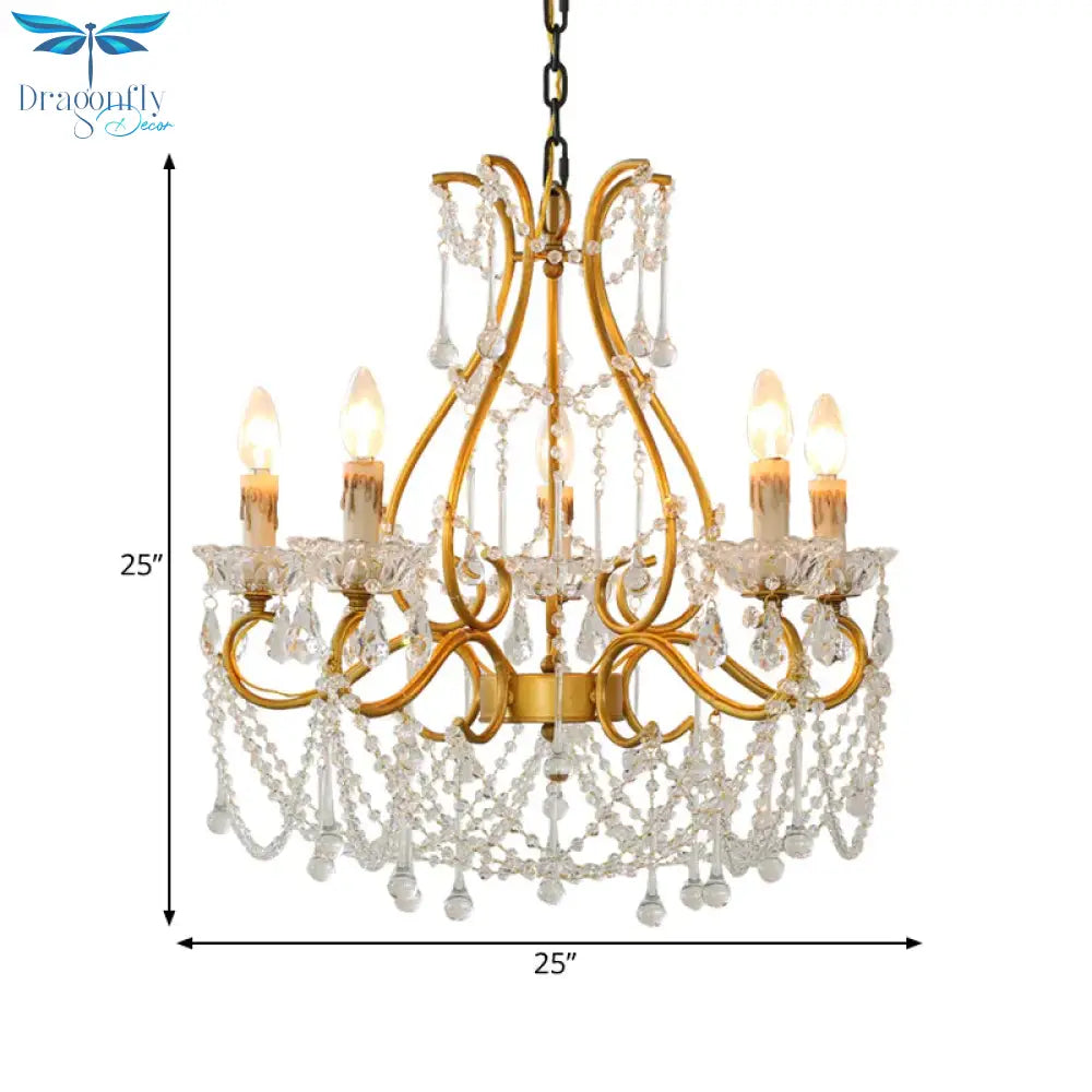 Rustic Candle-Style Chandelier 5 Lights Crystal Suspension Lamp in Gol