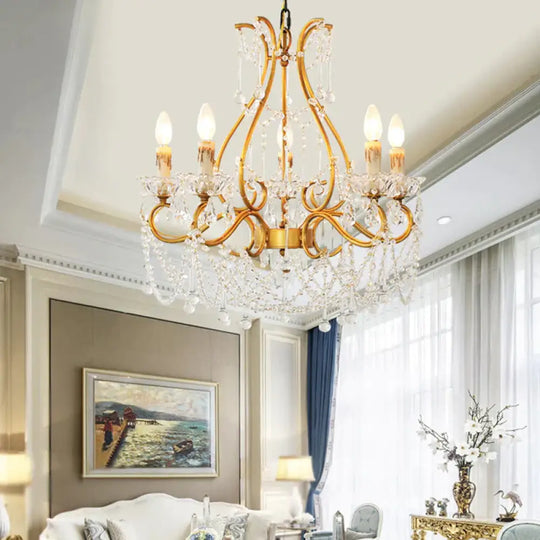 Rustic Candle-Style Chandelier 5 Lights Crystal Suspension Lamp in Gold for Living Room