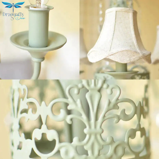 Scalloped Living Room Hanging Light Traditional Fabric 6/8 Lights Green Pendant Light Fixture