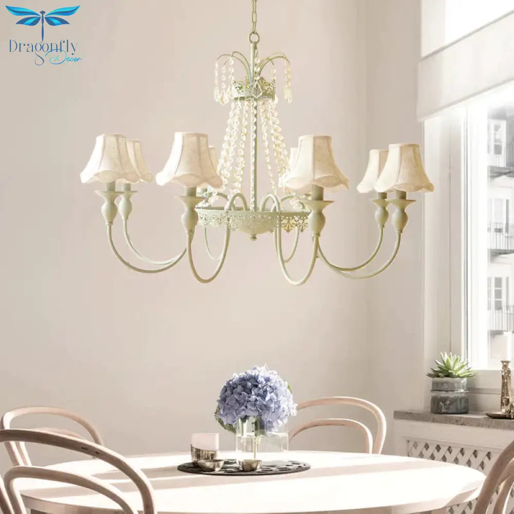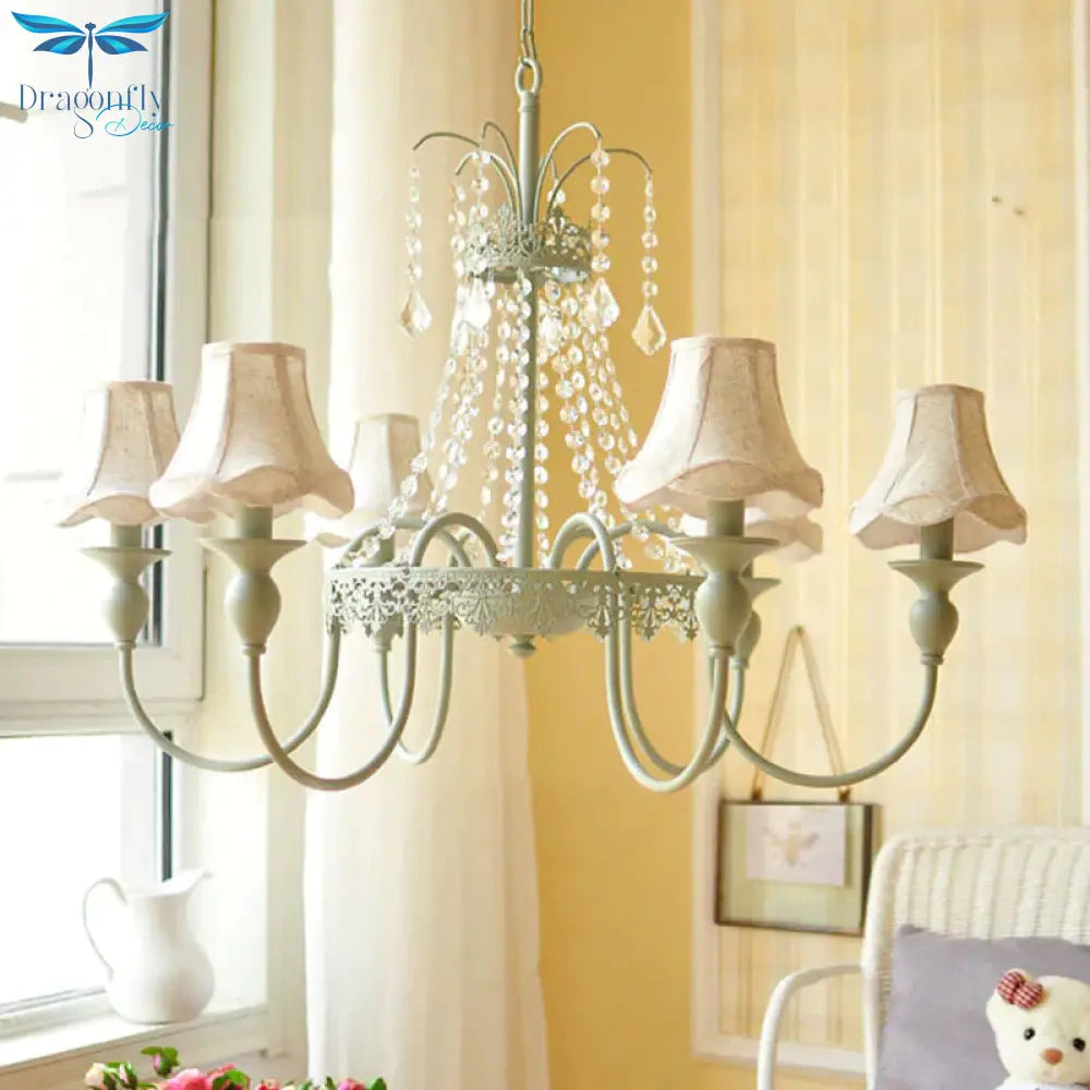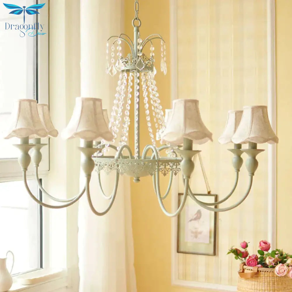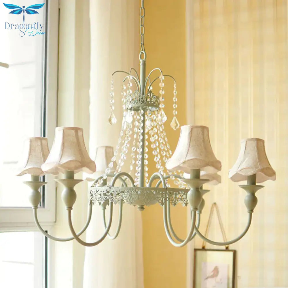 Scalloped Living Room Hanging Light Traditional Fabric 6/8 Lights Gree