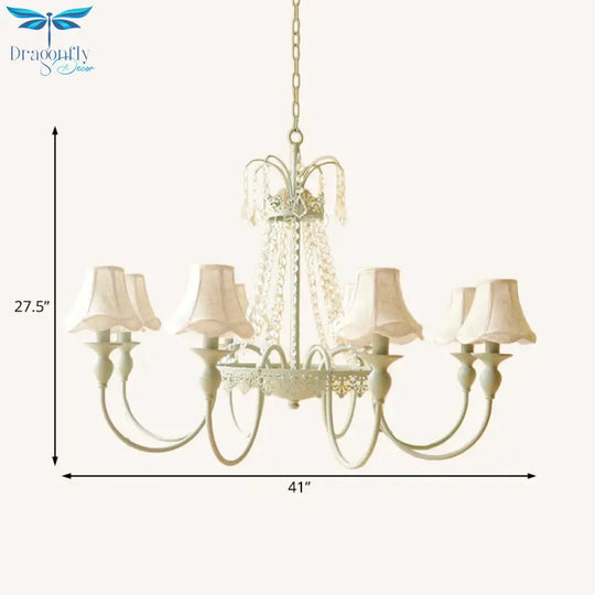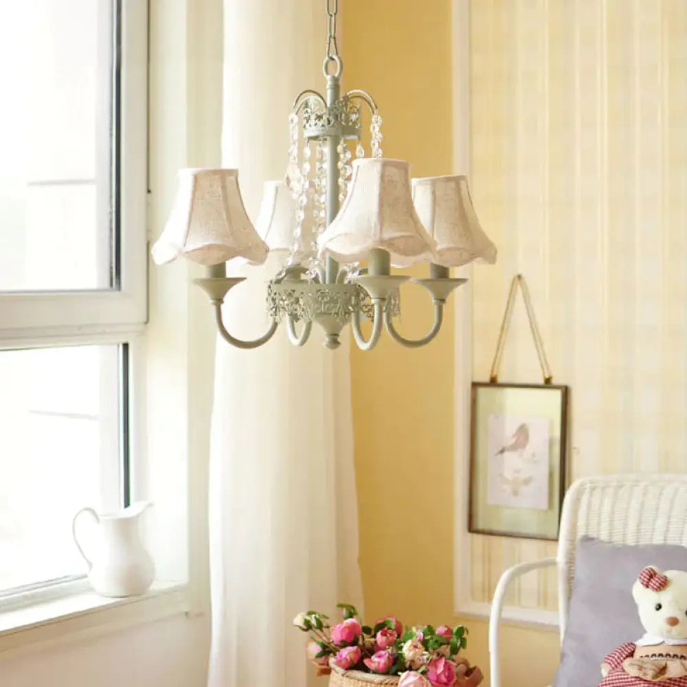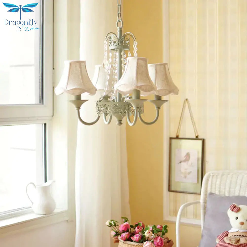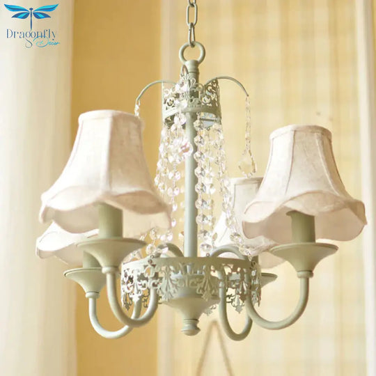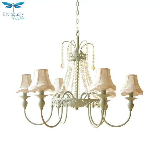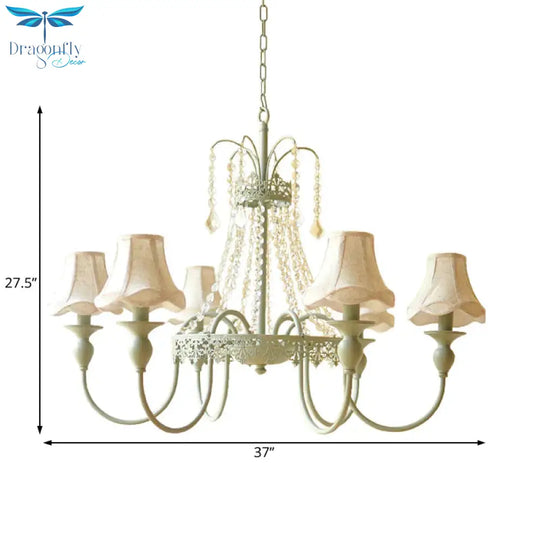 Scalloped Living Room Hanging Light Traditional Fabric 6/8 Lights Gree