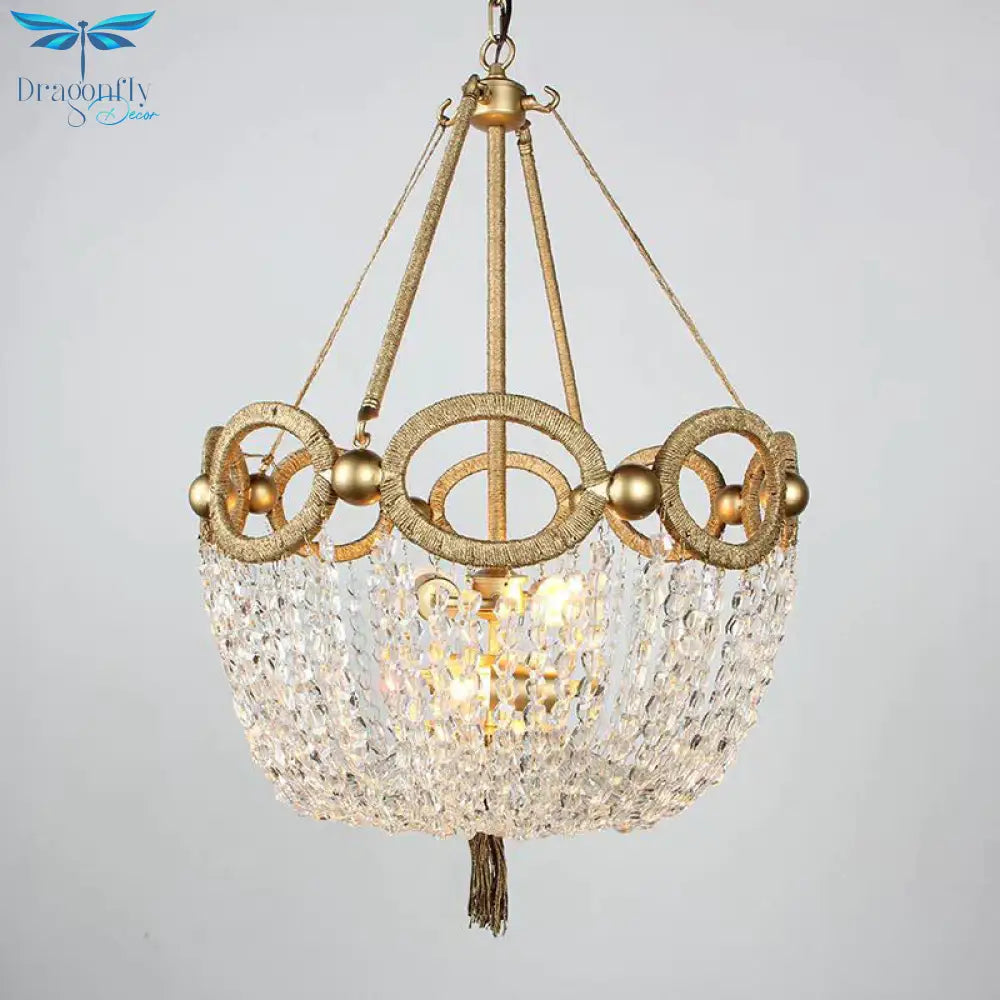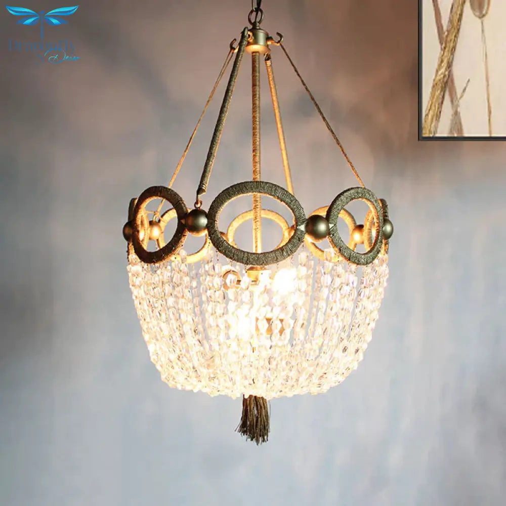 Simple Basket Chandelier Light Fixture 4 Lights Crystal Pendant Lighti
