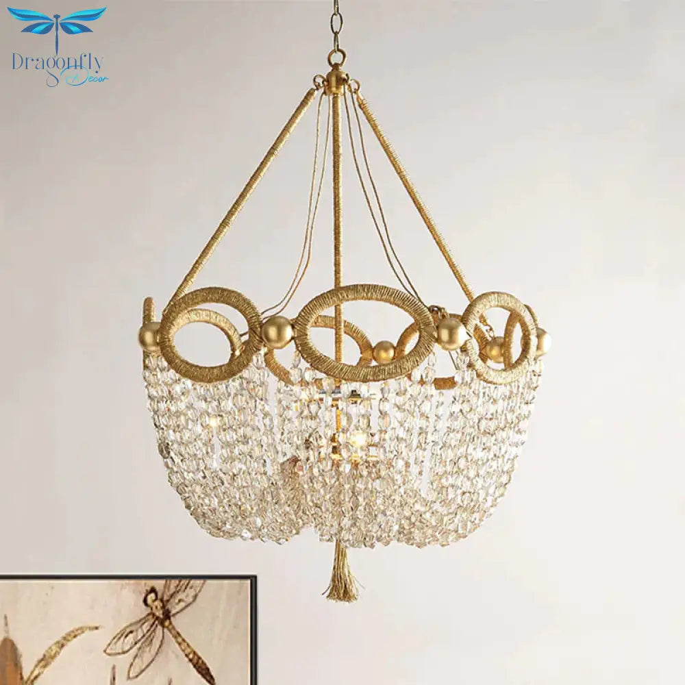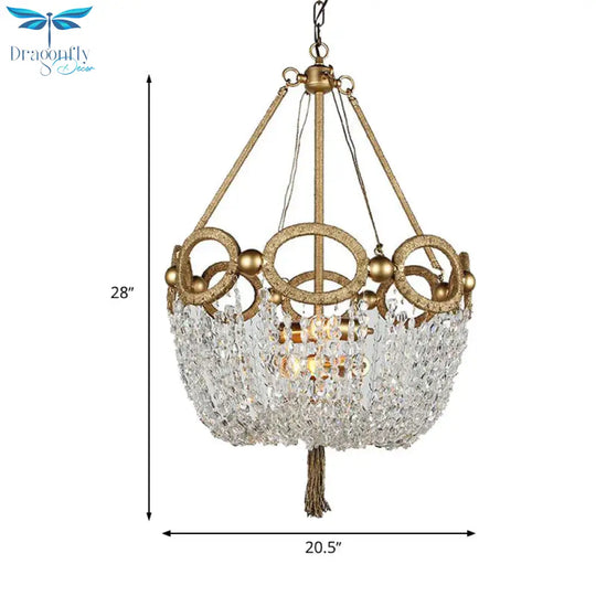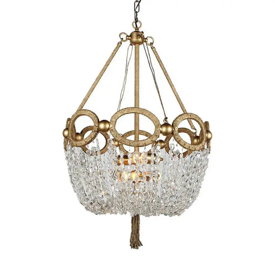 Simple Basket Chandelier Light Fixture 4 Lights Crystal Pendant Lighting in Gold for Living Room