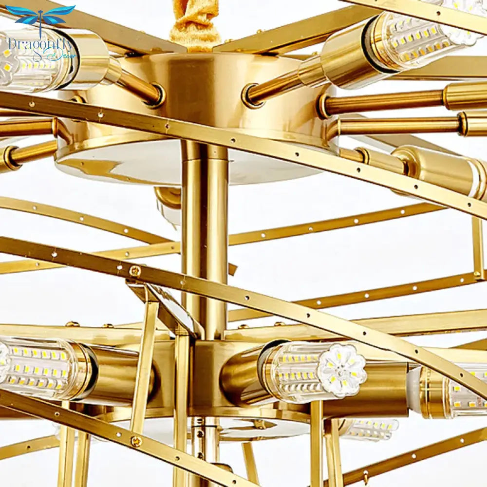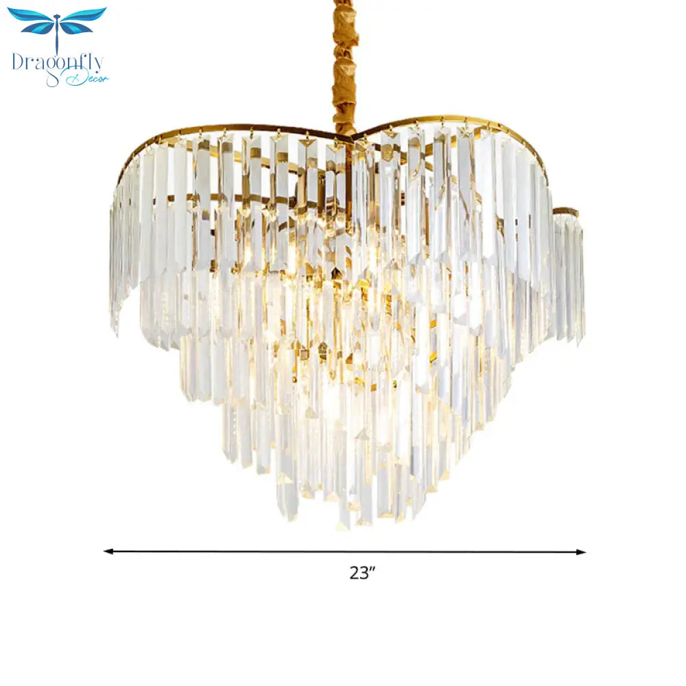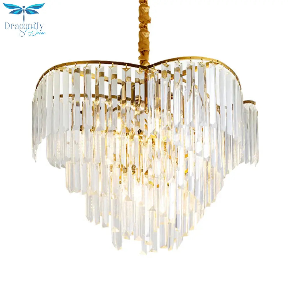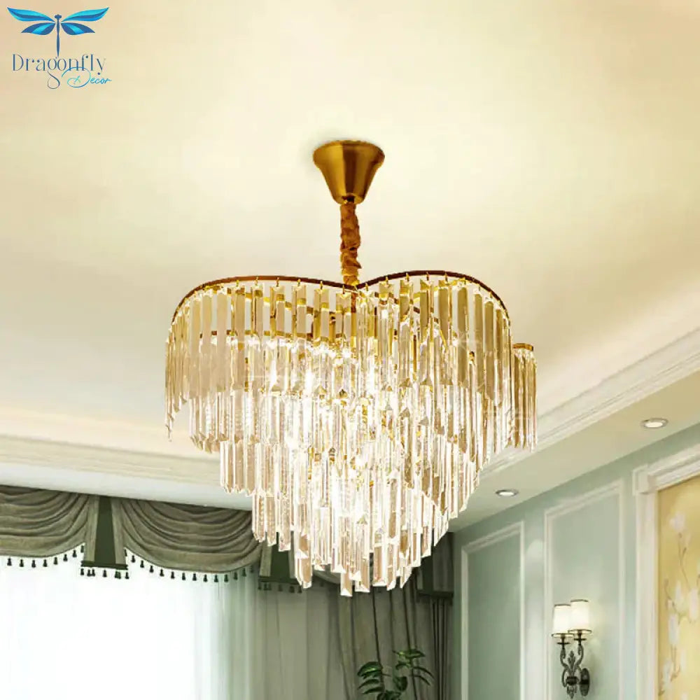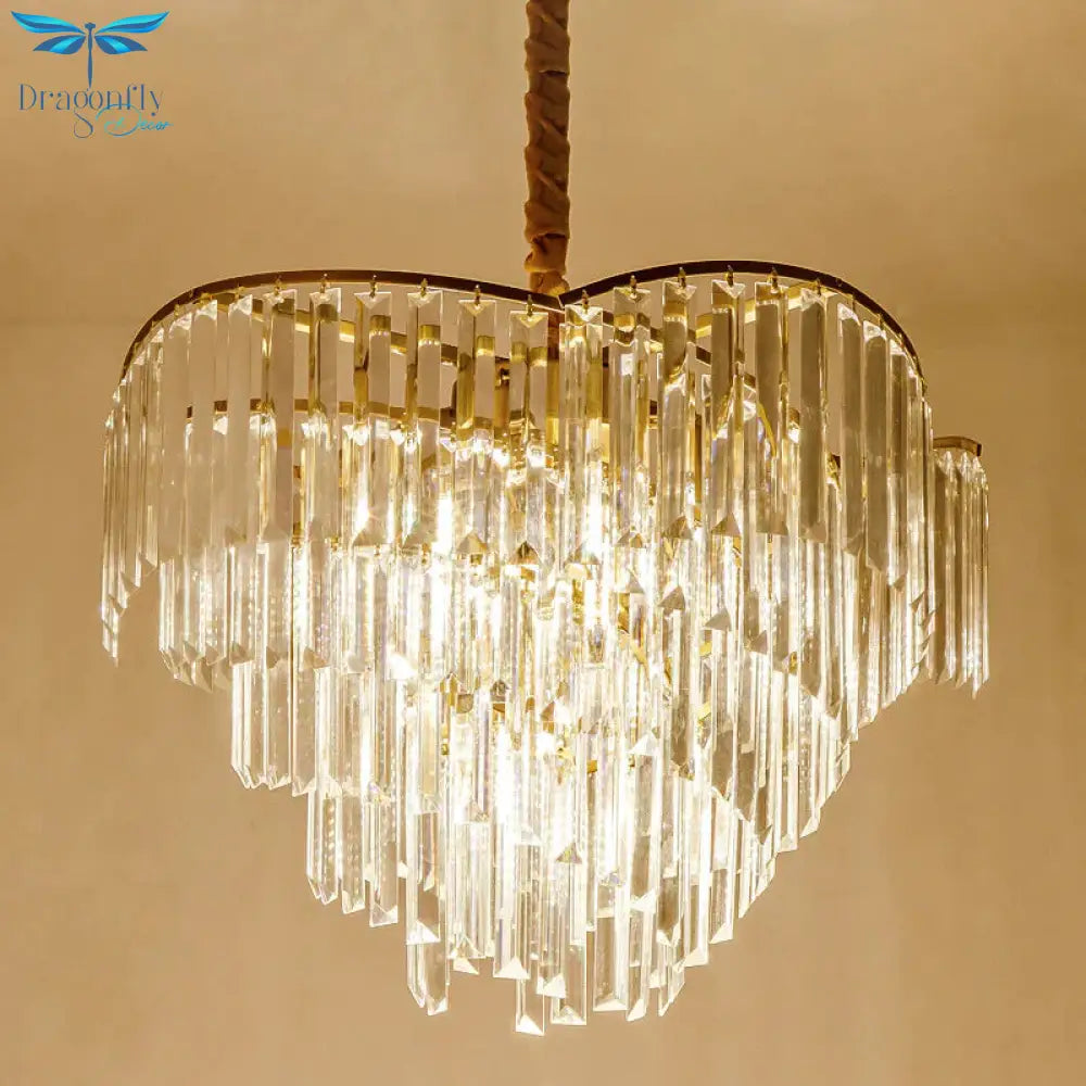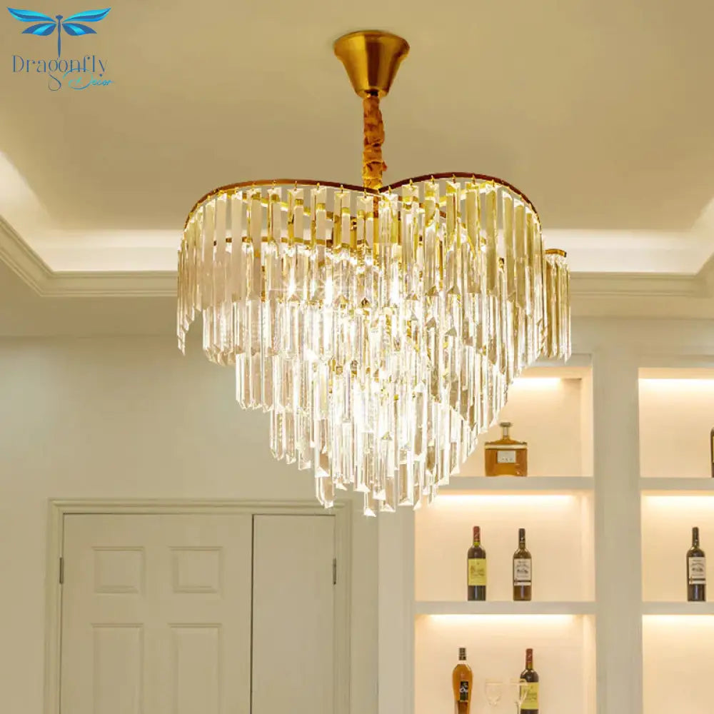 Spiral Hanging Light Postmodern Tri-Sided Clear Crystal Rod 5 Heads Gold Pendant Chandelier