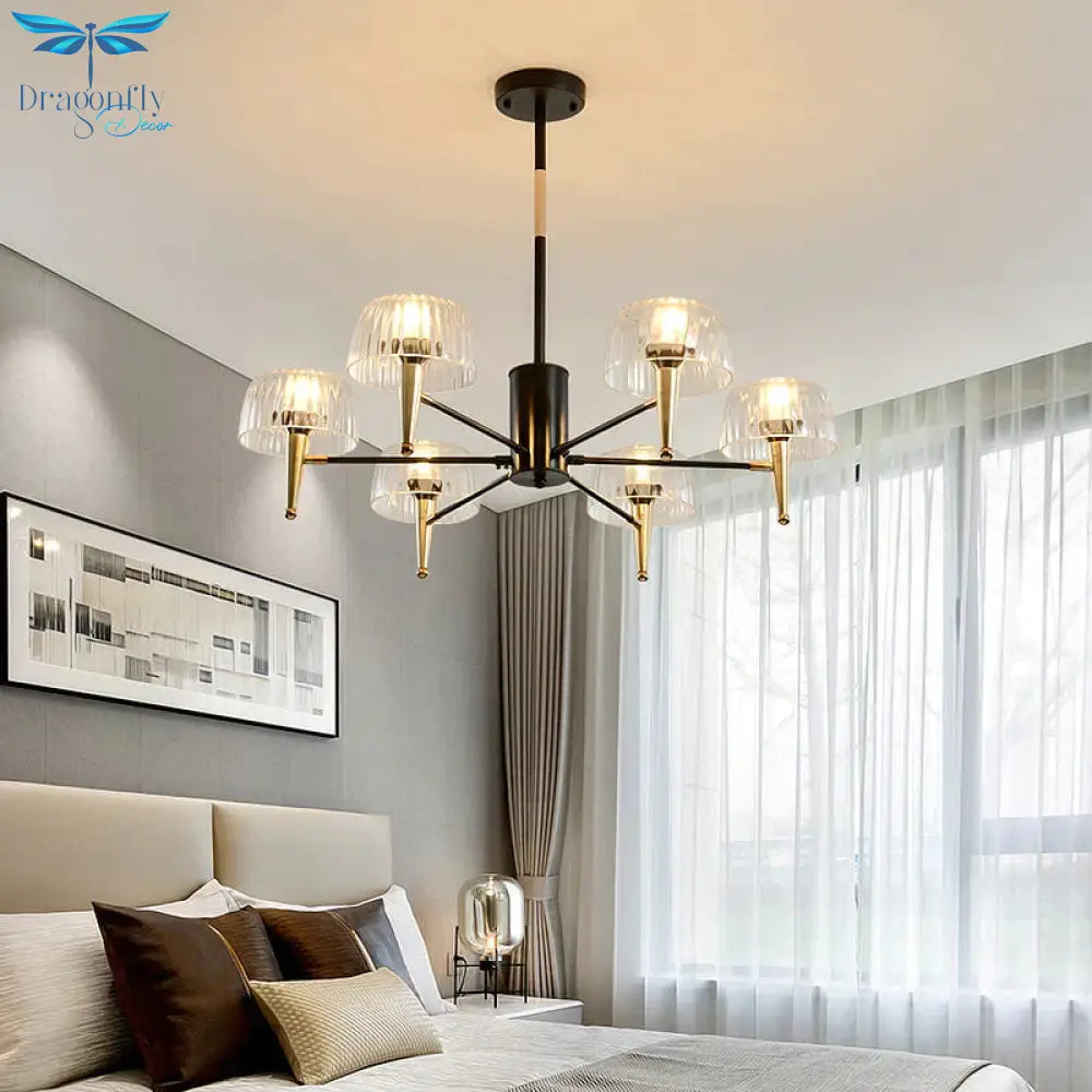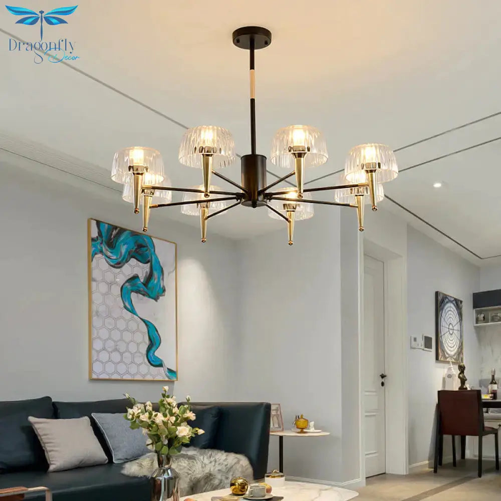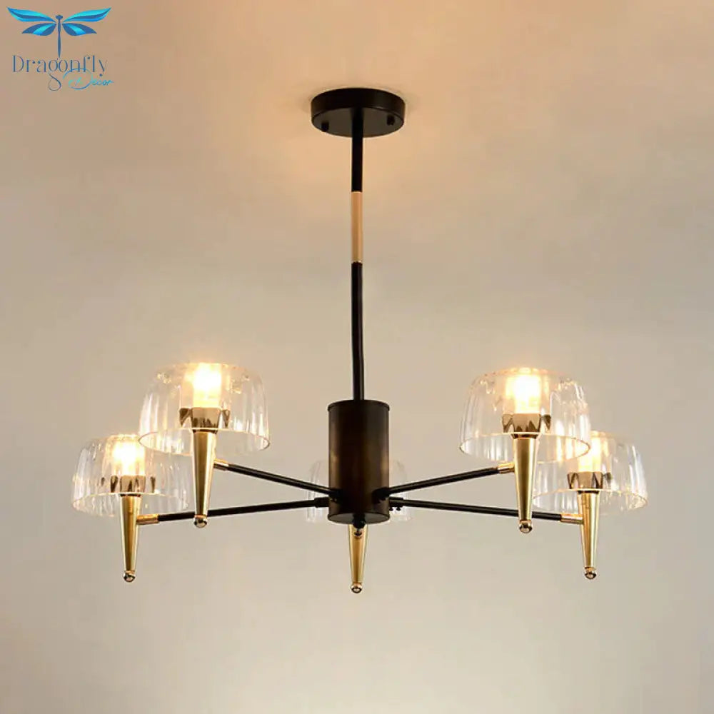 Sputnik Clear Glass Suspension Pendant Light Simple Style 3/5/6 Lights Living Room Chandelier Light in Gold