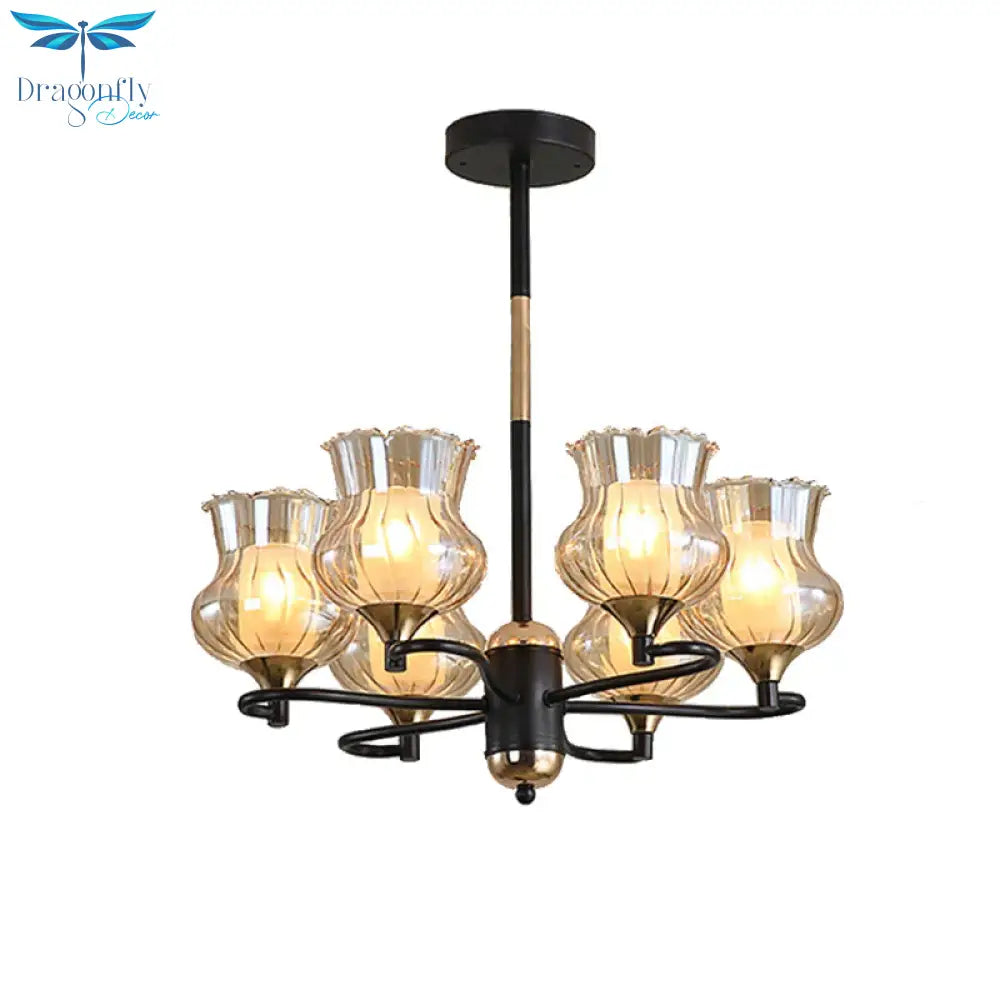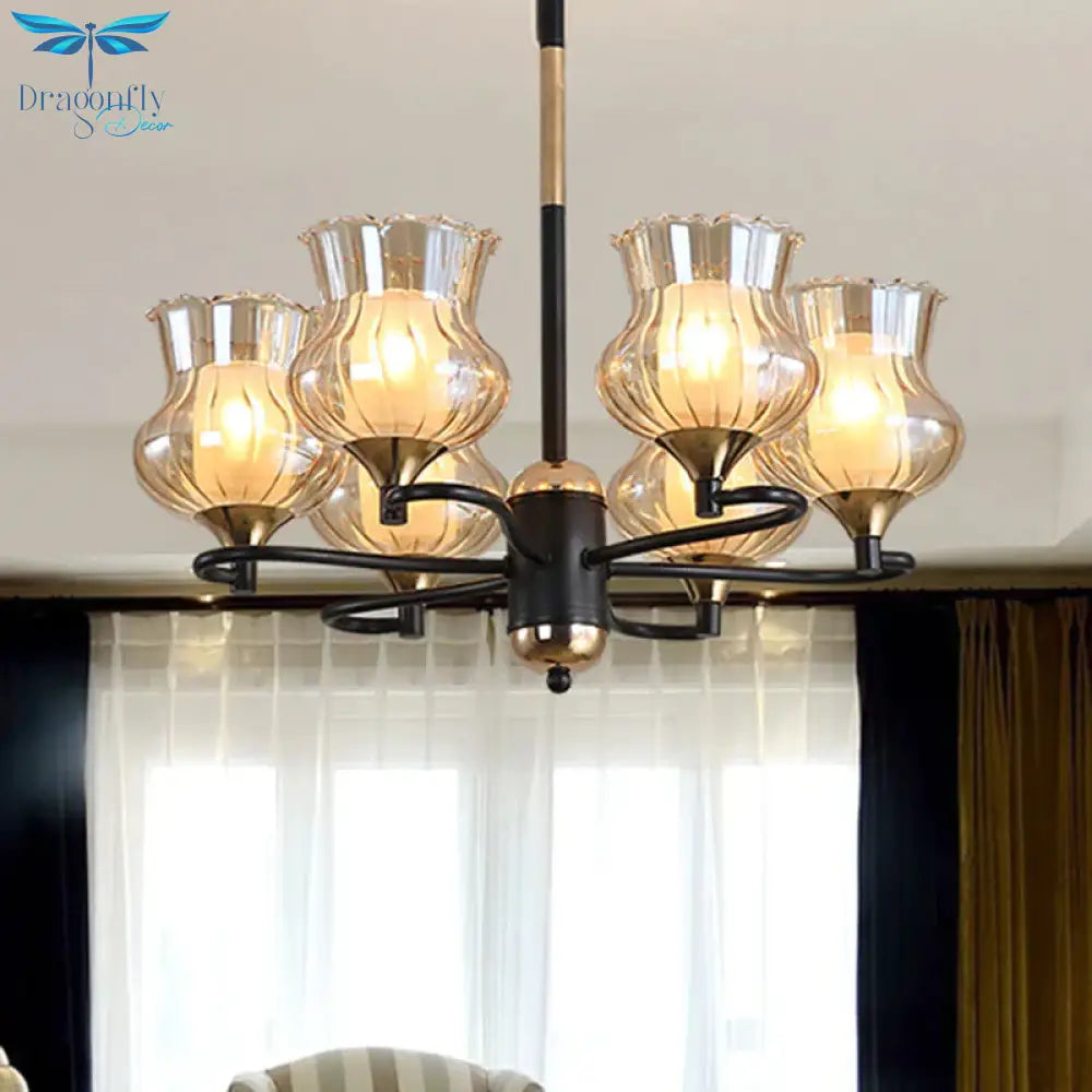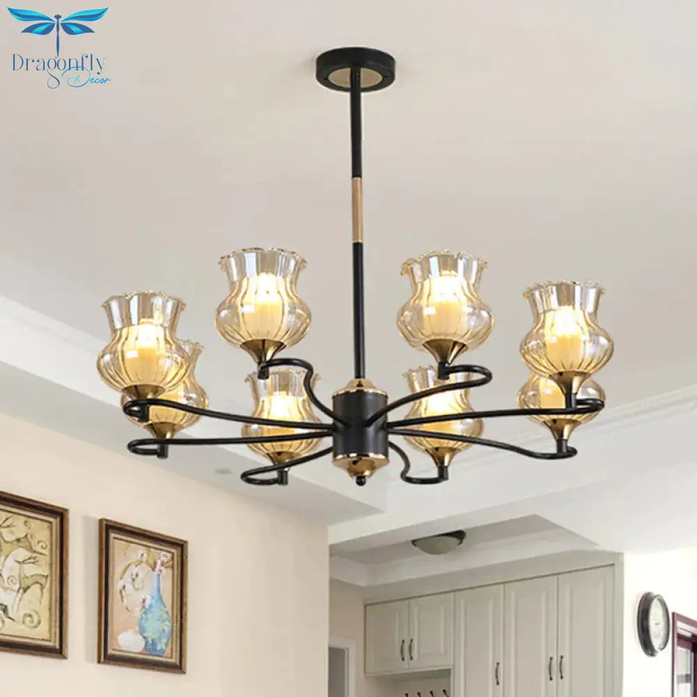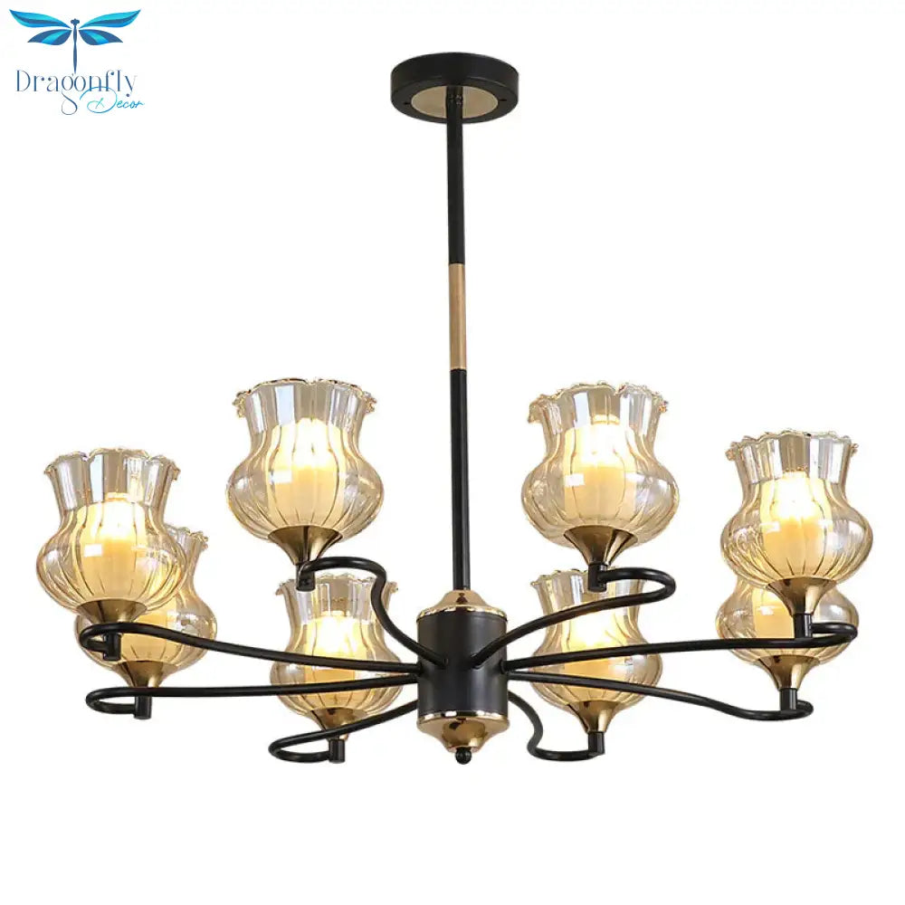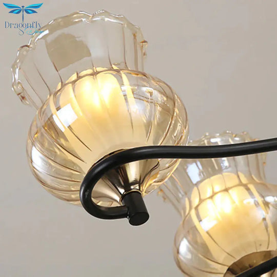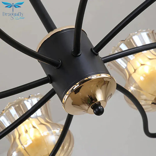 Sputnik Living Room Ceiling Chandelier Classic Tan Textured Glass 3/6/8 Lights Black Hanging Fixture