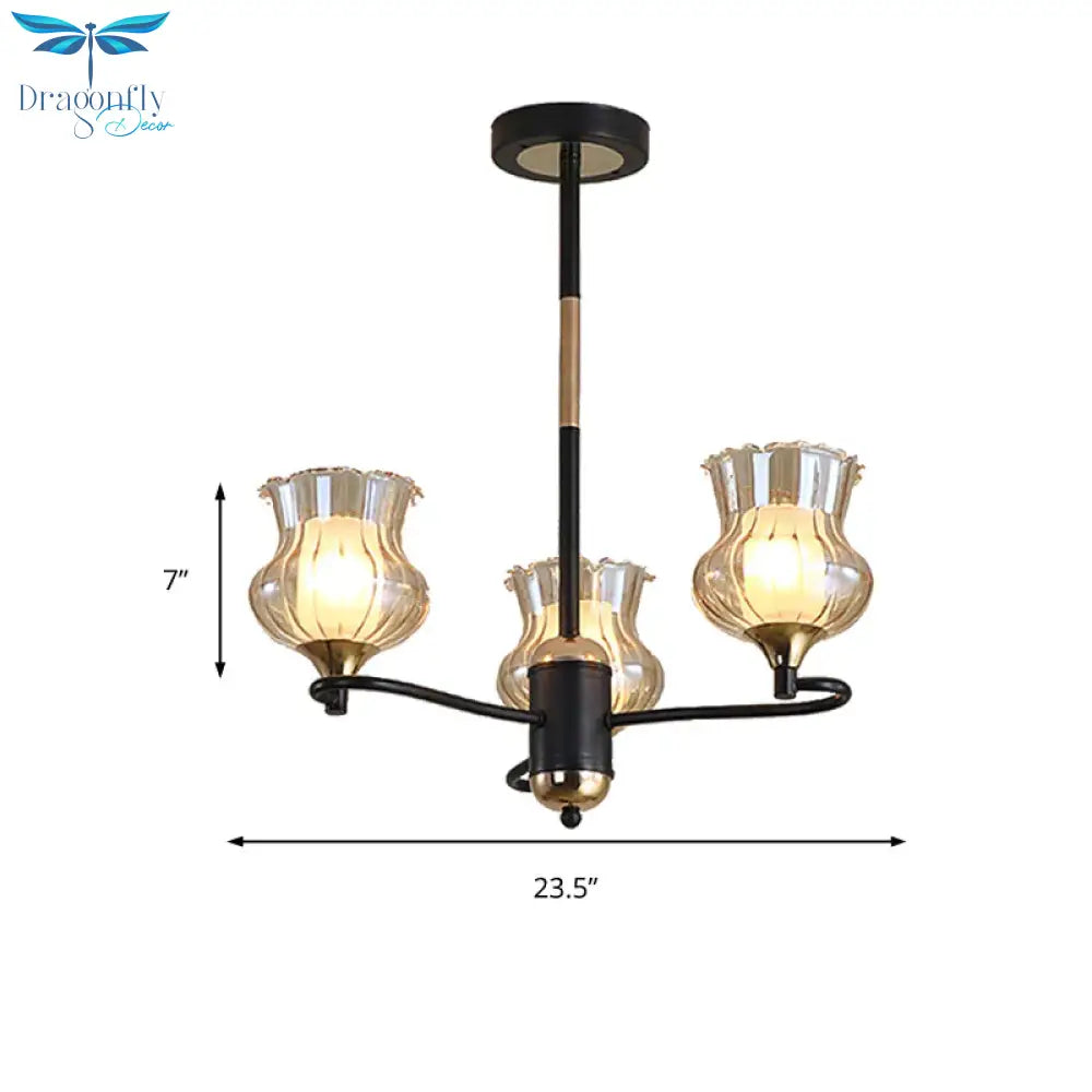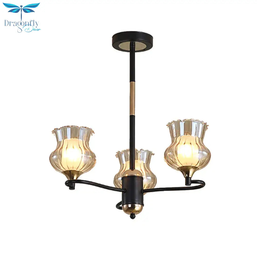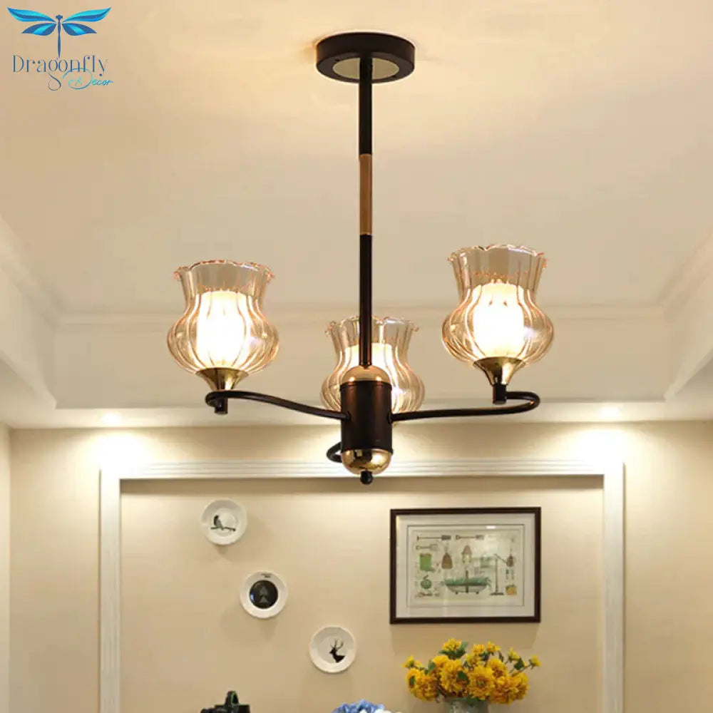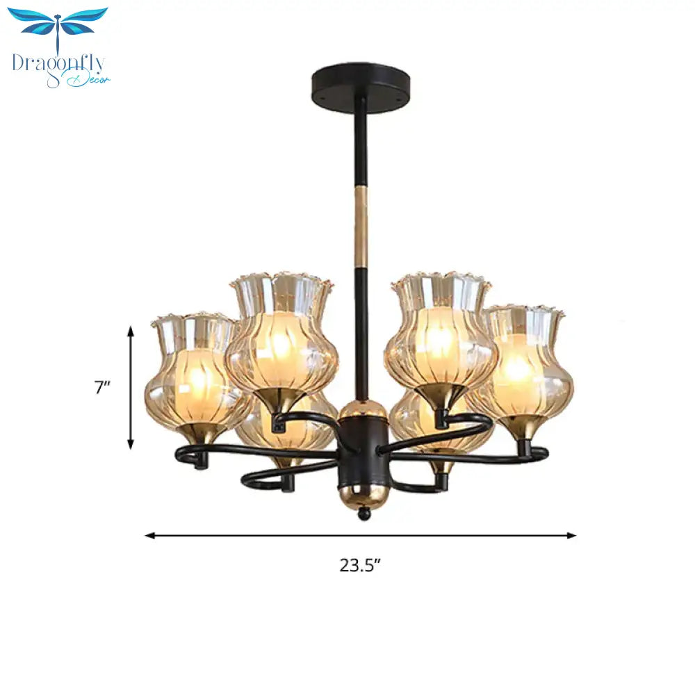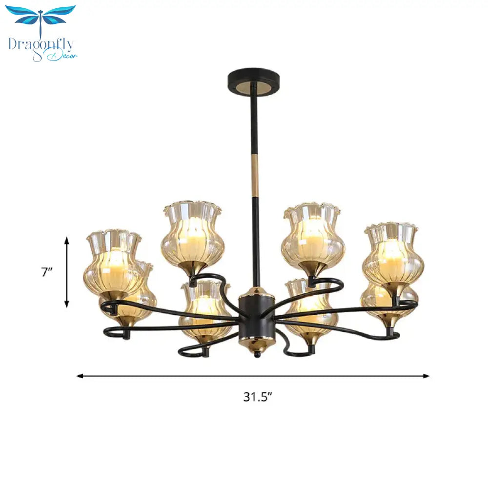 Sputnik Living Room Ceiling Chandelier Classic Tan Textured Glass 3/6/8 Lights Black Hanging Fixture