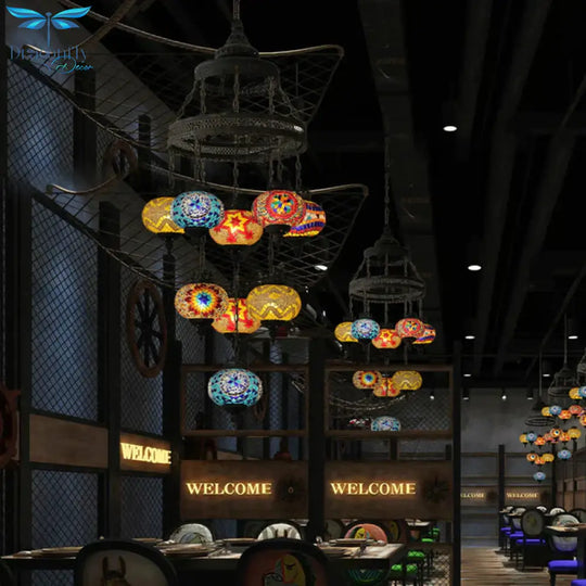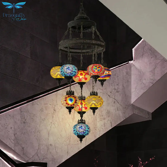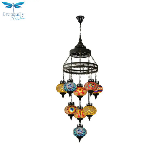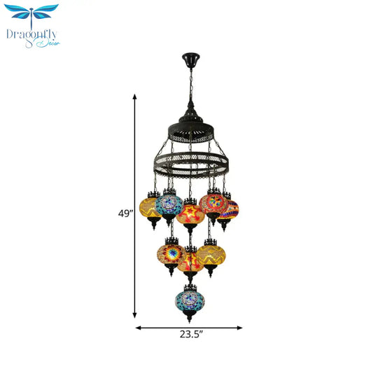Stained Glass Lantern Pendant Lighting Bohemia Style 9 Bulbs Coffee House Ceiling Chandelier in Black