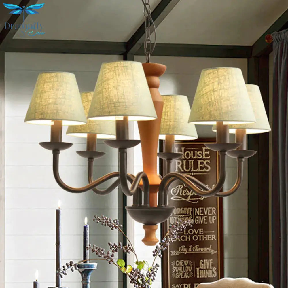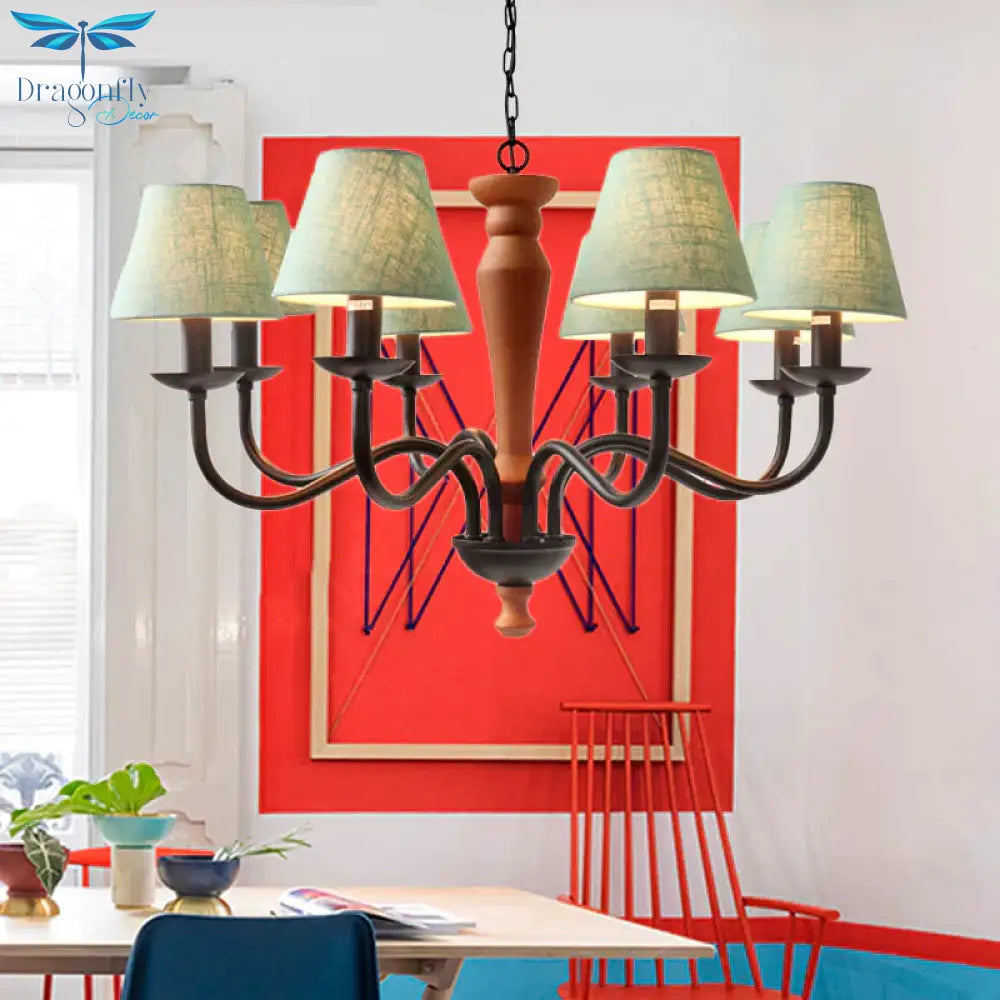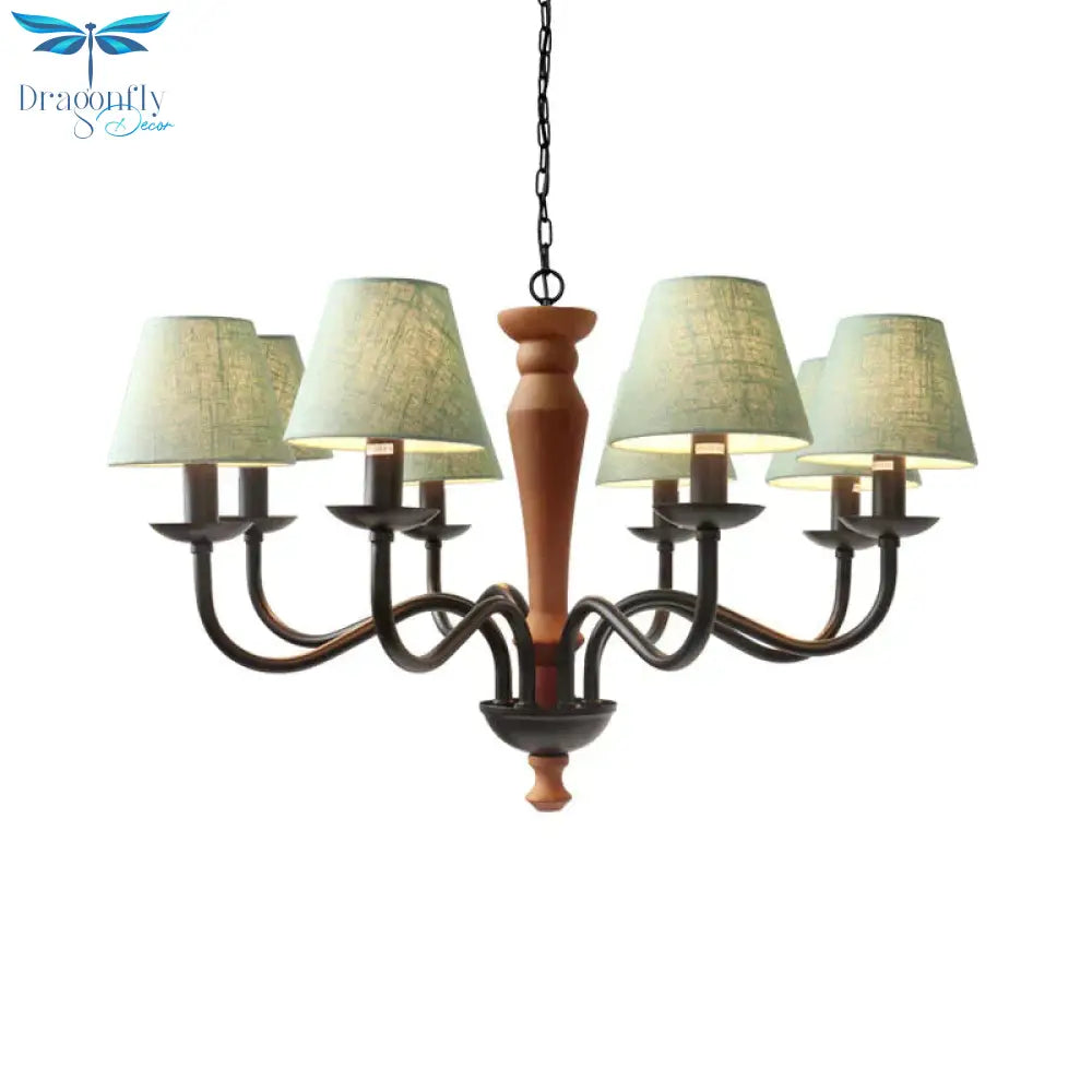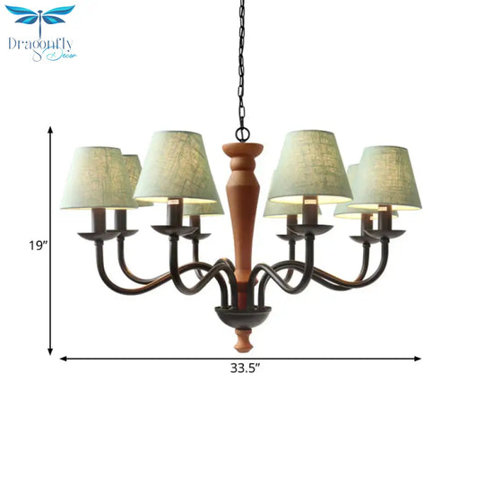 Tapered Living Room Pendant Chandelier Vintage Fabric 3/8 Lights Green/Beige Ceiling Suspension Lamp