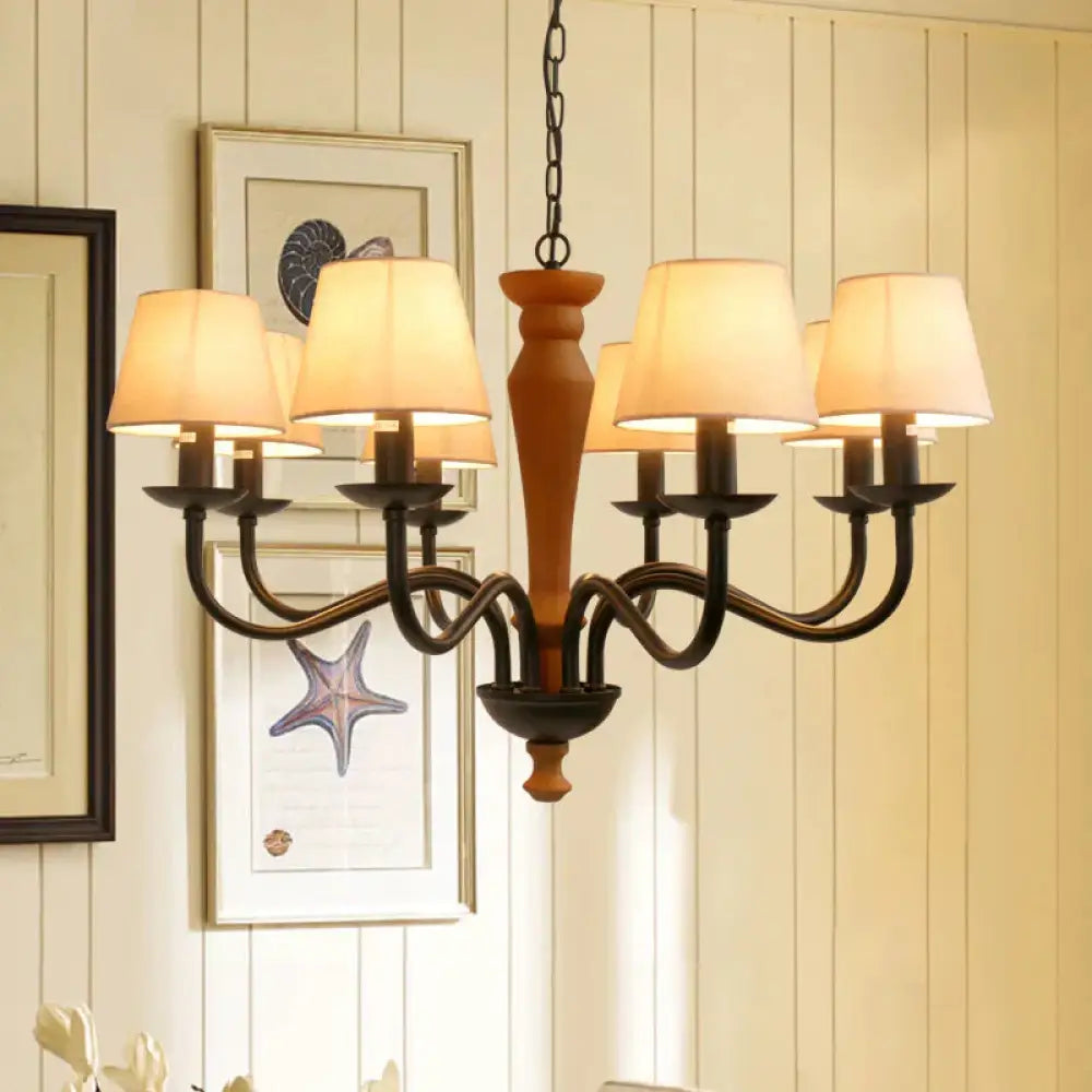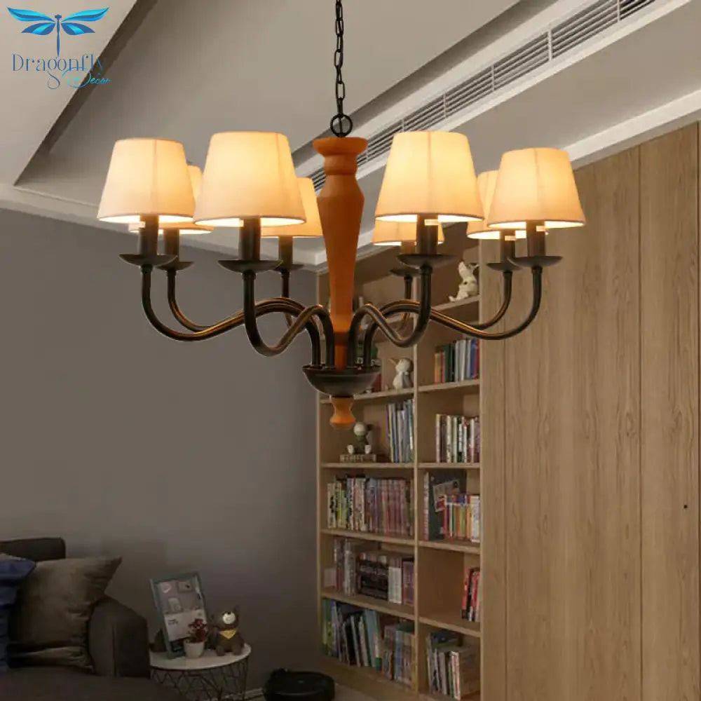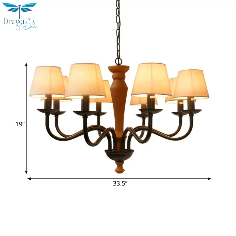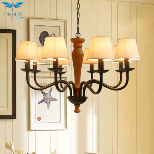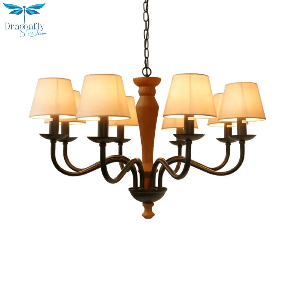 Tapered Living Room Pendant Chandelier Vintage Fabric 3/8 Lights Green/Beige Ceiling Suspension Lamp