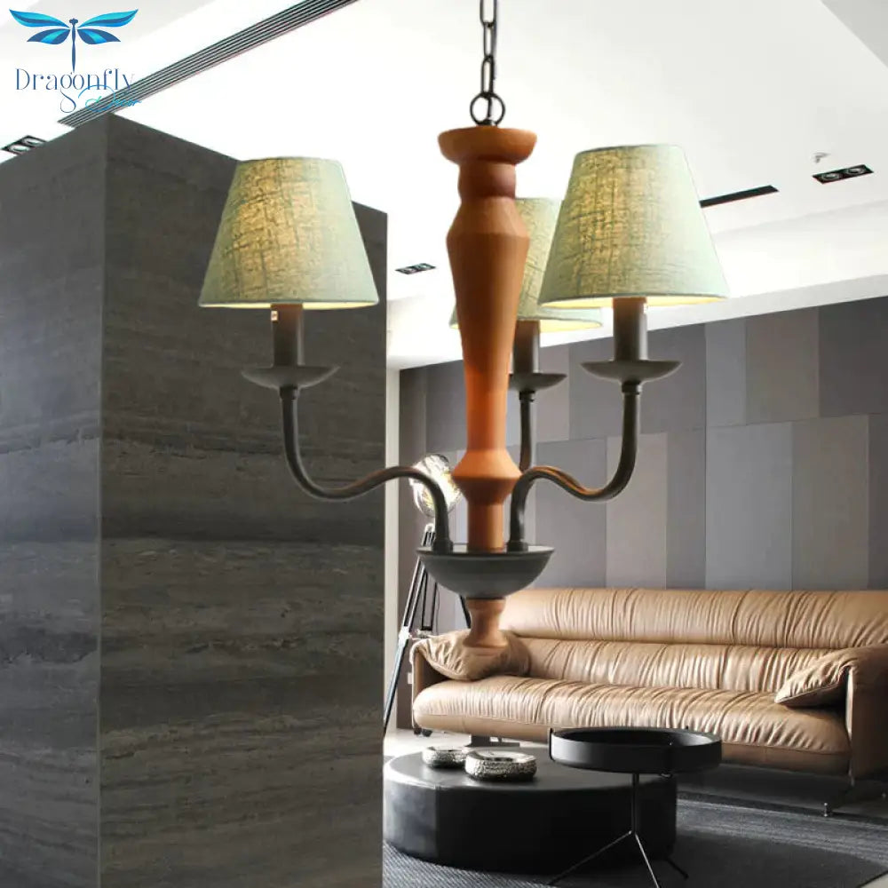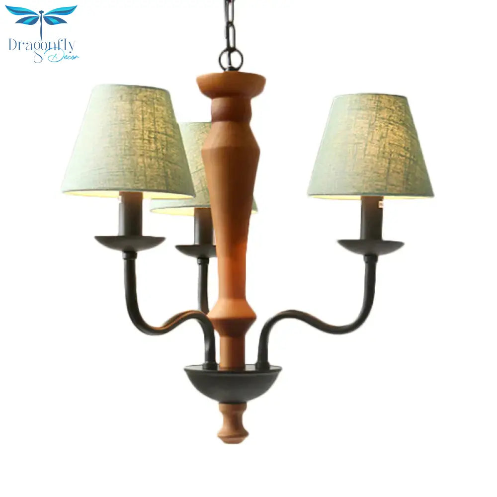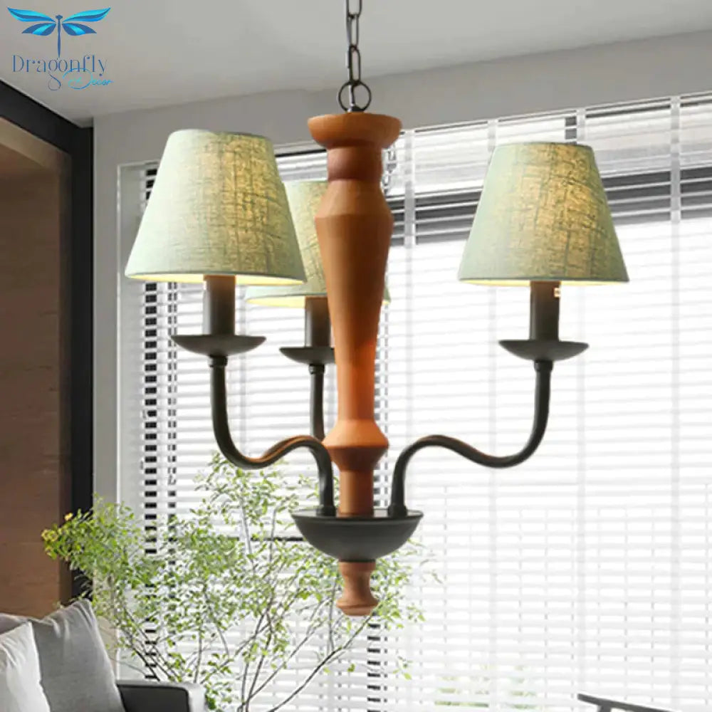 Tapered Living Room Pendant Chandelier Vintage Fabric 3/8 Lights Green
